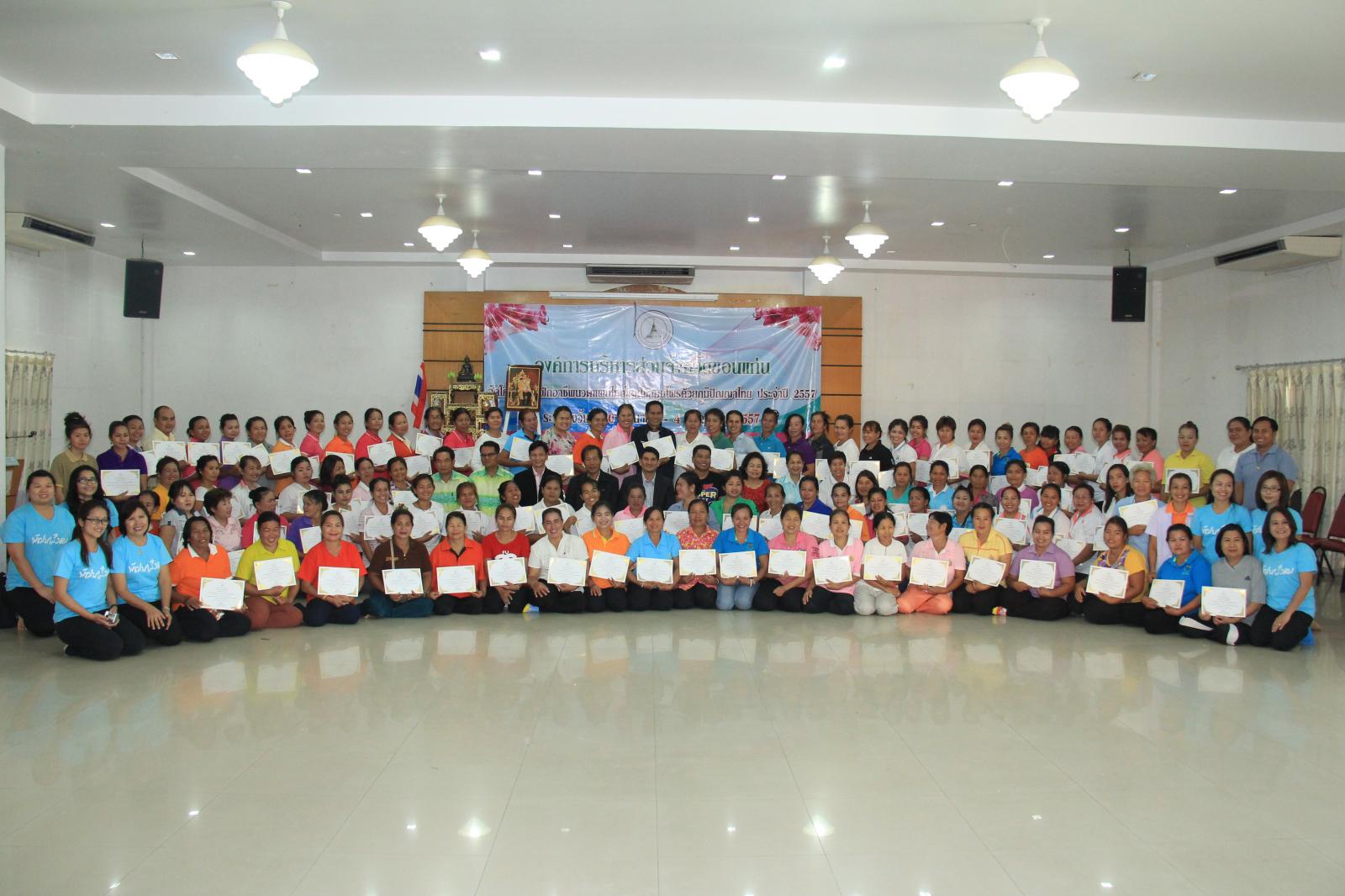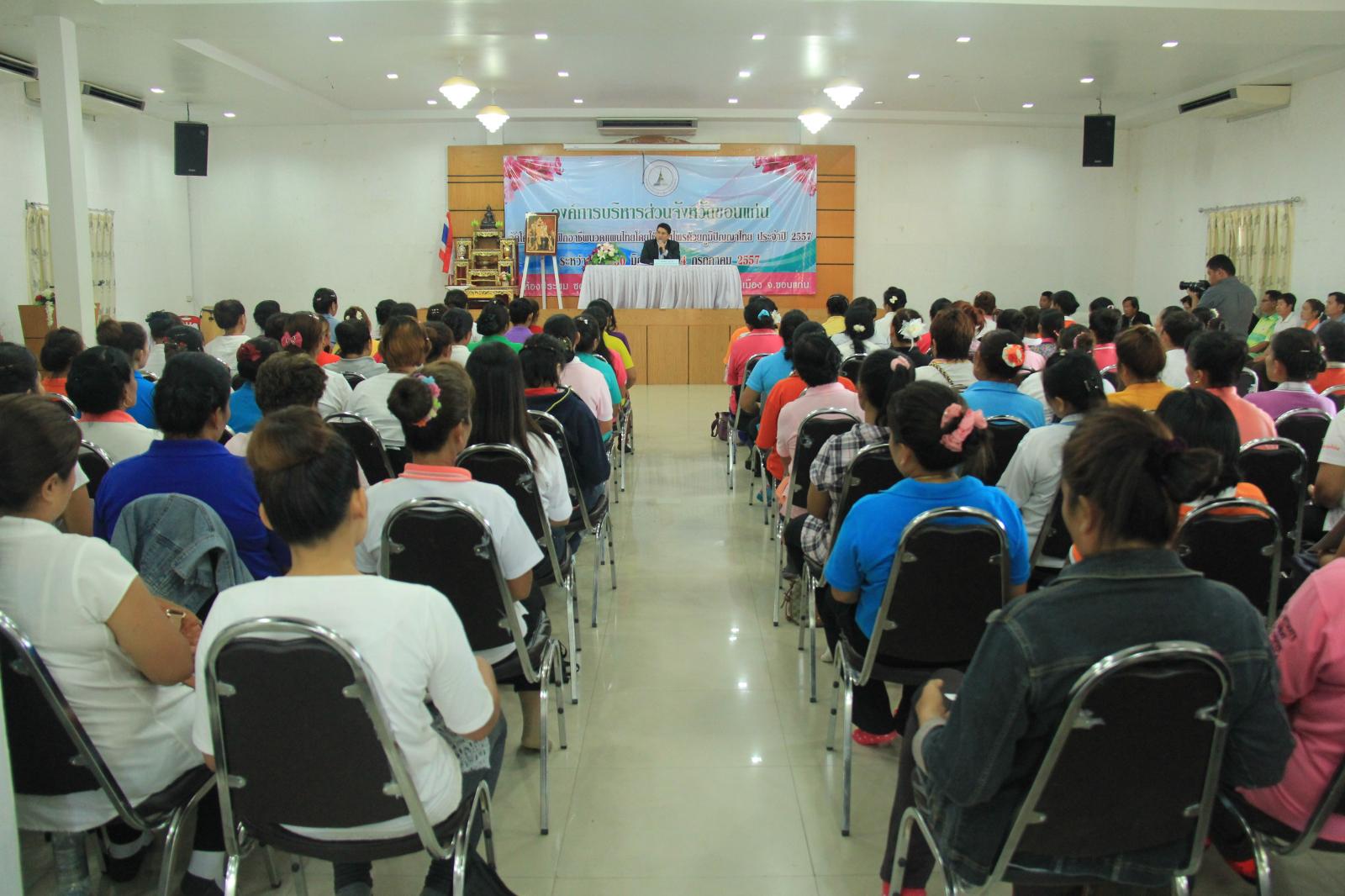 การฝึกอบรมโครงการฯ นี้ ได้เริ่มตั้งแต่วันที่ 30 มิถุนายน 2557 และได้สิ้นสุดในวันที่ 4 กรกฎาคม 2557 โดยผู้เข้ารับการฝึกอบรมเป็นประชาชนในเขตพื้นที่จังหวัดขอนแก่น จำนวน 130 คน การฝึกอบรม ครั้งนี้จัดขึ้นโดยมีจุดมุ่งหมาย เพื่อให้ผู้เข้าอบรมสามารถนำความรู้และประสบการณ์ที่ได้รับไปประกอบอาชีพ สร้างรายได้ให้แก่ตนเอง ครอบครัวทำให้มีคุณภาพชีวิตที่ดีขึ้น ตลอดระยะเวลาของการฝึกอบรม ครั้งนี้ ผู้เข้ารับการอบรม ได้ให้ความสนใจและเอาใจใส่เป็นอย่างยิ่ง จึงมีความเชื่อมั่นว่าทุกคนจะได้นำความรู้และประสบการณ์ที่ได้จากการฝึกอบรมไปใช้กับตนเองและครอบครัวเป็นอย่างดี