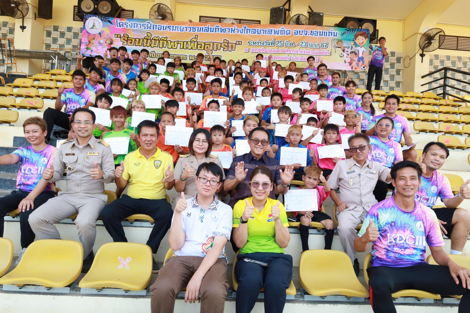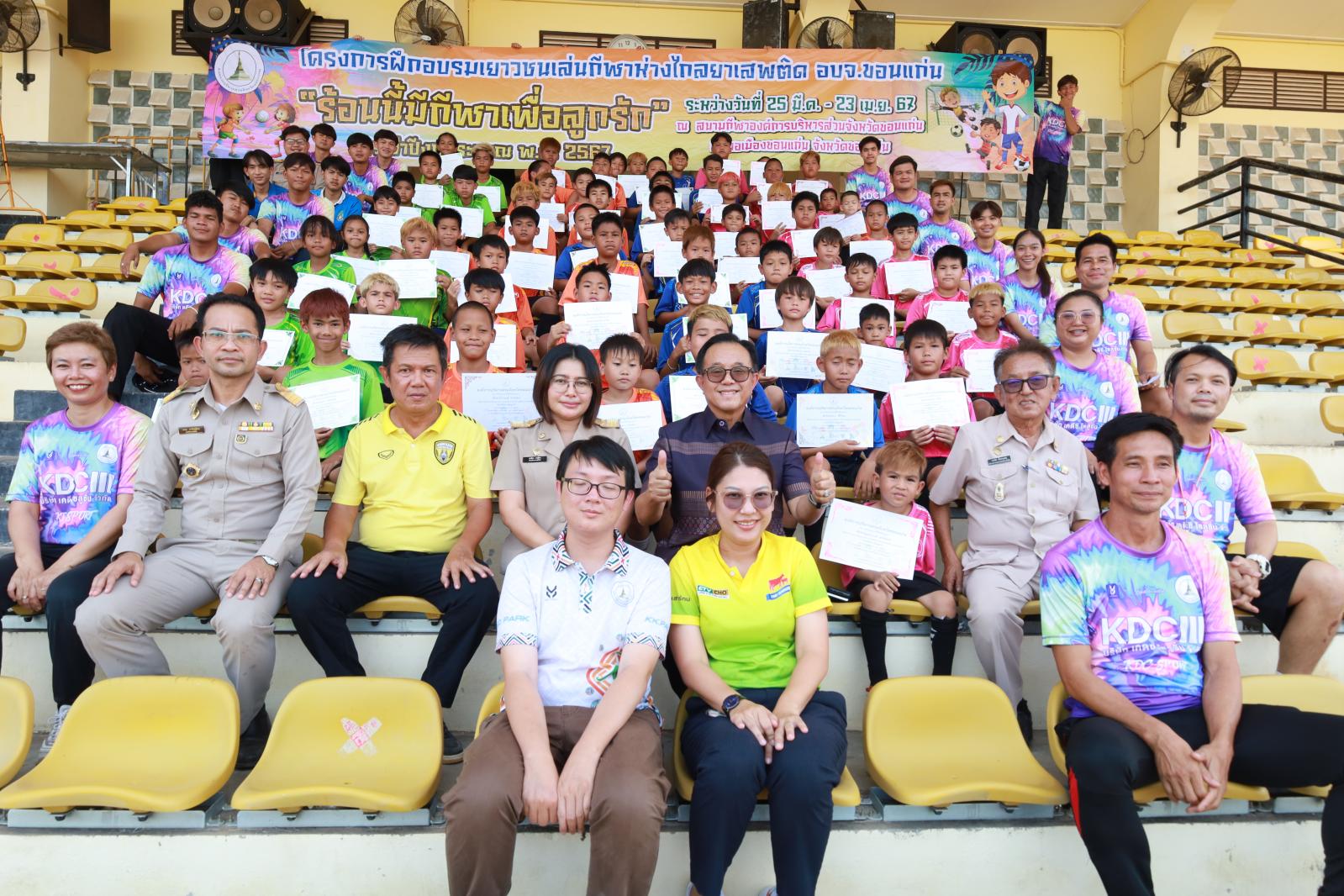 พิธีปิดและมอบประกาศนียบัตรโครงการฝึกอบรมเยาวชนเล่นกีฬาห่างไกลยาเสพติด อบจ.ขอนแก่น “ร้อนนี้มีกีฬาเพื่อลูกรัก” ประจำปีงบประมาณ พ.ศ.2567
