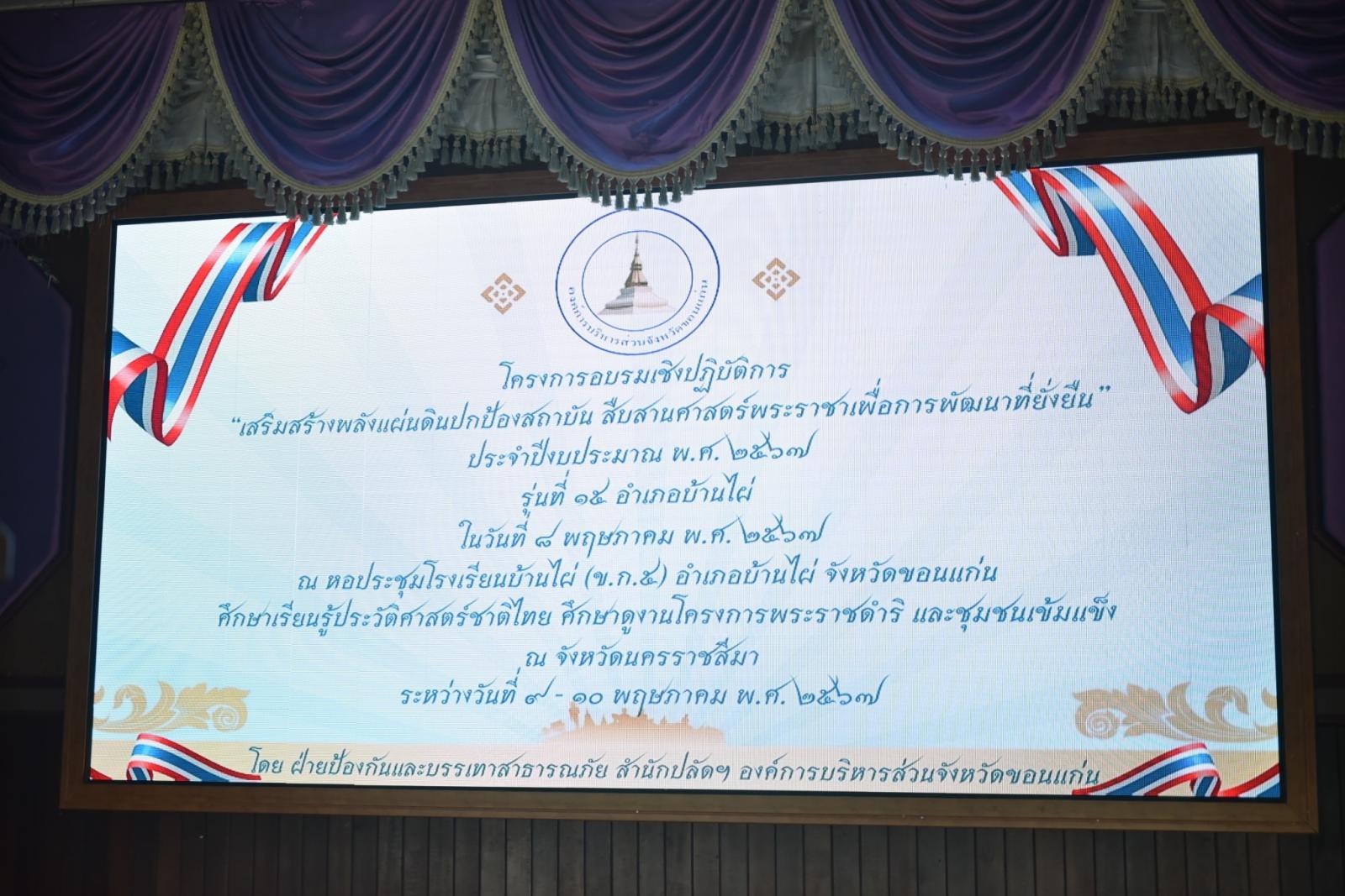 เสริมสร้างพลังแผ่นดินปกป้องสถาบัน สืบสานศาสตร์พระราชาเพื่อการพัฒนาที่ยั่งยืน ประจำปีงบประมาณ พ.ศ.2567 รุ่นที่15 (อำเภอบ้านไผ่)