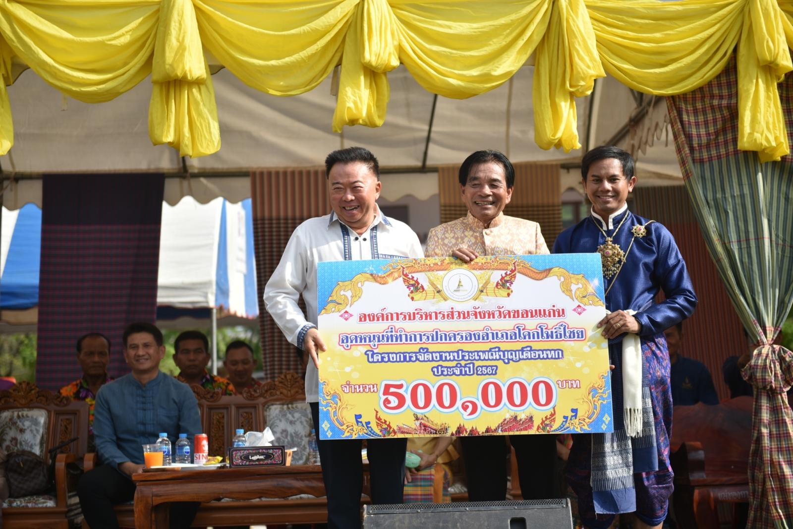 เมื่อวันที่ 11 พฤษภาคม 2567 เวลา 15.30 น. ดร.พงษ์ศักดิ์ ตั้งวานิชกพงษ์ นายกองค์การบริหารส่วนจังหวัดขอนแก่น เป็นประธานเปิดโครงการจัดงานประเพณีบุญเดือนหก ประจำปี 2567 อำเภอโคกโพธิ์ไชย และมอบรางวัลพร้อมเกียรติบัตร โดยมี นายคฤทธิ์ เพ็ชรสูงเนิน นายอำเภอโคกโพธิ์ไชย กล่าวรายงาน ในโอกาสนี้มี นาง ระเบียบรัตน์ พงษ์พานิช ภริยา ท่านเสริมศักดิ์ พงษ์พานิช รัฐมนตรีว่าการกระทรวงการท่องเที่ยวและกีฬา,ดร. รัตนาภรณ์ สมบูรณ์ อดีตสมาชิกวุฒิสภาเป็นตัวแทน ดร.วันนิวัติ สมบูรณ์ สมาชิกสภาผู้แทนราษฎร ขอนแก่น เขต 10 ,นายยุทธพร พิรุณสาร รองผู้ว่าราชการจังหวัดขอนแก่น , นายสิทธิกุล ภูคำวงศ์ รองนายก อบจ.ขอนแก่น,นายมีสวัสดิ์ ชมชัยภูมิ. ส.อบจ.ขอนแก่น เขตอ.โคกโพธิ์ไชย, นายสุพร ค้อนดี ส.อบจ.ขอนแก่น เขต อ.มัญจาคีรี พร้อมคณะสมาชิกสภาองค์การบริหารส่วนจังหวัดขอนแก่น, คณะผู้บริหารองค์การบริหารส่วนตำบลในเขตอำเภอโคกโพธิ์ไชย ,ผู้นำท้องถิ่น ผู้นำท้องที่ , พร้อมด้วยแขกผู้มีเกียรติพ่อค้าแม่ค้า ประชาชนชาวอำเภอโคกโพธิ์ไชย ร่วมเป็นเกียรติในพิธี ณ โรงเรียนสามหมอโนนทัน ตำบลโพธิ์ไชย อำเภอโคกโพธิ์ไชย จังหวัดขอนแก่น