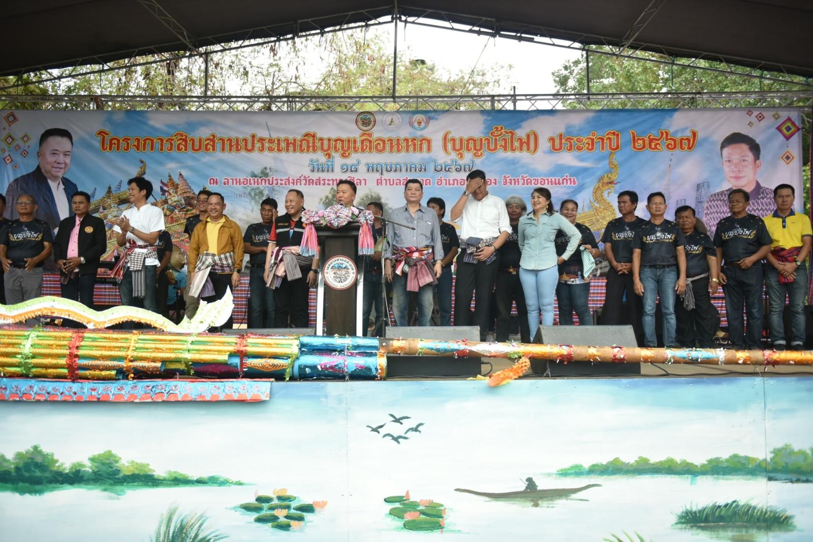 วันที่ 18 พฤษภาคม 2567 เวลา 09.00 น. ดร.พงษ์ศักดิ์ ตั้งวานิชกพงษ์ นายกองค์การบริหารส่วนจังหวัดขอนแก่น เป็นประธานเปิดโครงการสืบสานงานประเพณีบุญเดือนหก ประจำปี 2567 เทศบาลตำบลสะอาด โดยมี นายกรชวาลวิชญ์ ชัยพีรวัส นายอำเภอน้ำพอง กล่าวตอนรับ พร้อมด้วย นายศุภชัย ดอนกระสินธุ์ นายกเทศมนตรีตำบลสะอาด กล่าวรายงาน ในโอกาสนี้มี ดร.เอกราช ช่างเหลา สมาชิกสภาผู้แทนราษฎร จังหวัดขอนแก่น เขต 4 นายมนต์ชัย ศรีวิไลลักษณ์ ส.อบจ.ขอนแก่น อ.น้ำพอง เขต 1 นายรุ่งโรจน์ เย็นสบาย ส.อบจ.ขอนแก่น เขต อ.อุบลรัตน์ พร้อมด้วยคณะผู้บริหาร สมาชิกสภา พนักงาน เทศบาลตำบลสะอาด และประชาชนชาวตำบลสะอาดร่วมในพิธี ณ วัดสระทรงศิลา เทศบาลตำบลสะอาด อำเภอน้ำพอง จังหวัดขอนแก่น