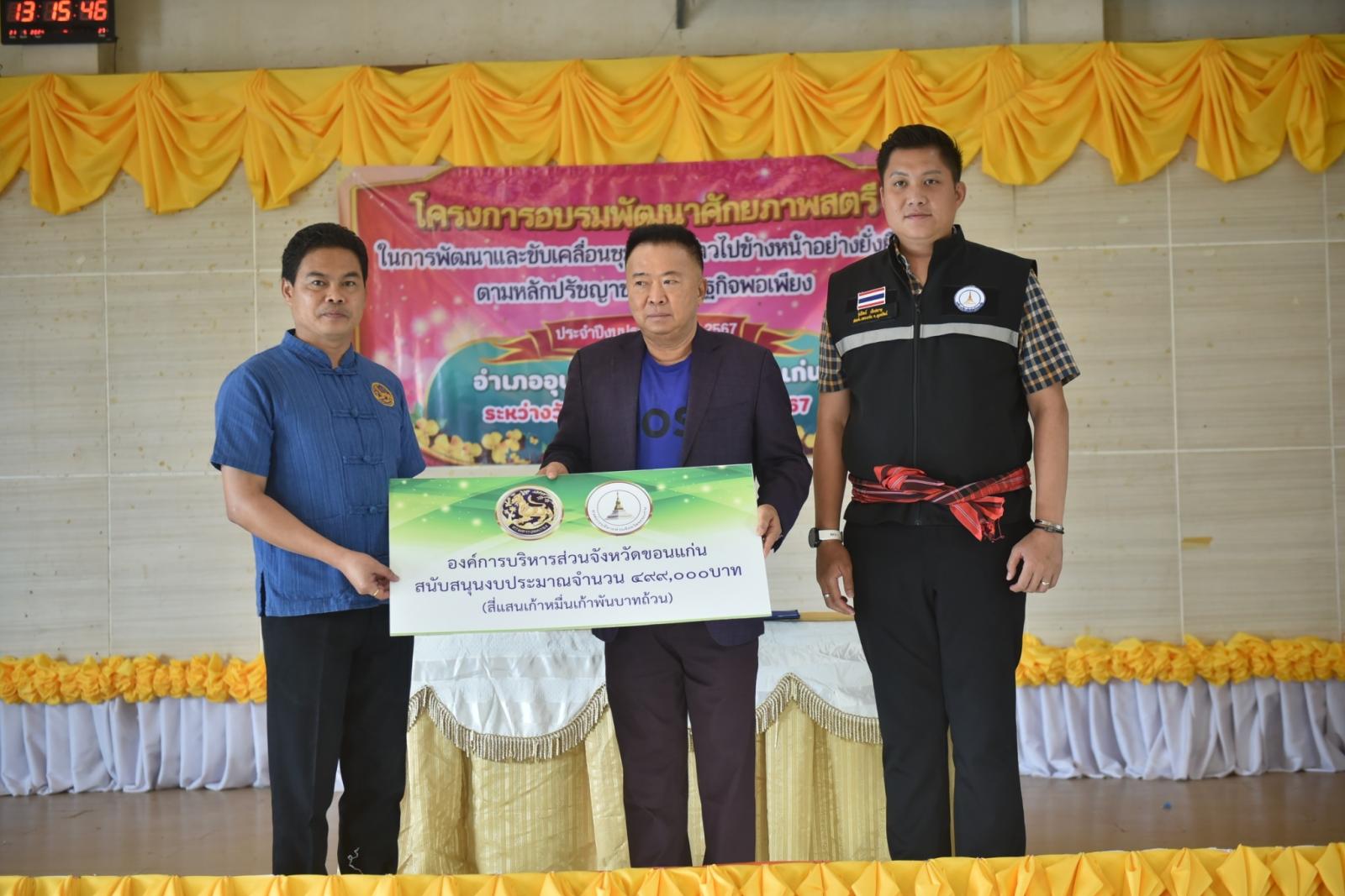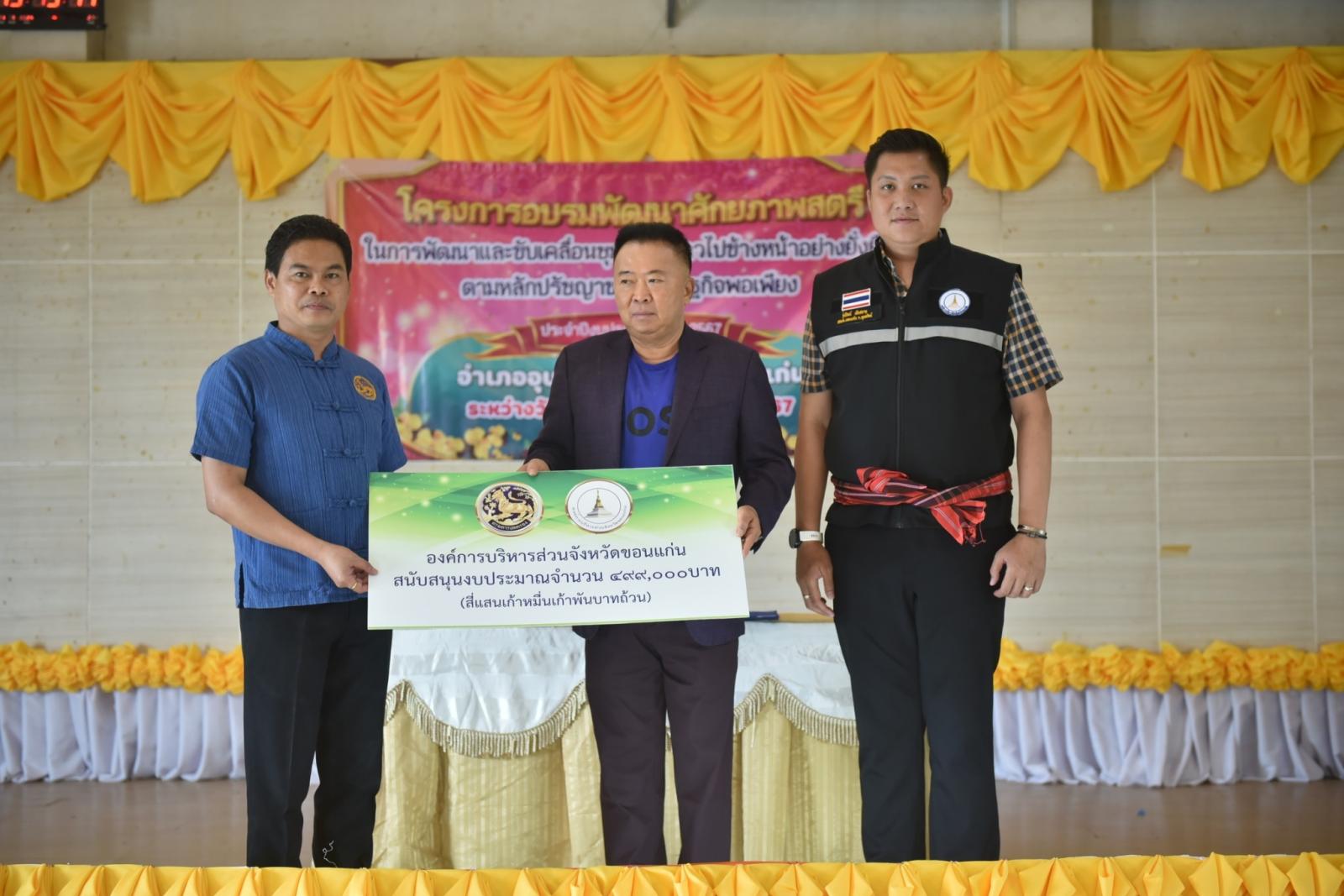 วันที่ 21 พฤษภาคม 2567 เวลา 11.00 น. ดร.พงษ์ศักดิ์ ตั้งวานิชกพงษ์ นายกองค์การบริหารส่วนจังหวัดขอนแก่น เป็นประธานเปิดโครงการอบรมพัฒนาศักยภาพสตรี ในการพัฒนาและขับเคลื่อนชุมชนให้ก้าวไปข้างหน้าอย่างยั่งยืน ตามหลักปรัชญาของเศรษฐกิจพอเพียง ประจำปีงบประมาณ 2567 โดยมี นายกรุง นามสง่า นายอำเภออุบลรัตน์ กล่าวรายงาน ในโอกาสนี้มี นายรุ่งโรจน์ เย็นสบาย ส.อบจ.ขอนแก่น เขต อ.อุบลรัตน์ พร้อมด้วย คณะผู้นำท้องถิ่น ผู้นำท้องที่ ร่วมเป็นเกียรติในพิธี ณ ศูนย์ประชุมอเนกประสงค์ (OTOP) อำเภออุบลรัตน์ จังหวัดขอนแก่น