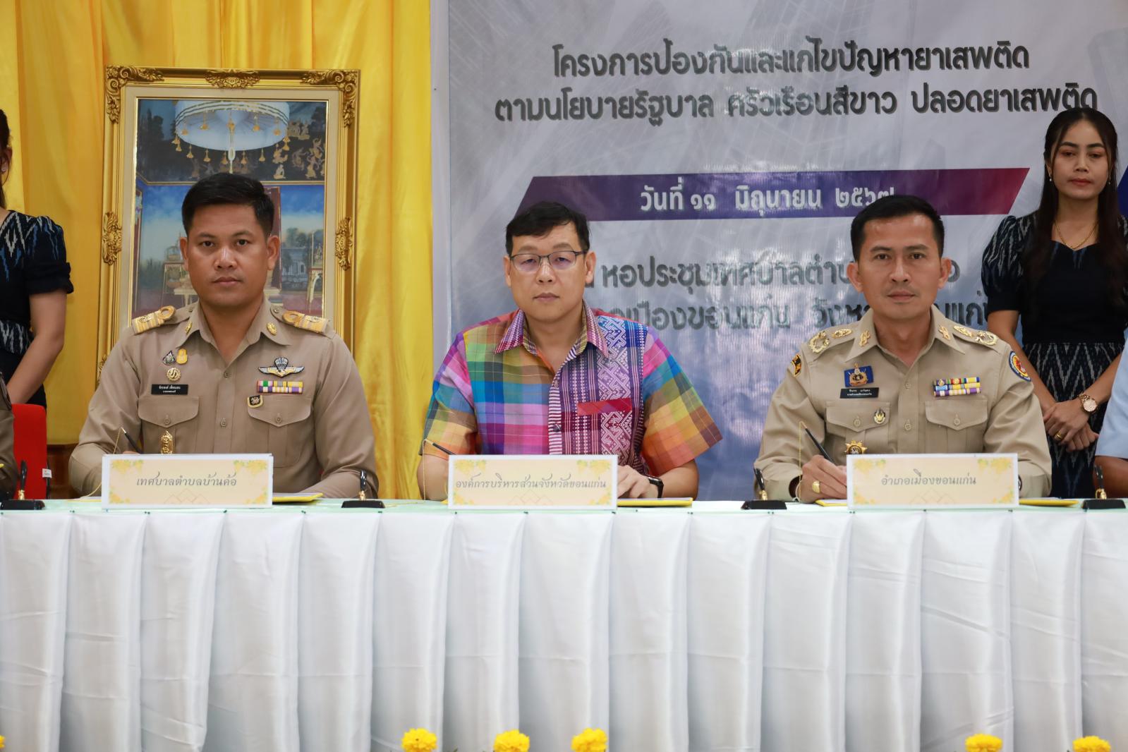 เมื่อวันที่ 11 มิถุนายน 2567 เวลา 13.00 น. ดร.พงษ์ศักดิ์ ตั้งวานิชกพงษ์ นายก อบจ.ขอนแก่น มอบหมายให้ นายประสิทธิ์ ทองแท่งไทย รองนายก อบจ.ขอนแก่น ร่วมพิธีลงนามข้อตกลงร่วม (MOU) โครงการป้องกันและแก้ไขปัญหายาเสพติด ตามนโยบายรัฐบาล ครัวเรือนสีขาว ปลอดยาเสพติด โดยมี นายจักรพงศ์ เพชรแสน นายก ทต.บ้านค้อ, นายชินกร แก่นคง นายอำเภอเมืองขอนแก่น, พ.ต.อ.รุ่งศักดิ์ จงกลรัตน์ ผกก.สภ.เวฬุวัน ผู้แทนเจ้าคณะตำบลบ้านค้อ สาธารณสุขอำเภอเมืองขอนแก่น กำนันตำบลบ้านค้อ และโรงเรียนบ้านหินลาดวังตอ ร่วมลงนามข้อตกลงในครั้งนี้ ณ หอประชุมเทศบาลตำบลบ้านค้อ ต.เมืองขอนแก่น จ.ขอนแก่น
