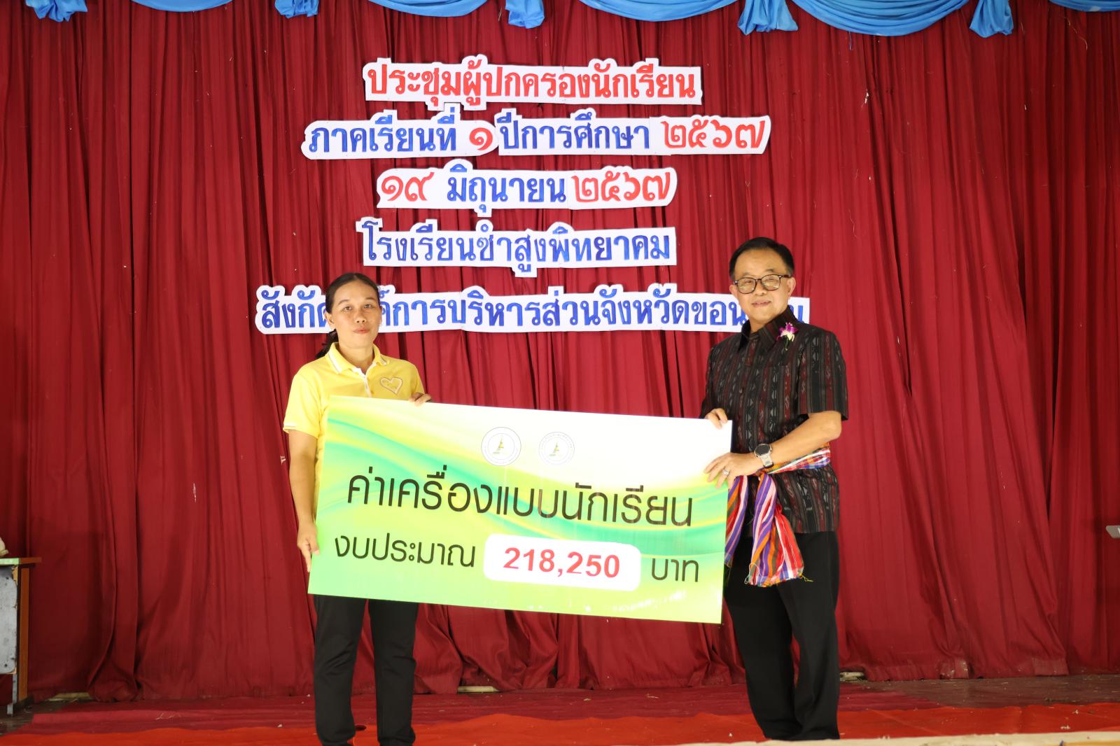เมื่อวันที่ 19 มิถุนายน 2567 เวลา 11.00 น. องค์การบริหารส่วนจังหวัดขอนแก่น นำโดย ดร.พงษ์ศักดิ์ ตั้งวานิชกพงษ์ นายกองค์การบริหารส่วนจังหวัดขอนแก่น ได้มอบหมายให้ นายธาดา พรหมสาขา ณ สกลนคร รองนายกองค์การบริหารส่วนจังหวัดขอนแก่น เป็นประธานในพิธีเปิดการประชุมผู้ปกครองโรงเรียนซำสูงพิทยาคม ประจำภาคเรียนที่ 1 ปีการศึกษา 2567 และมอบเงินอุดหนุนค่าเครื่องแบบนักเรียน ค่าอุปกรณ์การเรียน โดยมี นายวันเผด็จ มีชัย ผู้อำนวยการโรงเรียนซำสูงพิทยาคม กล่าวรายงาน และได้รับเกียรติจาก นายจรูญ อ่วยนอก ส.อบจ.ขอนแก่น เขตอำเภอซำสูง นางวารุณี สุดหล้า นายอำเภอซำสูง ผู้บริหารโรงเรียนในเขตอำเภอซำสูง ผู้นำท้องที่ ผู้นำท้องถิ่น ร่วมในพิธี ณ หอประชุมโรงเรียนซำสูงพิทยาคม อำเภอซำสูง จังหวัดขอนแก่น
