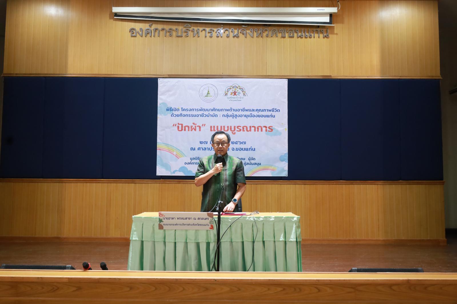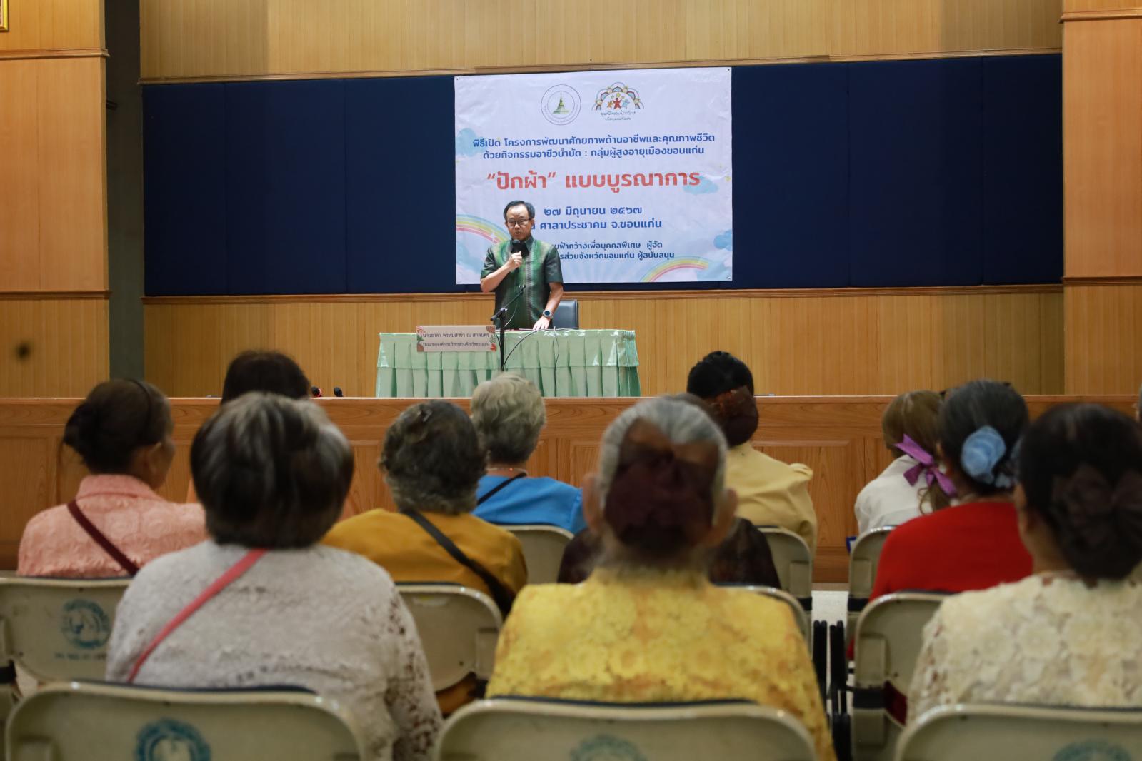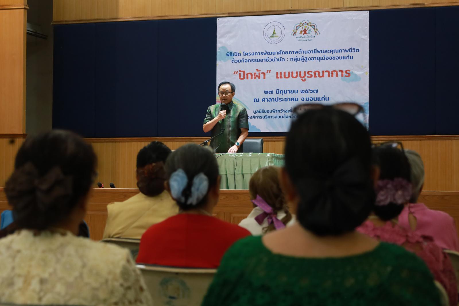 พิธีเปิดโครงการพัฒนาศักยภาพด้านอาชีพและคุณภาพชีวิตด้วยกิจกรรมอาชีวบำบัด : กลุ่มผู้สูงอายุเมืองขอนแก่น “ปักผ้า” แบบบูรณาการ