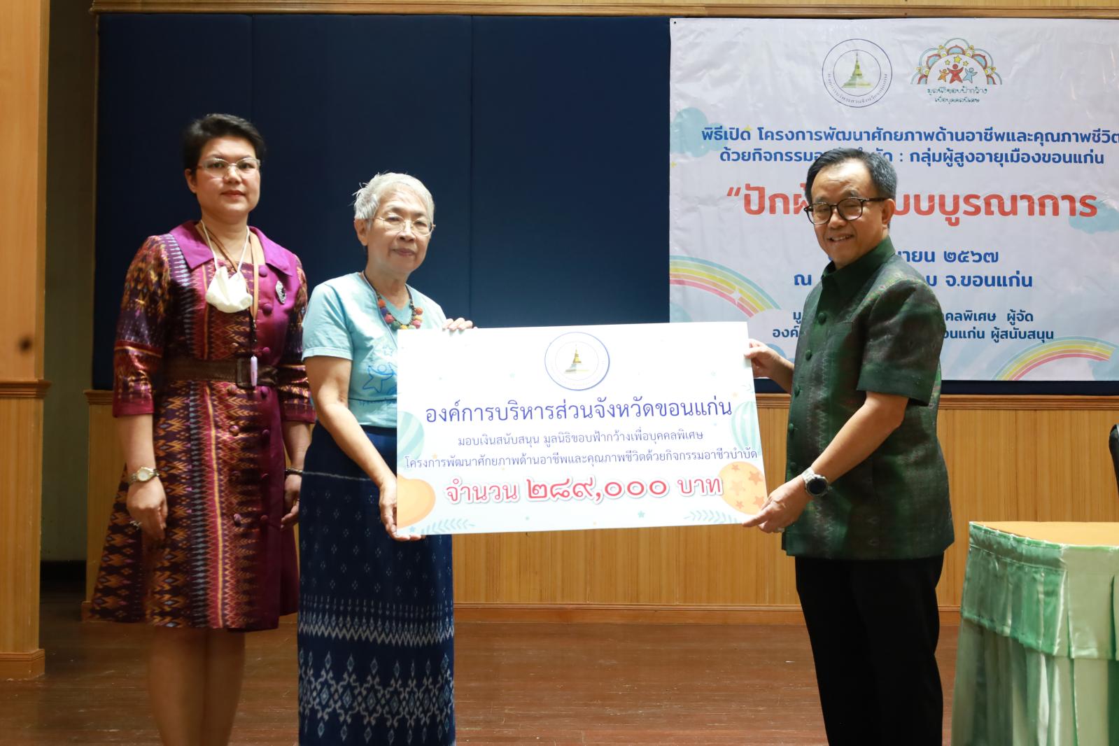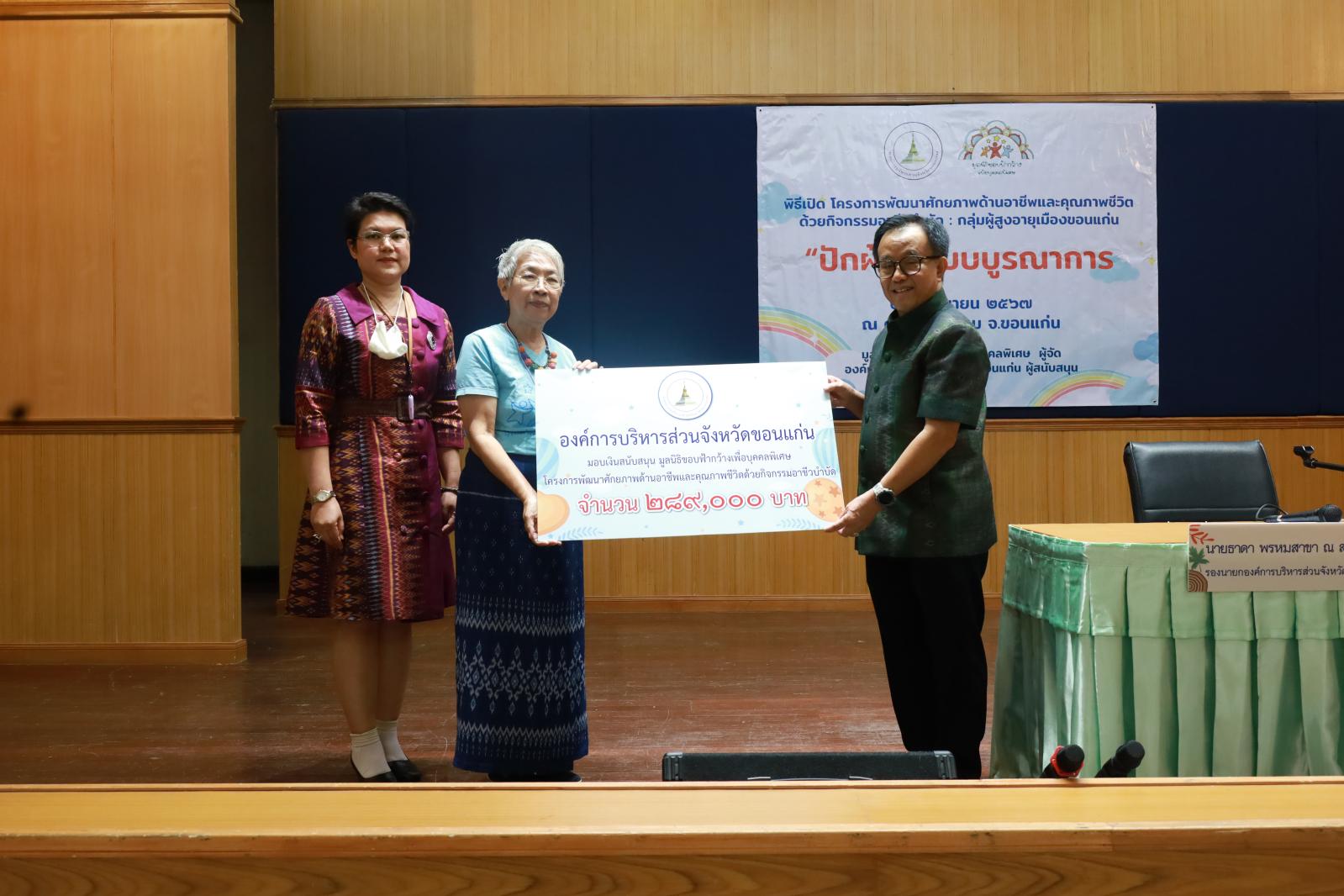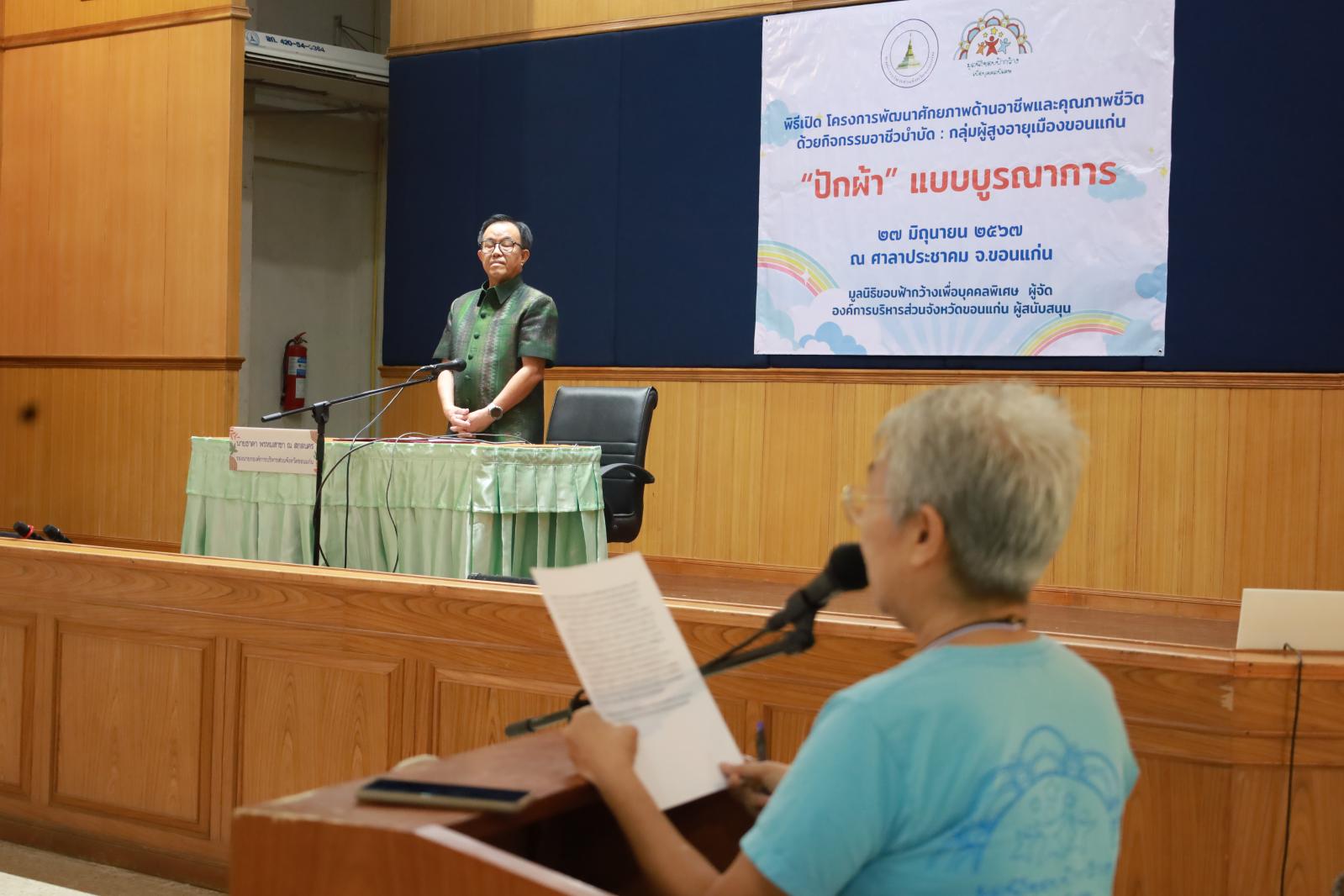 พิธีเปิดโครงการพัฒนาศักยภาพด้านอาชีพและคุณภาพชีวิตด้วยกิจกรรมอาชีวบำบัด : กลุ่มผู้สูงอายุเมืองขอนแก่น “ปักผ้า” แบบบูรณาการ