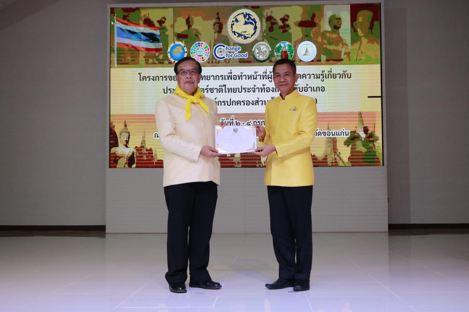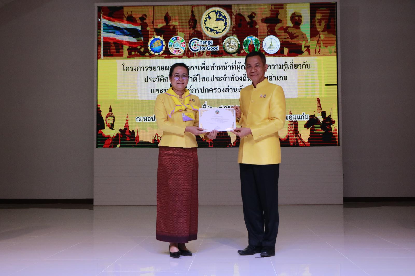 พิธีมอบใบประกาศนียบัตรผู้เข้าร่วมโครงการอบรมเชิงปฏิบัติการขยายผลวิทยากรเพื่อทำหน้าที่ผู้ถ่ายทอดความรู้เกี่ยวกับประวัติศาสตร์ชาติไทยประจำท้องถิ่นระดับอำเภอ (ครู ข)