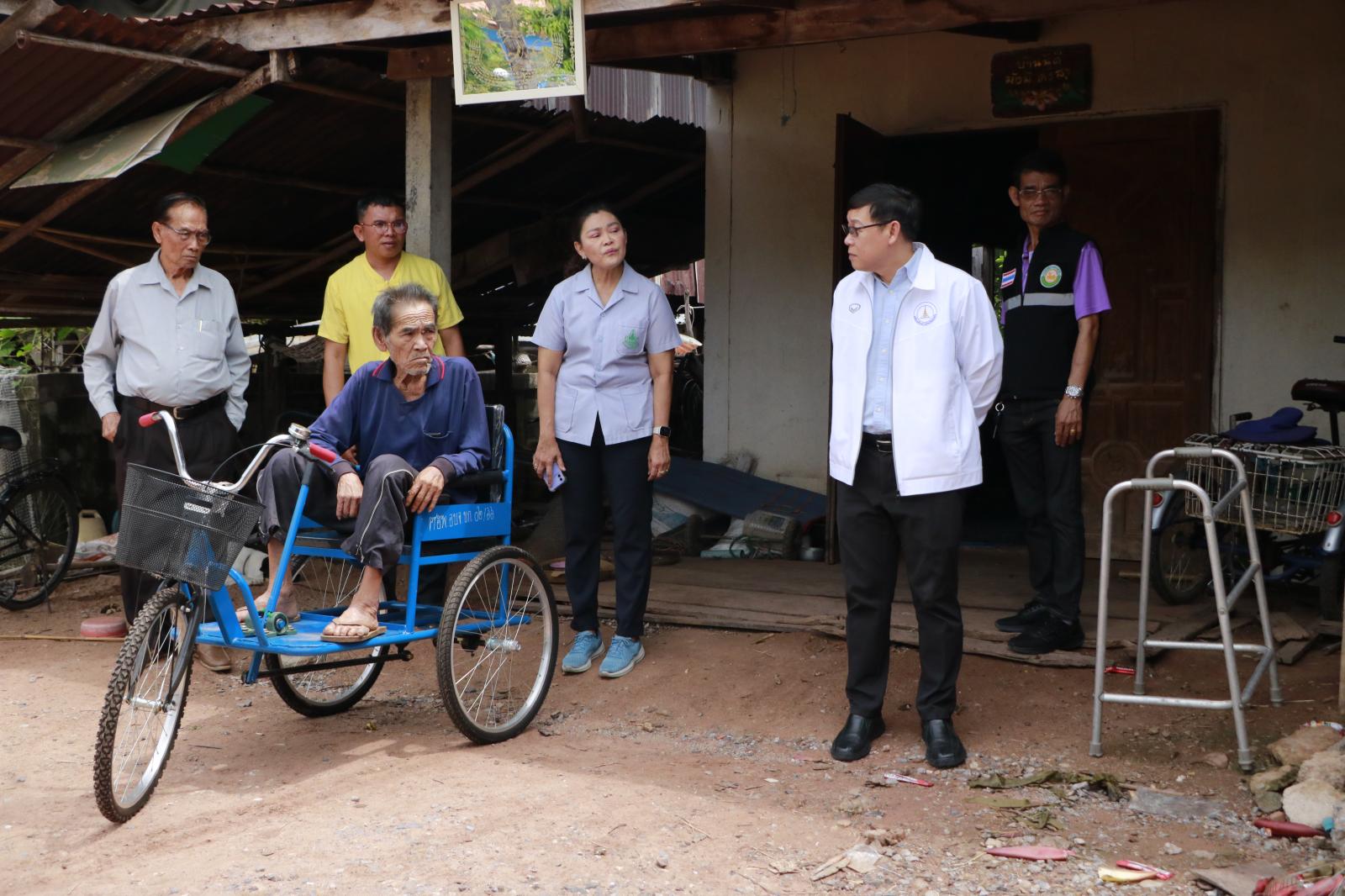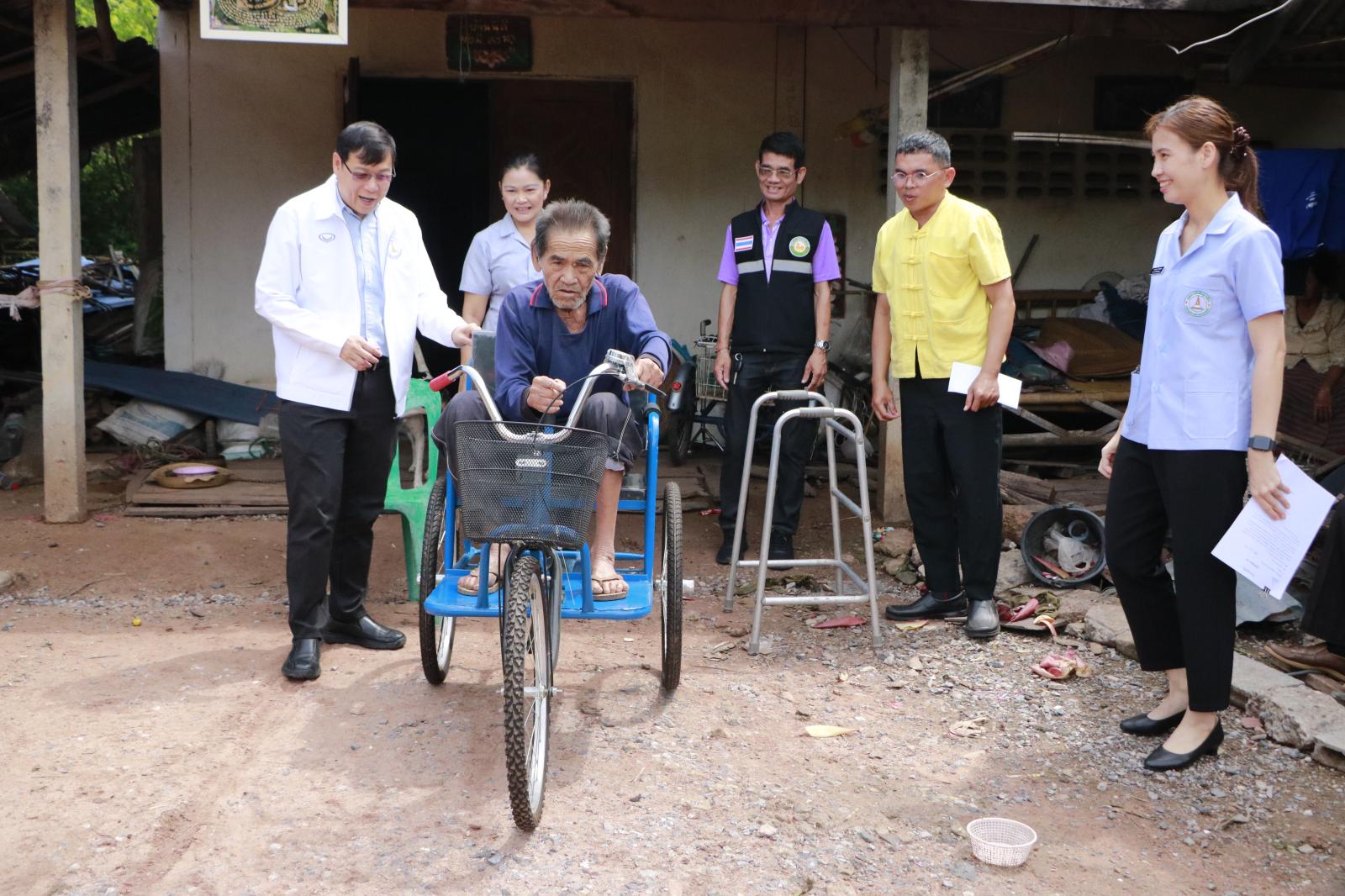เมื่อวันที่ 5 ก.ค 2567 เวลา 10.00 น. องค์การบริหารส่วนจังหวัดขอนแก่น นำโดย ดร.พงษ์ศักดิ์ ตั้งวานิชกพงษ์ นายกองค์การบริหารส่วนจังหวัดขอนแก่น มอบหมายให้ นายประสิทธิ์ ทองแท่งไทย รองนายกองค์การบริหารส่วนจังหวัดขอนแก่น พร้อมด้วยนางสมฤดี พื้นชมพู พยาบาลวิชาชีพชำนาญการพิเศษ และผู้แทนจากหน่วยงานภาครัฐที่เกี่ยวข้อง ร่วมมอบอุปกรณ์ทางการแพทย์ที่จำเป็นสำหรับผู้มีสิทธิ์ได้รับการฟื้นฟูสมรรถภาพ (ผู้สูงอายุ ผู้พิการ ผู้ป่วยที่อยู่ในระยะกึ่งเฉียบพลันและผู้มีภาวะพึ่งพึง จำนวน 1 ราย โดยมอบรถโยกสำหรับคนพิการ เพื่อให้ใช้กับ นายมาย แก้วปัญญา อายุ 82 ปี วินิจฉัยโรคผู้ป่วยภาวะพึ่งพิงปัญหาด้านการเคลื่อนไหวเป็นคนพิการประเภท 3 (ทางการเคลื่อนไหว) ณ บ้านเลขที่ 62 หมู่ 3 ต.ใหม่นาเพียง อ.แวงใหญ่ จ.ขอนแก่น (ทางการเคลื่อนไหว)
