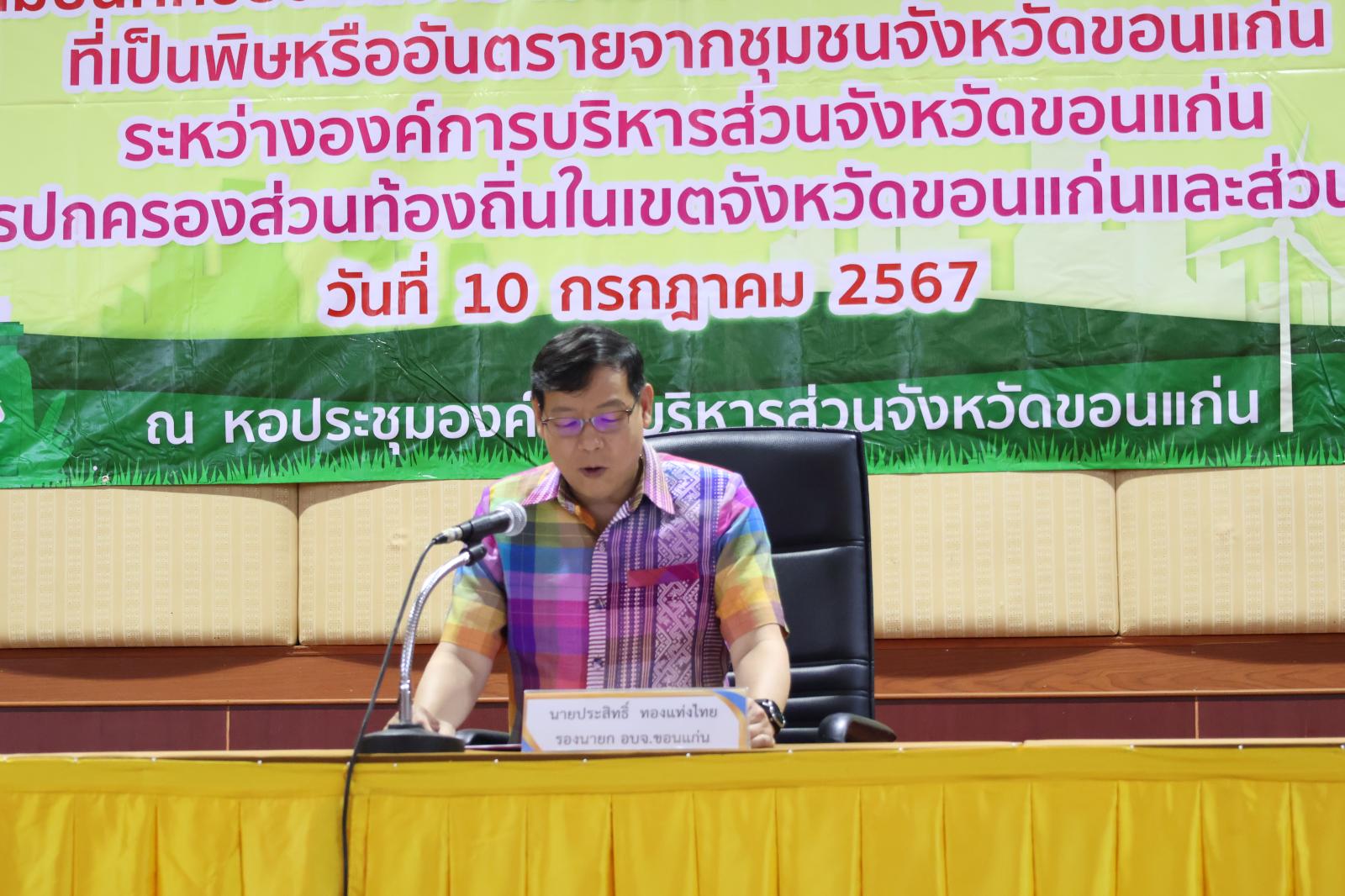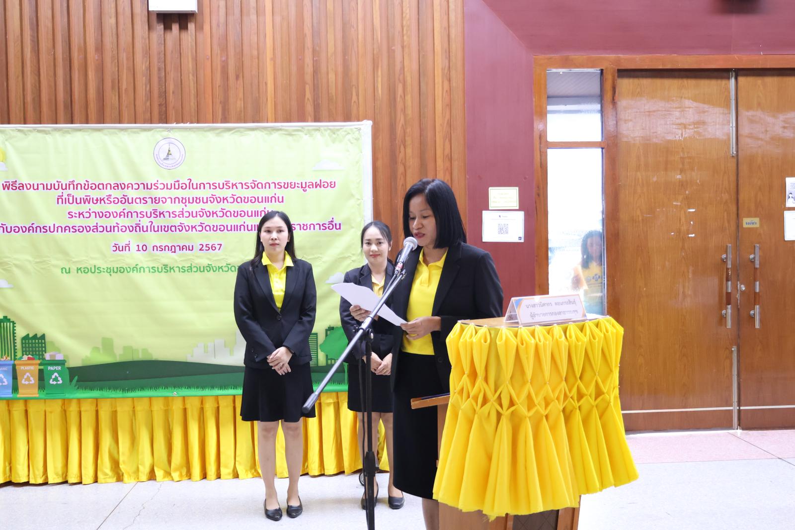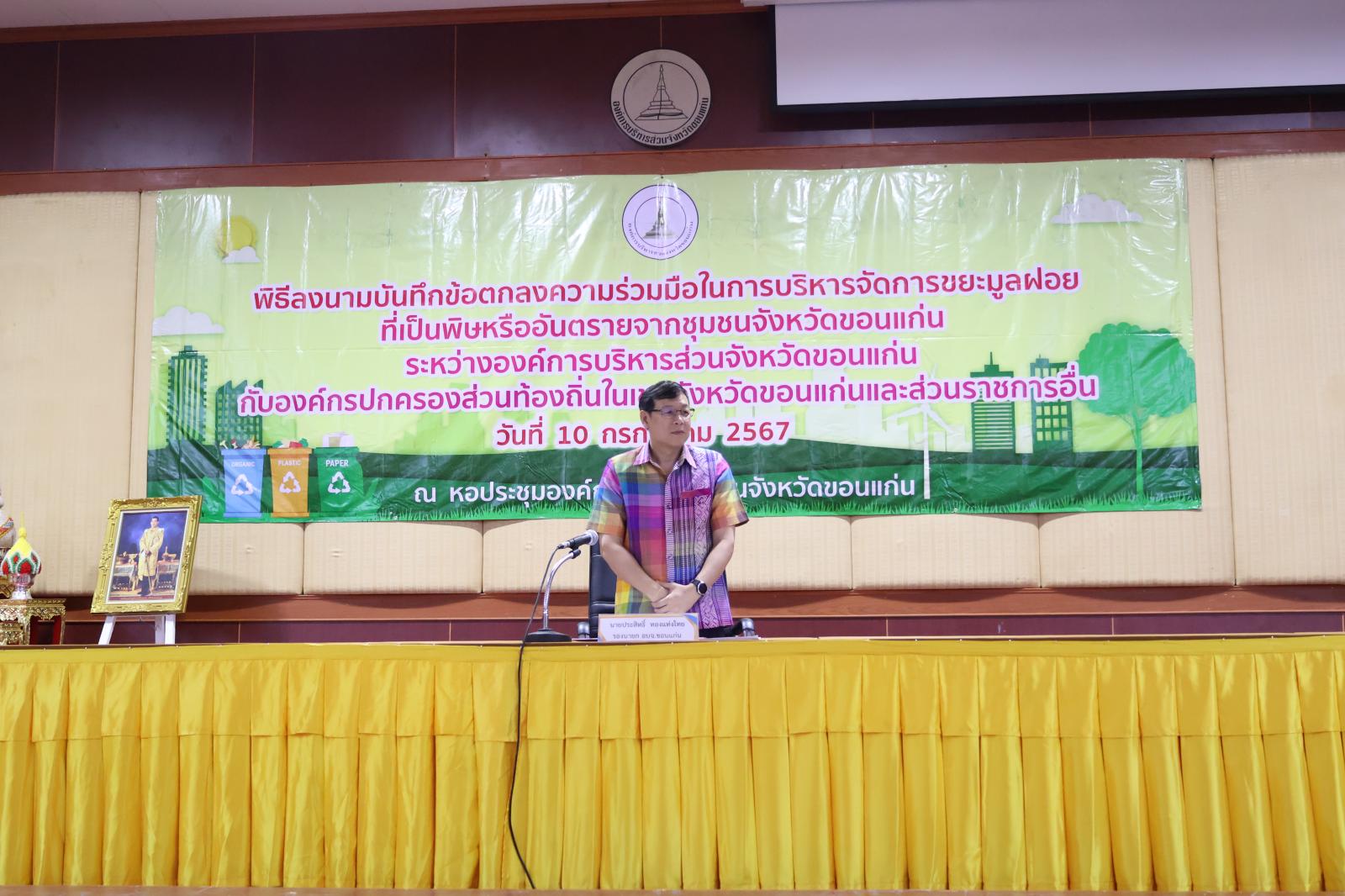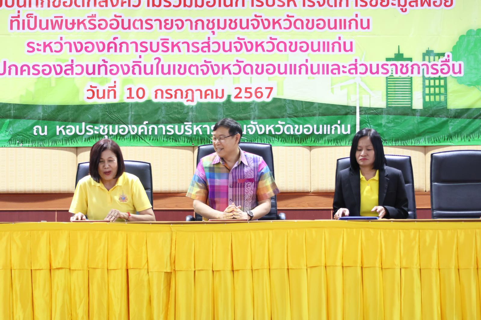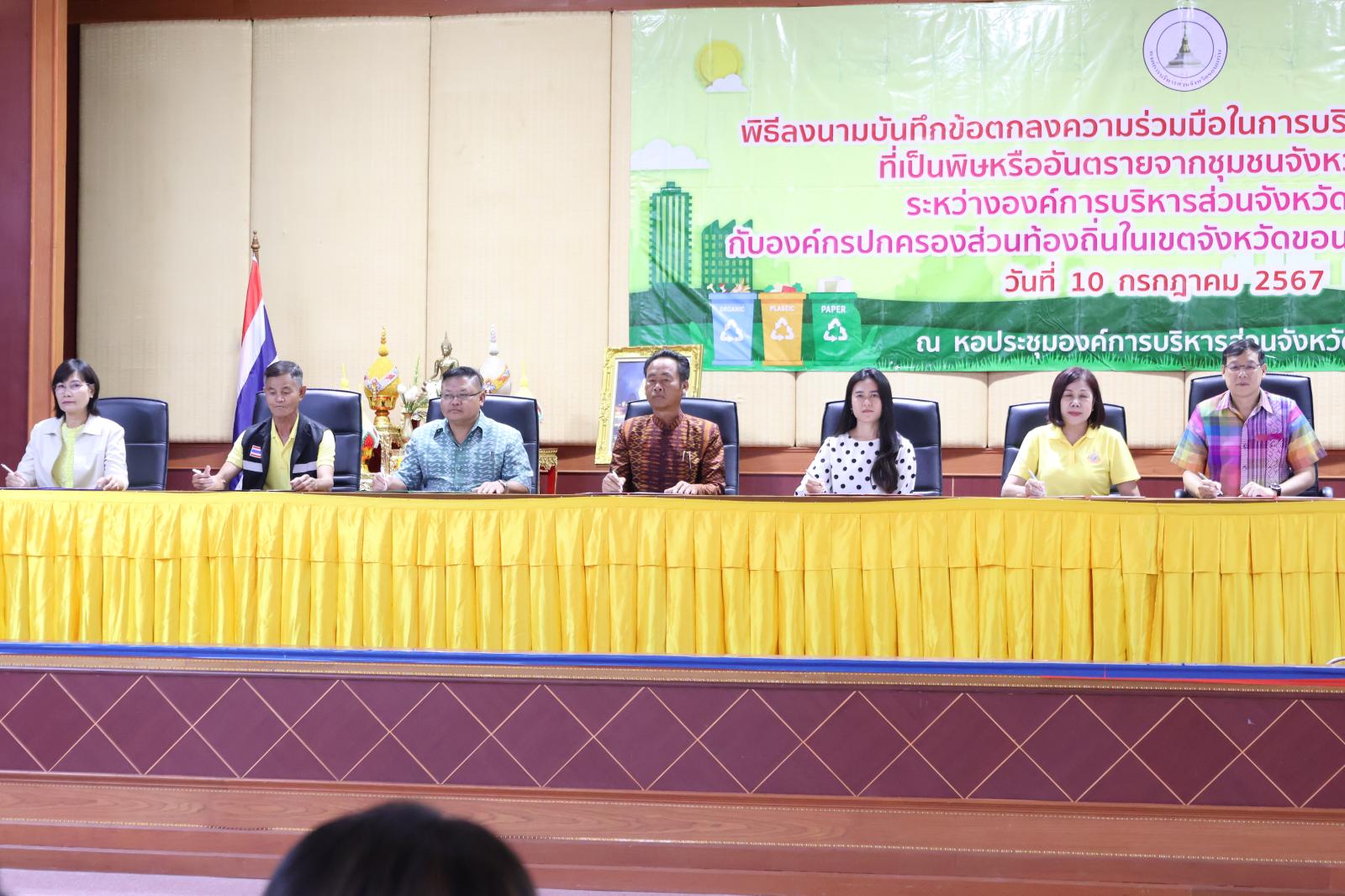 เมื่อวันที่ 10 กรกฎาคม 2567 เวลา 13.30 น. องค์การบริหารส่วนจังหวัดขอนแก่น นำโดย ดร.พงษ์ศักดิ์ ตั้งวานิชกพงษ์ นายกองค์การบริหารส่วนจังหวัดขอนแก่น มอบหมายให้ นายประสิทธิ์ ทองแท่งไทย รองนายกองค์การบริหารส่วนจังหวัดขอนแก่น เป็นประธานในพิธีลงนามบันทึกข้อตกลงว่าด้วยความร่วมมือในการบริหารจัดการขยะมูลฝอยที่เป็นพิษหรืออันตรายจากชุมชนจังหวัดขอนแก่น ระหว่างองค์การบริหารส่วนจังหวัดขอนแก่น กับองค์กรปกครองส่วนท้องถิ่นและส่วนราชการอื่นจำนวน 225 แห่ง โดยมี นางสาวนิศากร ดอนกระสินธุ์ ผู้อำนวยการกองสาธารณสุข กล่าวรายงาน ในโอกาสนี้มี นางอาซีซะ ว่องไว รองปลัดองค์การบริหารส่วนจังหวัดขอนแก่น นายอัครพงษ์ เขียวแจ่ม ผู้อำนวยการสำนักงานทรัพยากรธรรมชาติและสิ่งแวดล้อม นางศริญญา วิถีเทพ ผู้อำนวยการกลุ่มงานบริการสาธารณภัยท้องถิ่น นายบุญมี ราญมีชัยผู้อำนวยการส่วนบริการและเผยแพร่วิชาการสำนักยุทธศาสตร์และงบประมาณ ข้าราชการและเจ้าหน้าที่ อบจ.ขอนแก่น เข้าร่วมเป็นเกียรติในพิธี ณ หอประชุมองค์การบริหารส่วนจังหวัดขอนแก่น อ.เมือง จ.ขอนแก่น