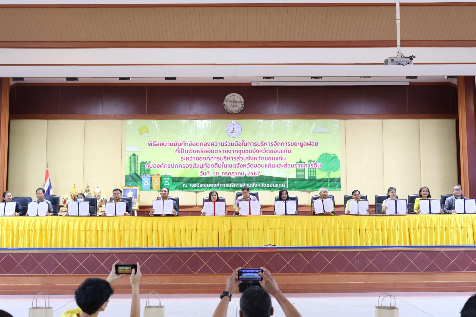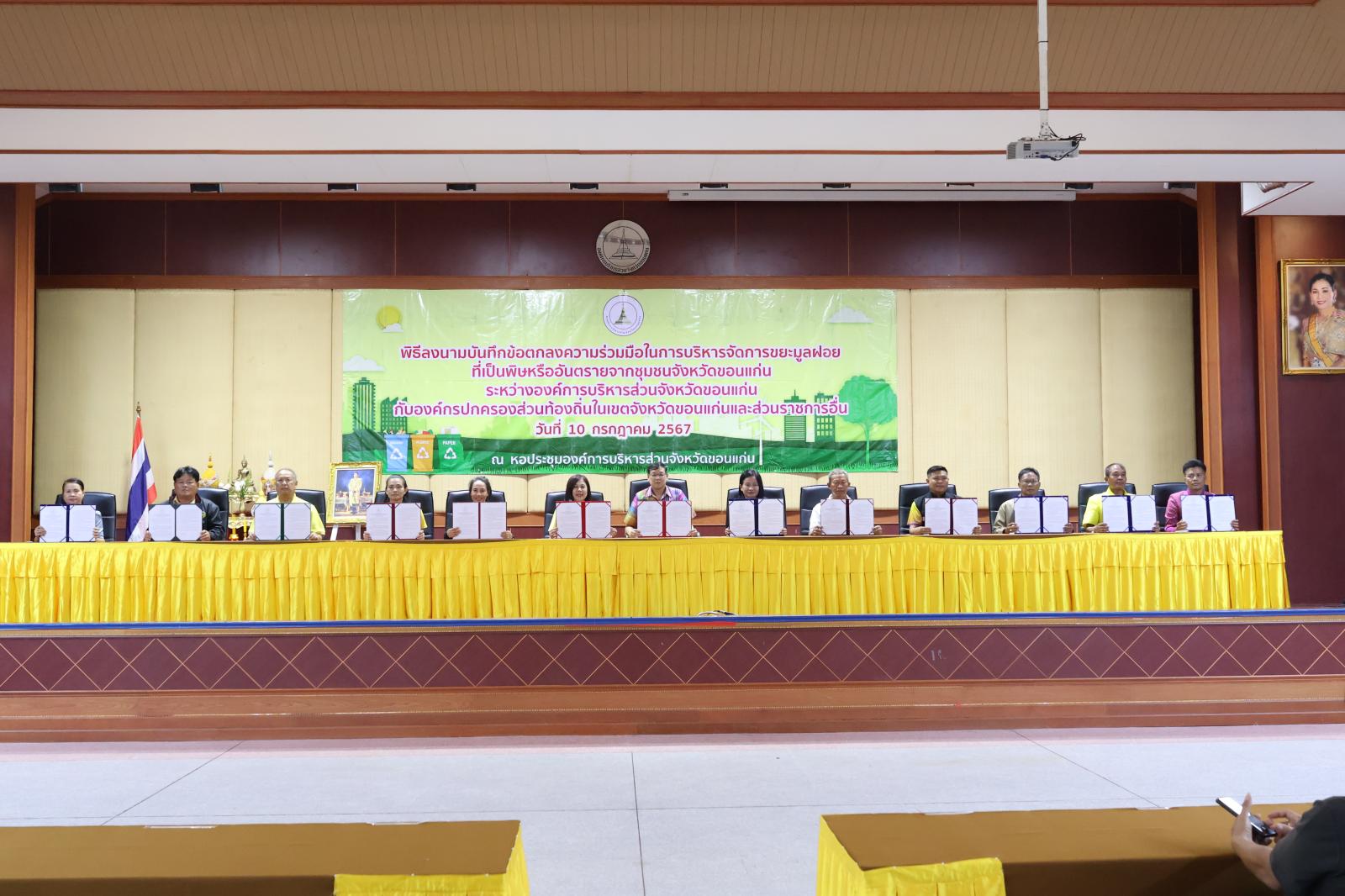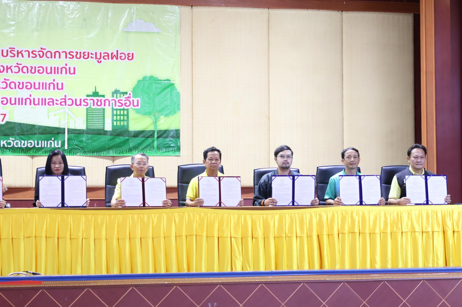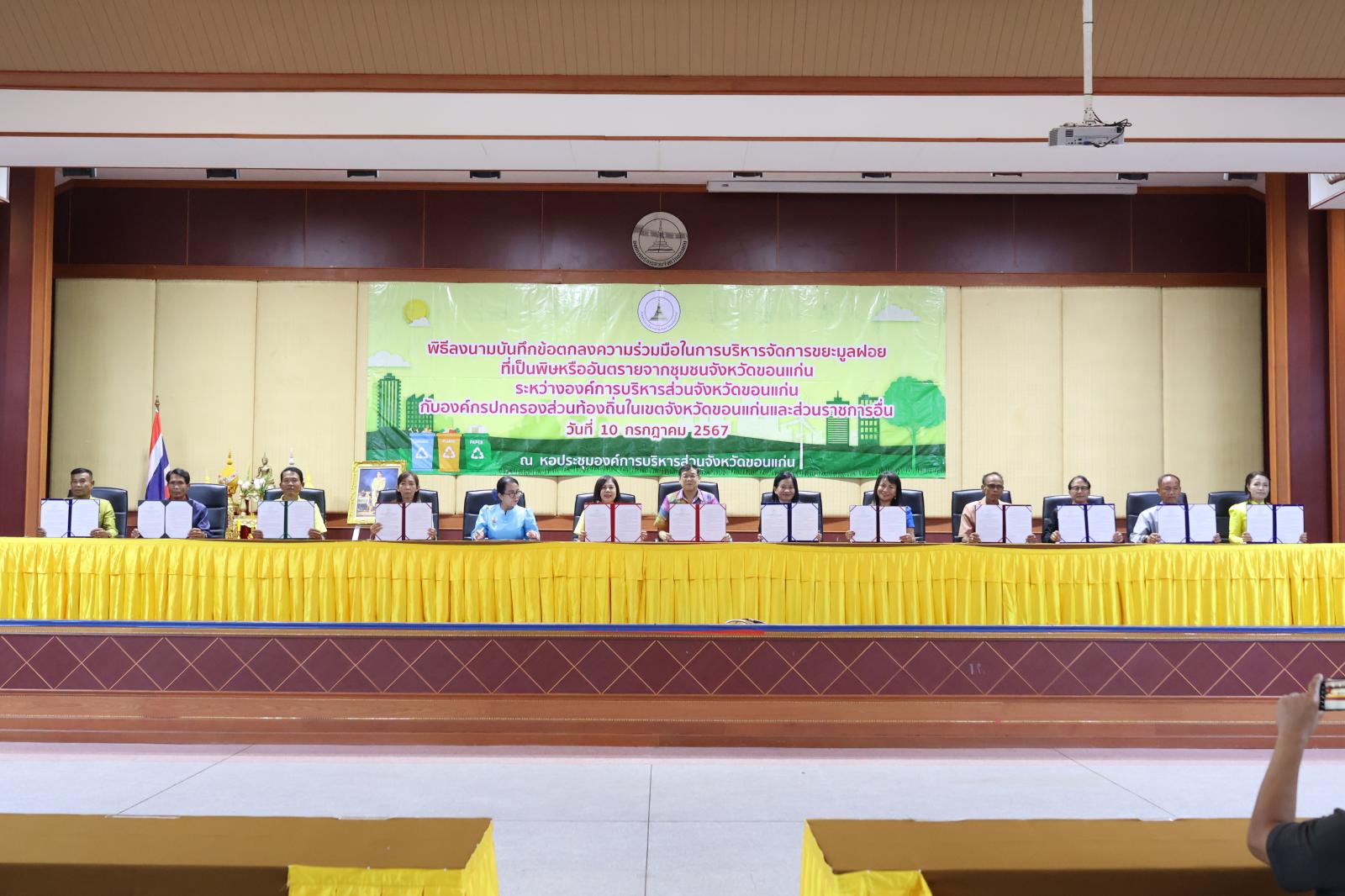 พิธีลงนามบันทึกข้อตกลงว่าด้วยความร่วมมือในการบริหารจัดการขยะมูลฝอยที่เป็นพิษหรืออันตรายจากชุมชนจังหวัดขอนแก่น ระหว่างองค์การบริหารส่วนจังหวัดขอนแก่น กับองค์กรปกครองส่วนท้องถิ่นและส่วนราชการอื่นจำนวน 225 แห่ง