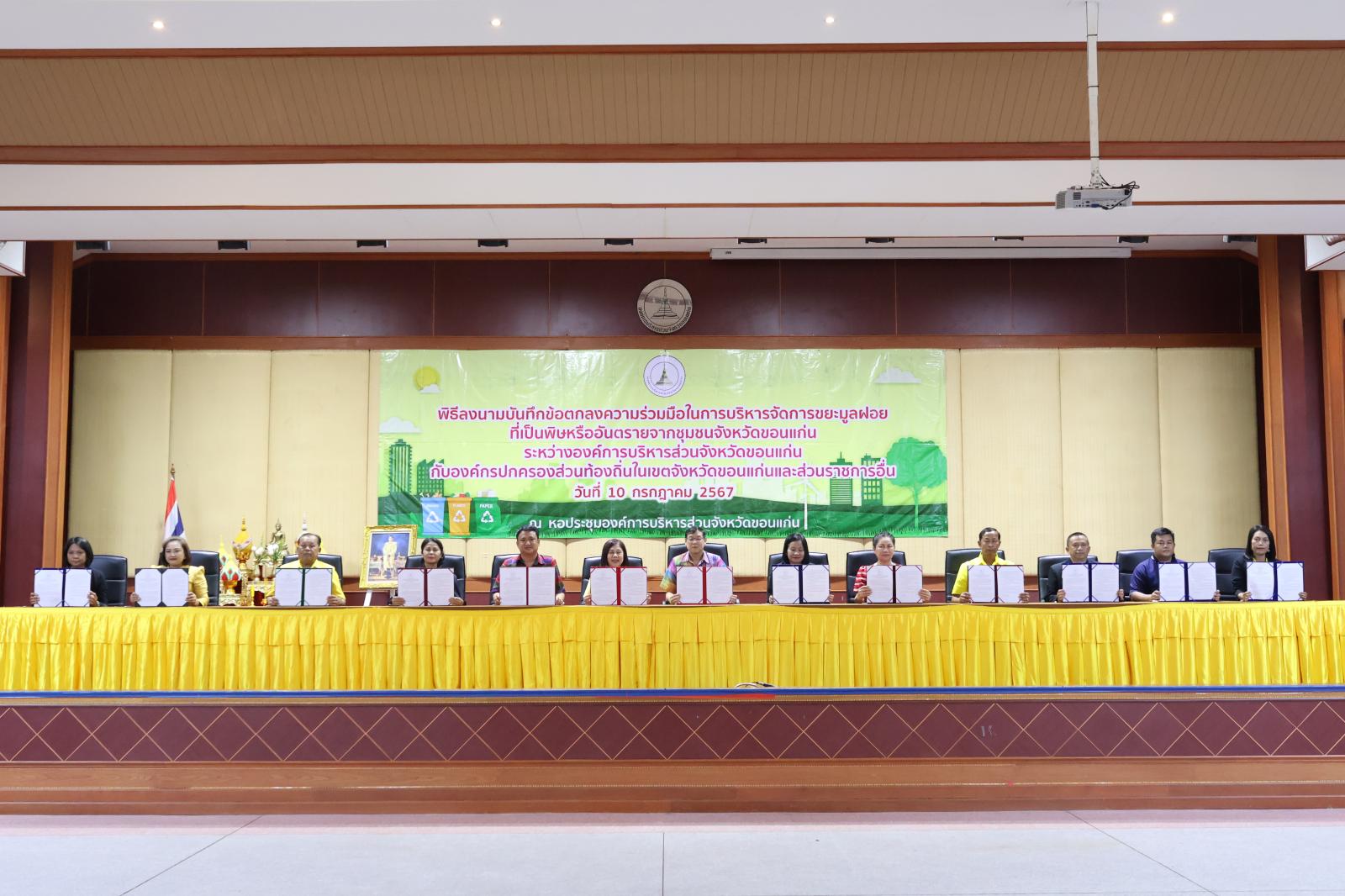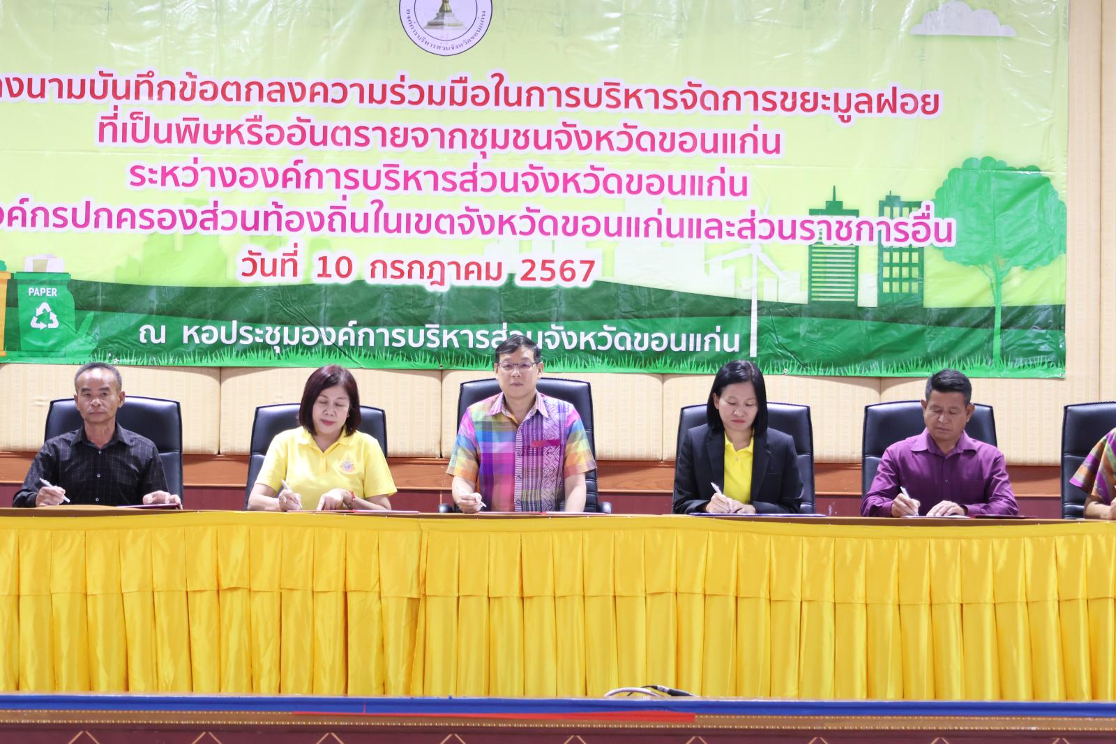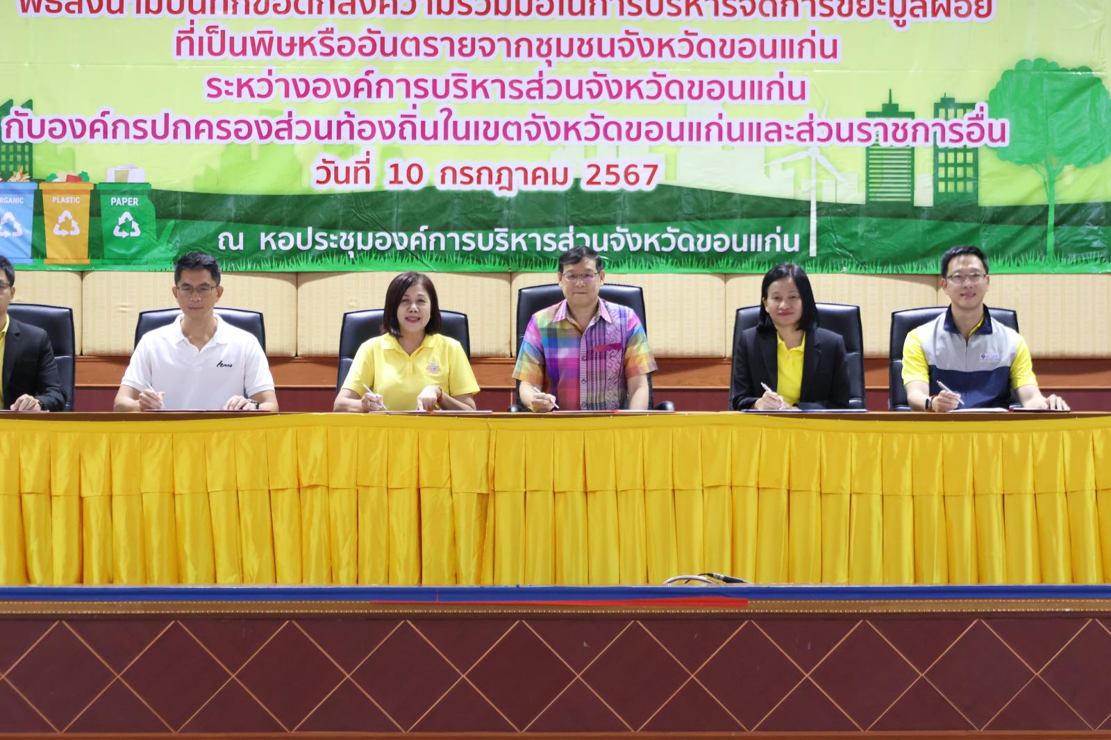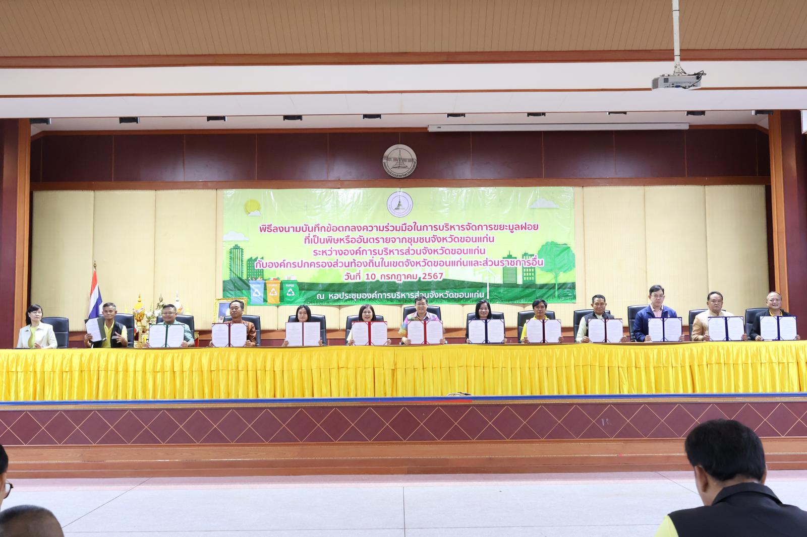 พิธีลงนามบันทึกข้อตกลงว่าด้วยความร่วมมือในการบริหารจัดการขยะมูลฝอยที่เป็นพิษหรืออันตรายจากชุมชนจังหวัดขอนแก่น ระหว่างองค์การบริหารส่วนจังหวัดขอนแก่น กับองค์กรปกครองส่วนท้องถิ่นและส่วนราชการอื่นจำนวน 225 แห่ง