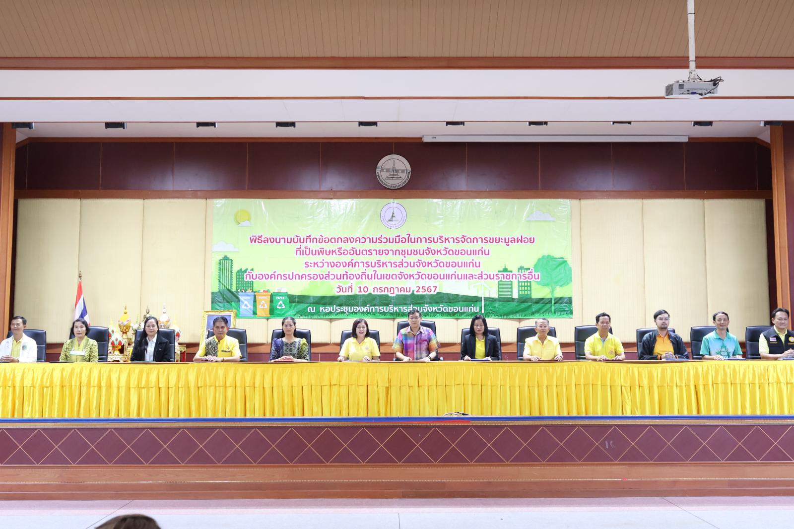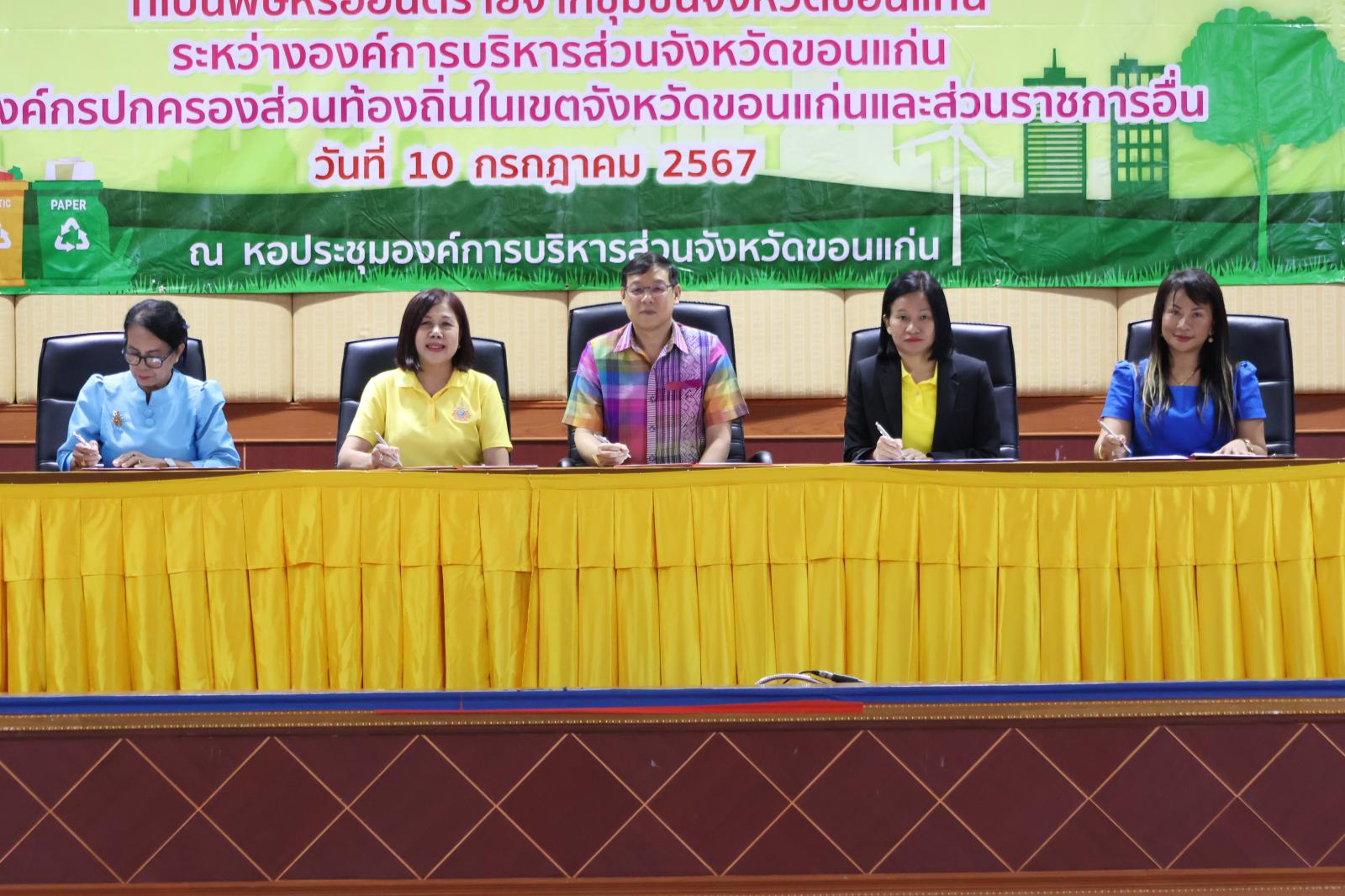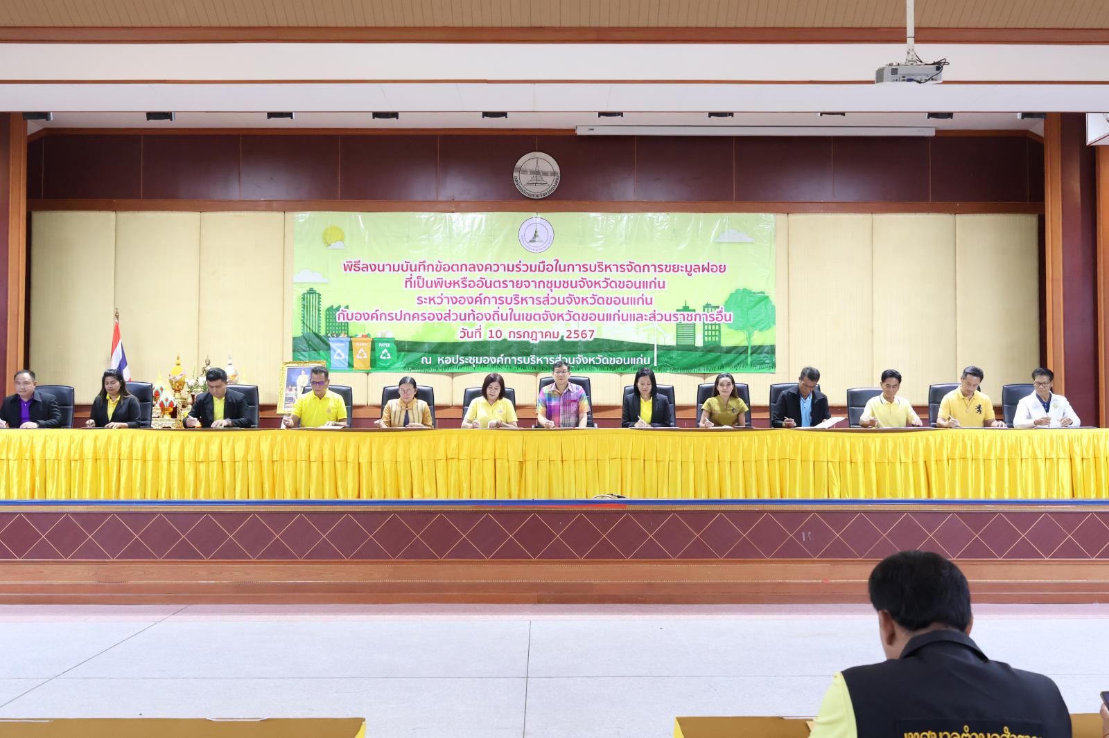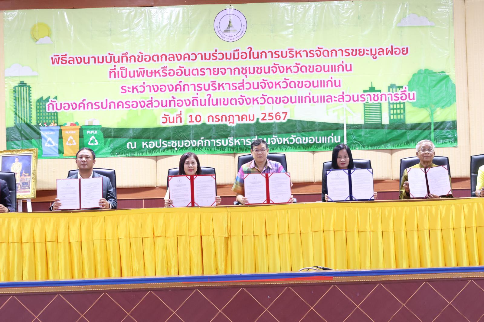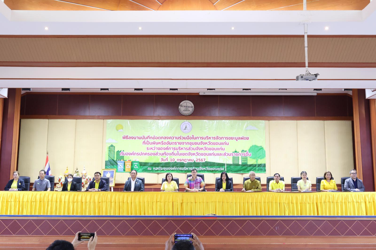 พิธีลงนามบันทึกข้อตกลงว่าด้วยความร่วมมือในการบริหารจัดการขยะมูลฝอยที่เป็นพิษหรืออันตรายจากชุมชนจังหวัดขอนแก่น ระหว่างองค์การบริหารส่วนจังหวัดขอนแก่น กับองค์กรปกครองส่วนท้องถิ่นและส่วนราชการอื่นจำนวน 225 แห่ง
