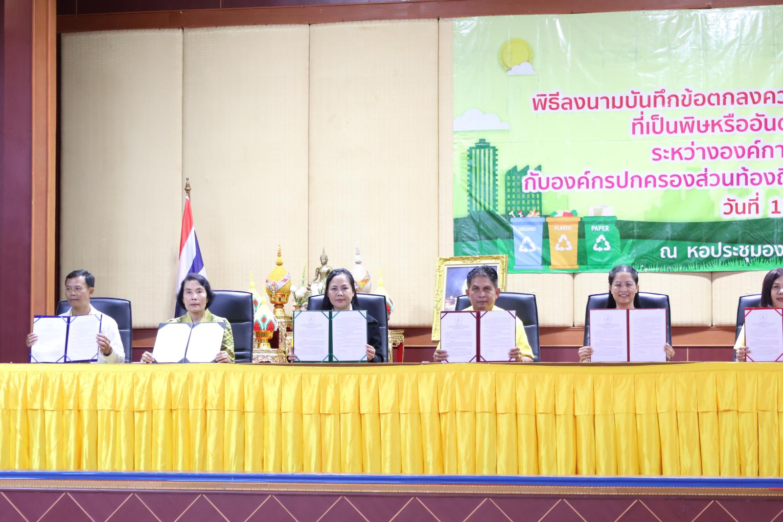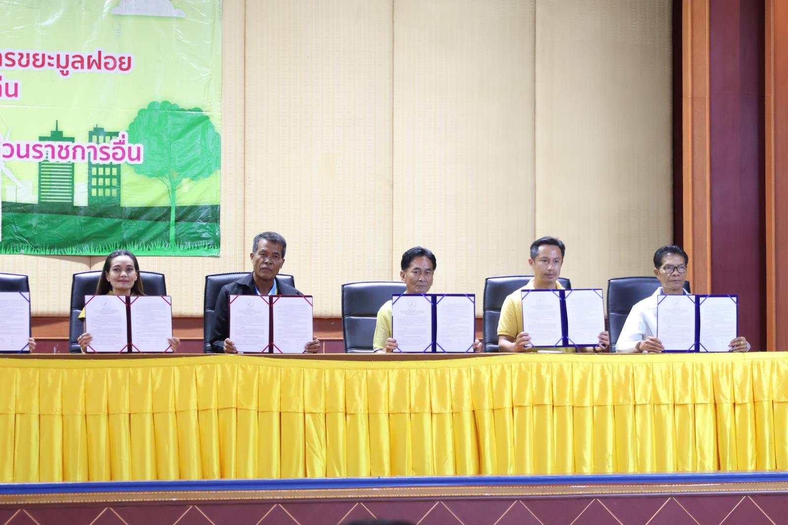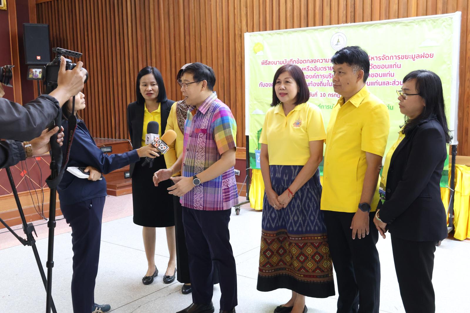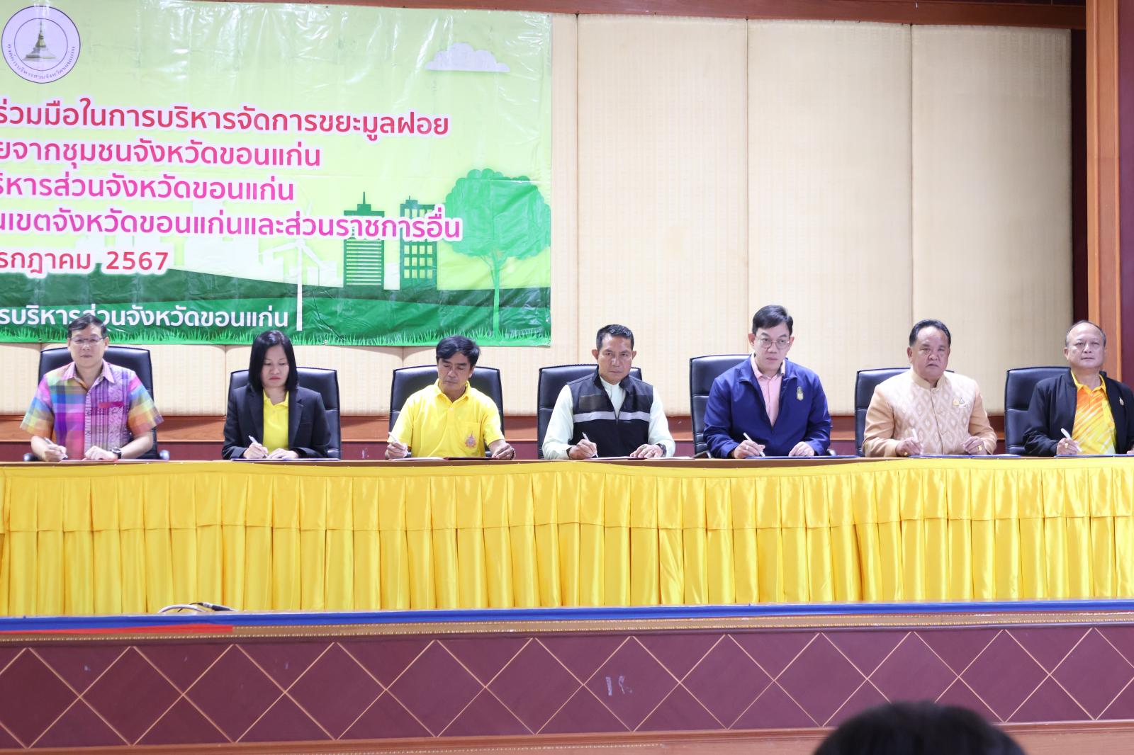 พิธีลงนามบันทึกข้อตกลงว่าด้วยความร่วมมือในการบริหารจัดการขยะมูลฝอยที่เป็นพิษหรืออันตรายจากชุมชนจังหวัดขอนแก่น ระหว่างองค์การบริหารส่วนจังหวัดขอนแก่น กับองค์กรปกครองส่วนท้องถิ่นและส่วนราชการอื่นจำนวน 225 แห่ง