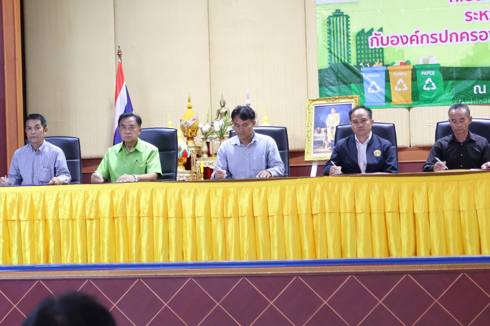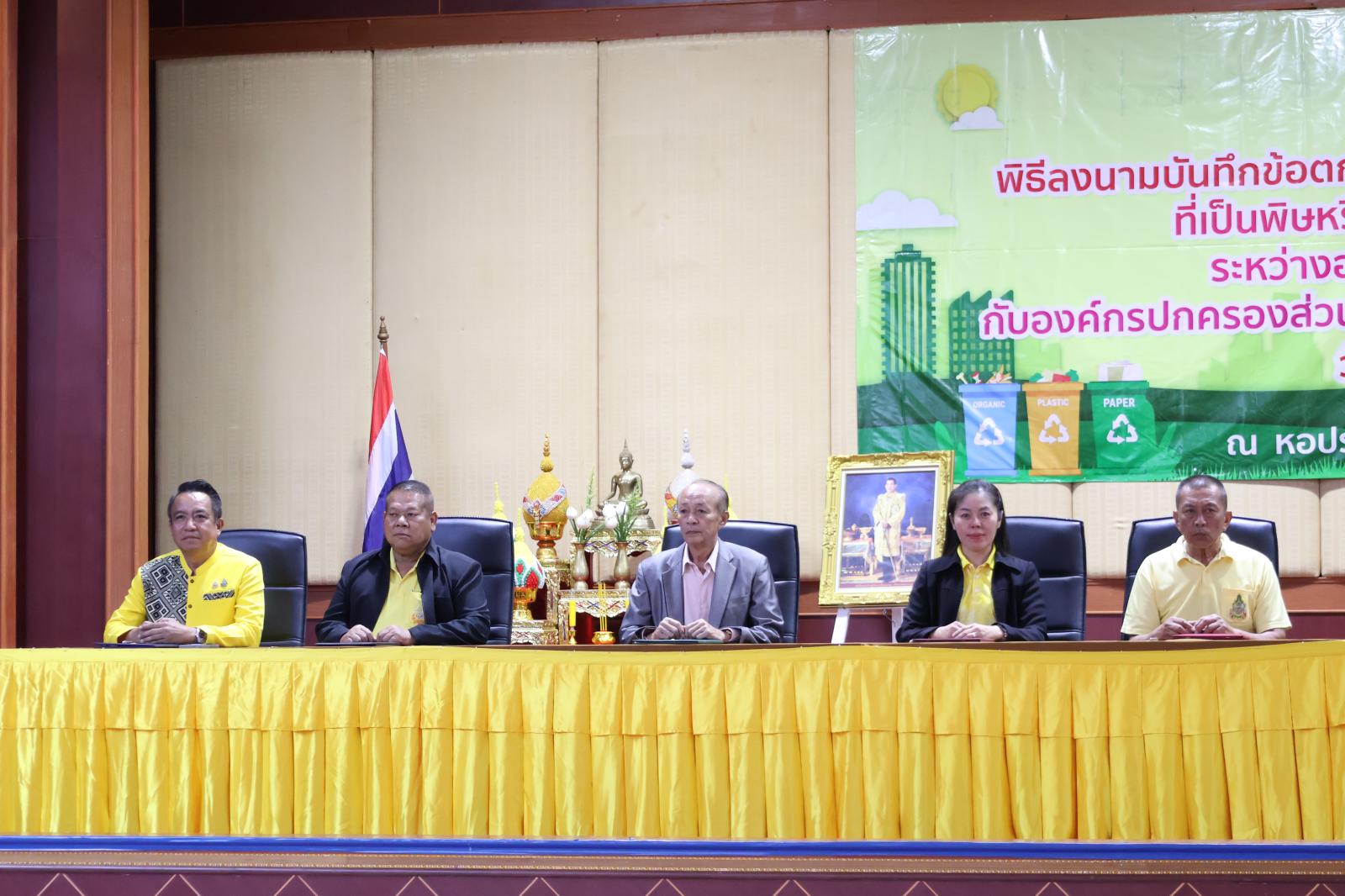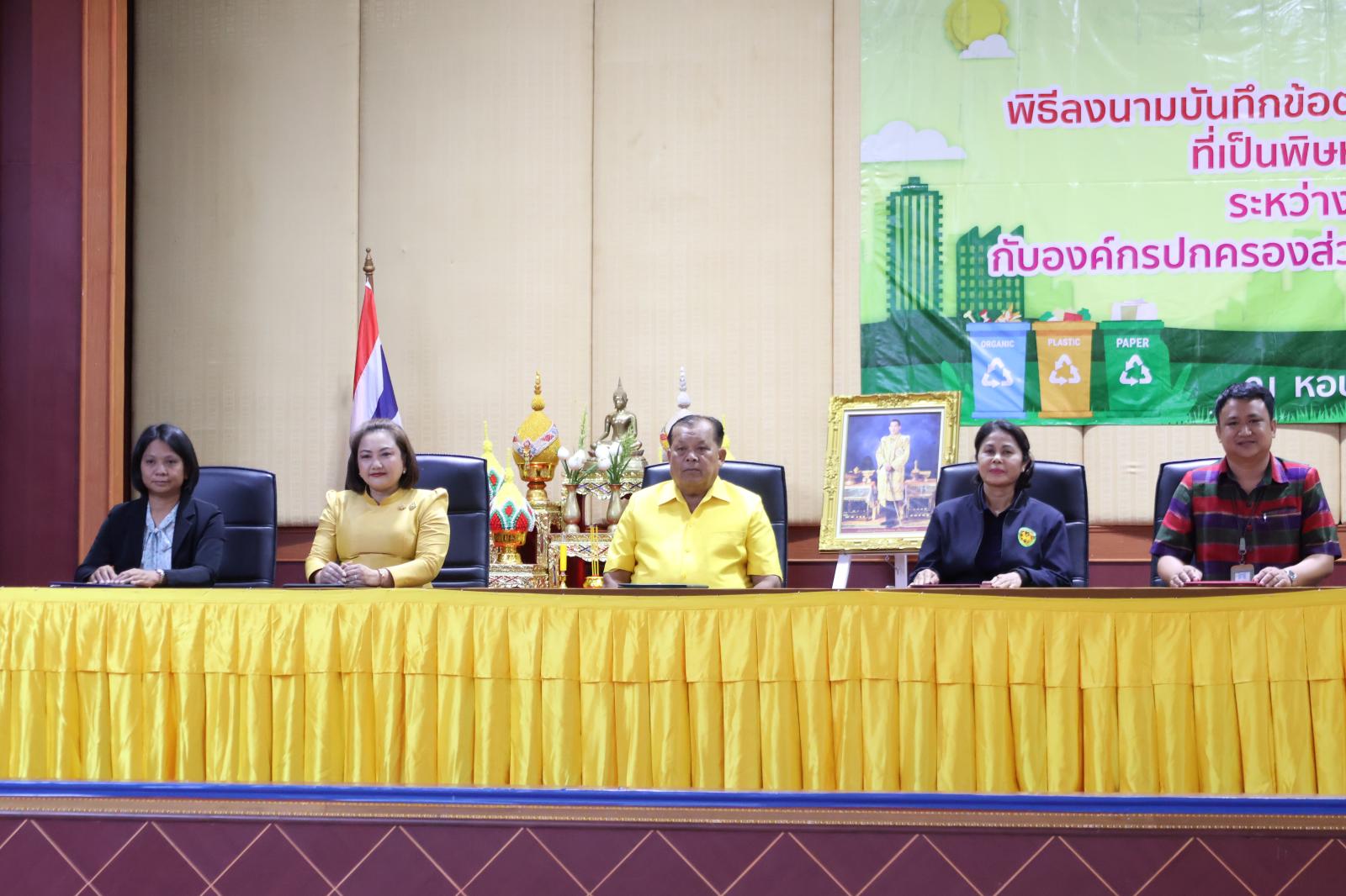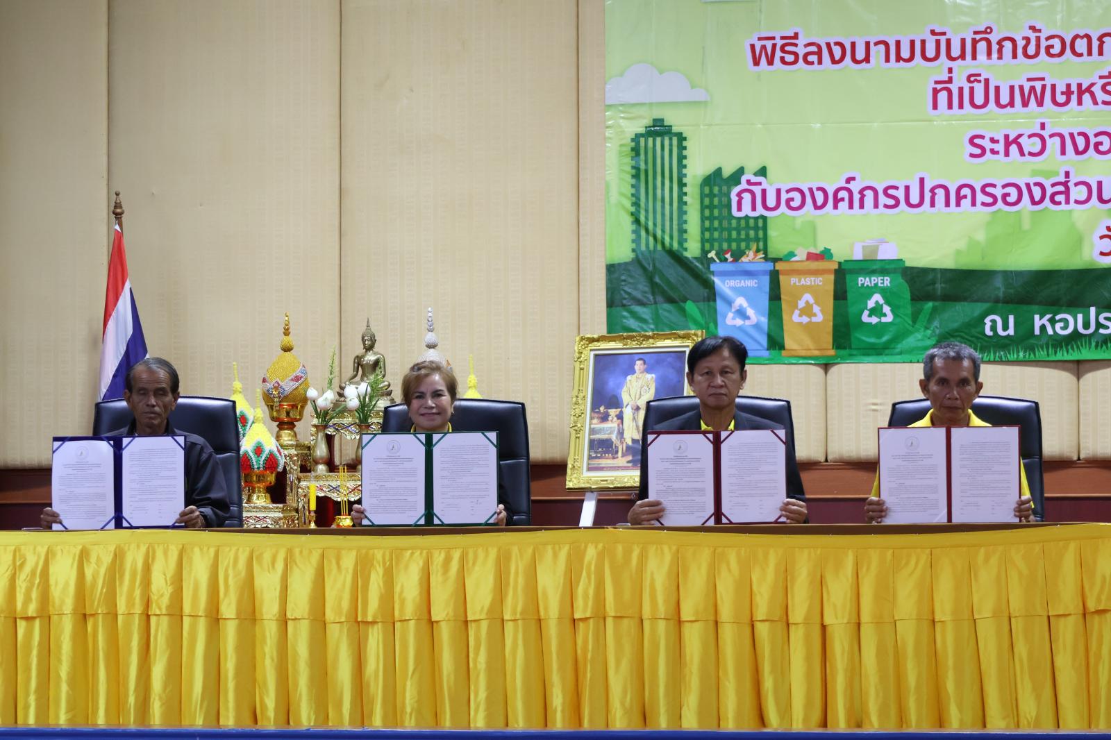 พิธีลงนามบันทึกข้อตกลงว่าด้วยความร่วมมือในการบริหารจัดการขยะมูลฝอยที่เป็นพิษหรืออันตรายจากชุมชนจังหวัดขอนแก่น ระหว่างองค์การบริหารส่วนจังหวัดขอนแก่น กับองค์กรปกครองส่วนท้องถิ่นและส่วนราชการอื่นจำนวน 225 แห่ง