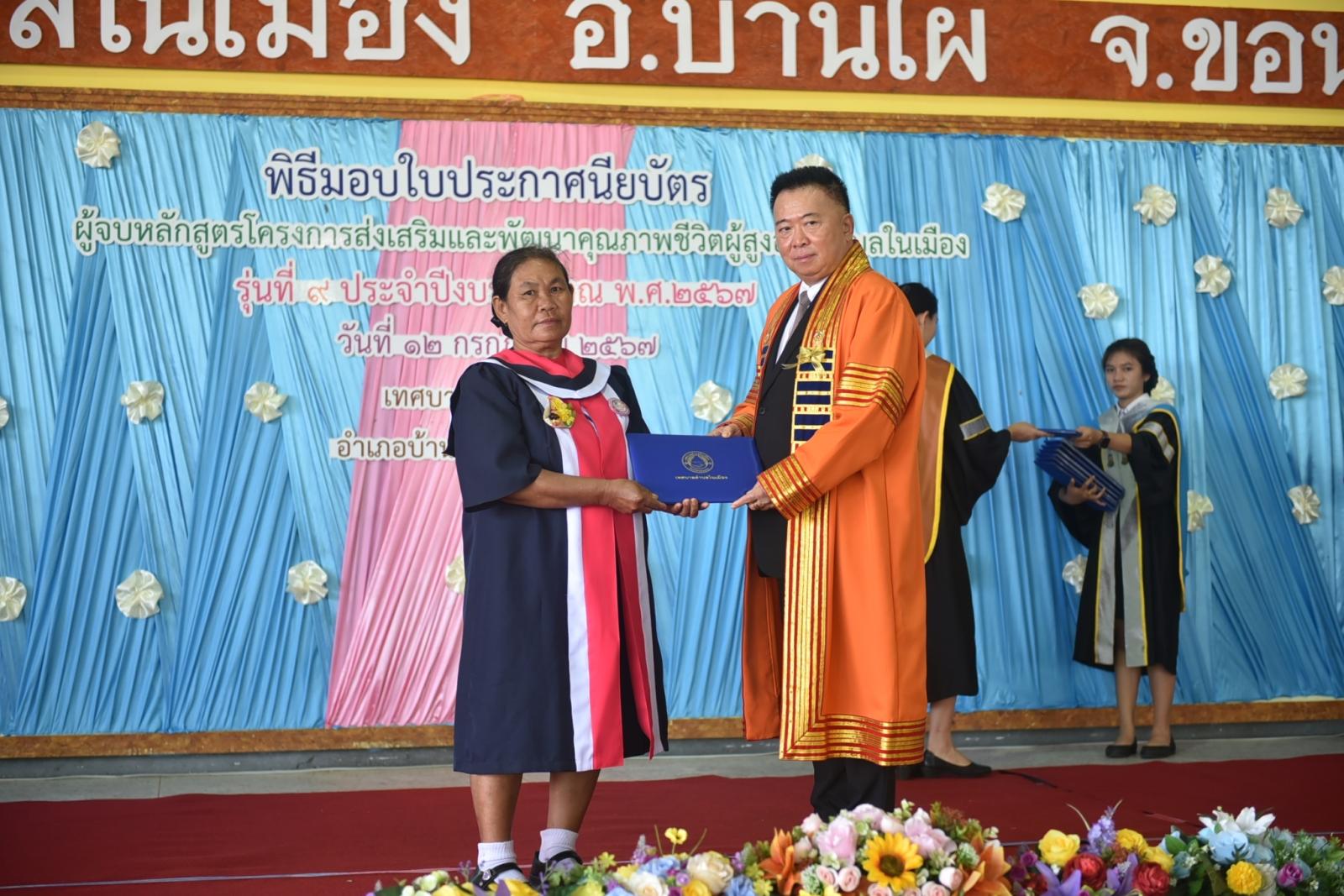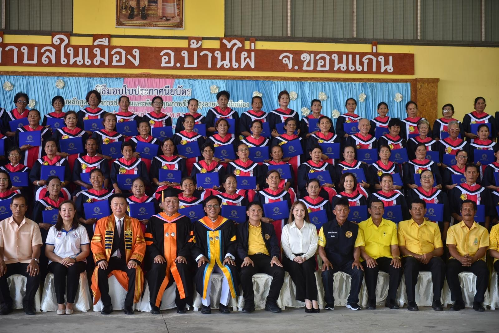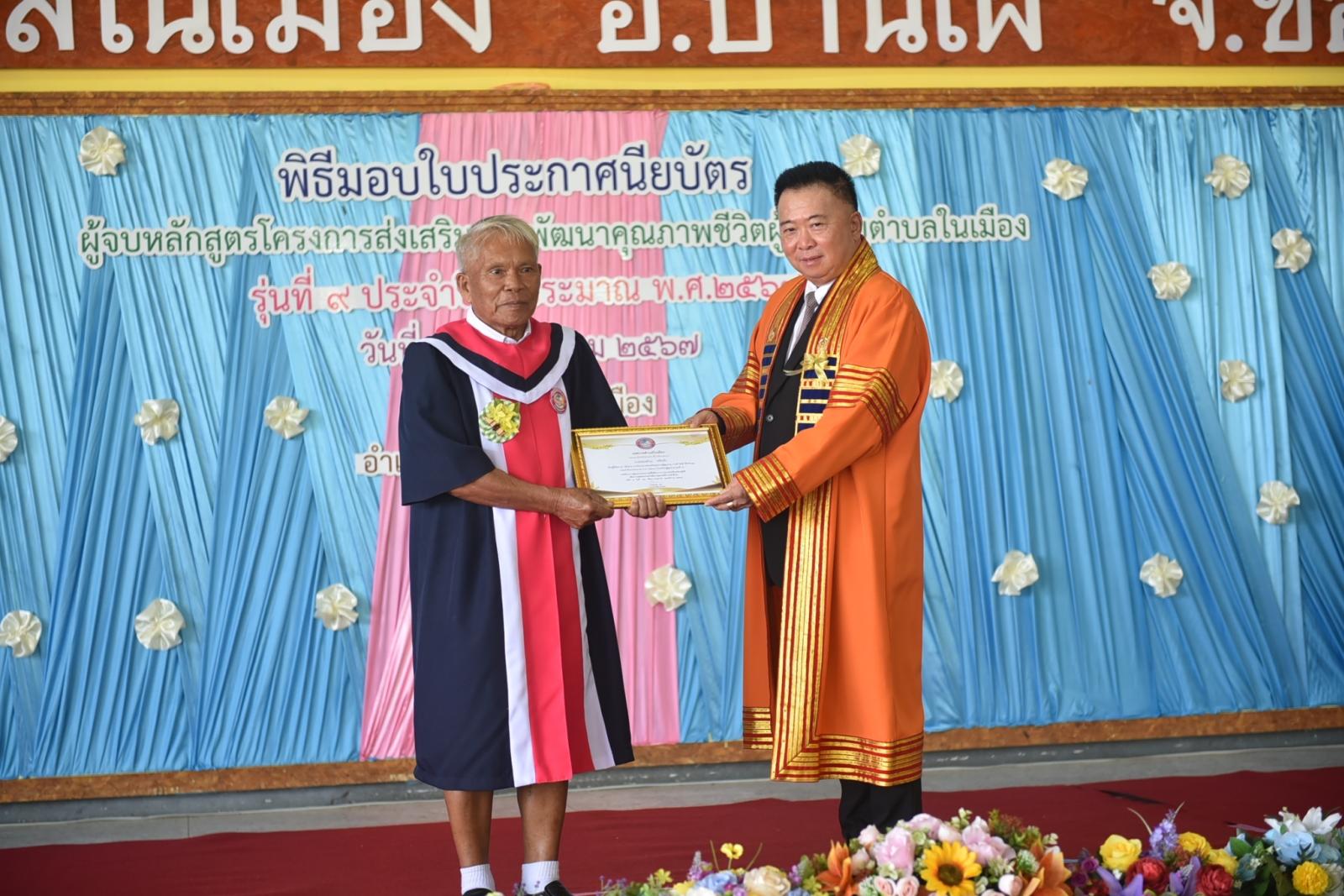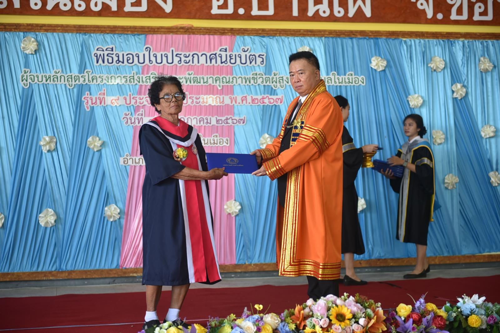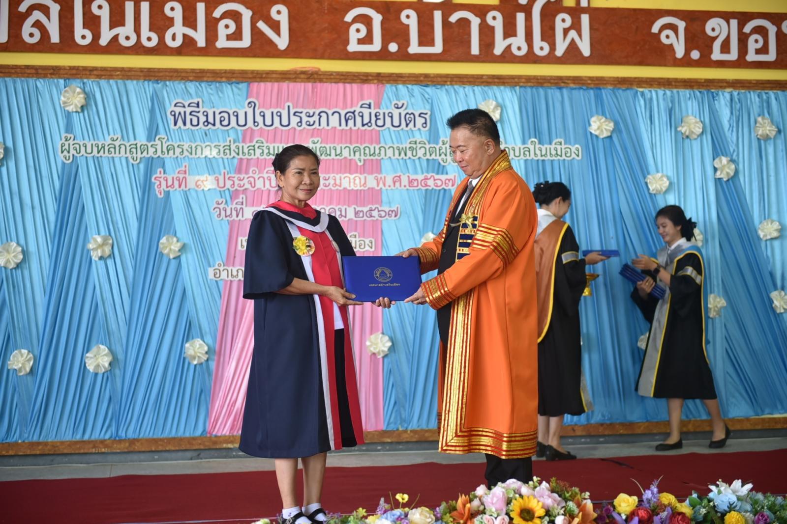 พิธีมอบประกาศนียบัตรให้แก่ผู้สูงอายุที่จบหลักสูตร ตามโครงการส่งเสริมและพัฒนาคุณภาพชีวิตผู้สูงอายุตำบลในเมือง รุ่นที่9 ประจำปีงบประมาณ 2567