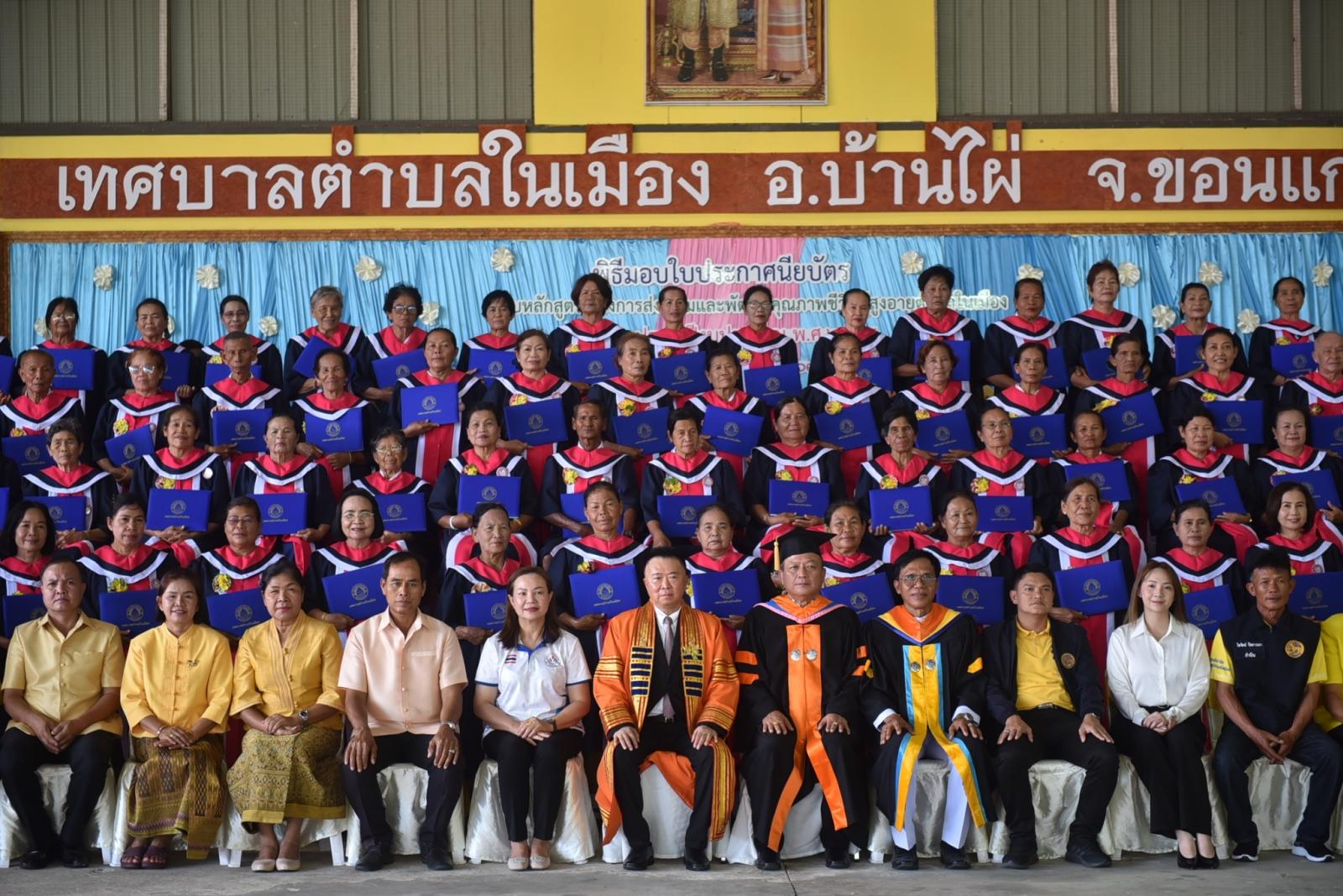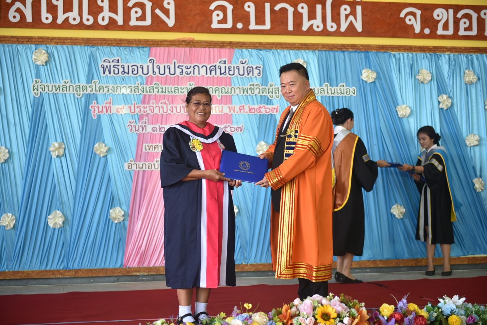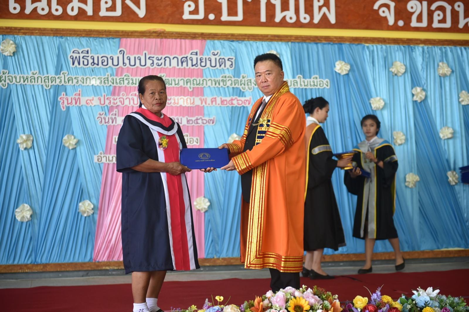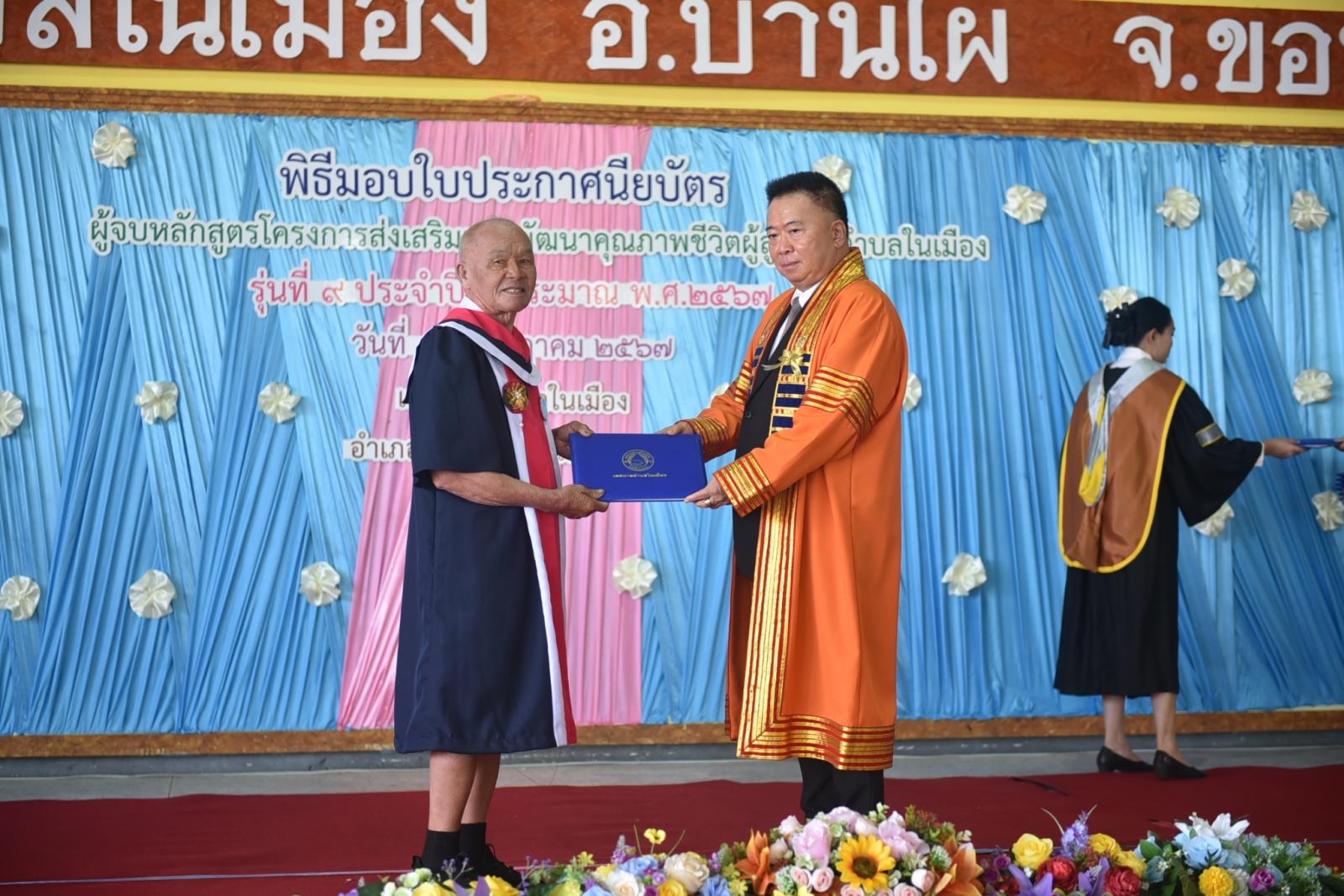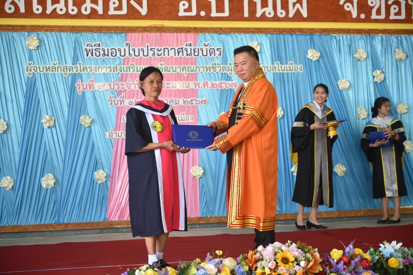 พิธีมอบประกาศนียบัตรให้แก่ผู้สูงอายุที่จบหลักสูตร ตามโครงการส่งเสริมและพัฒนาคุณภาพชีวิตผู้สูงอายุตำบลในเมือง รุ่นที่9 ประจำปีงบประมาณ 2567