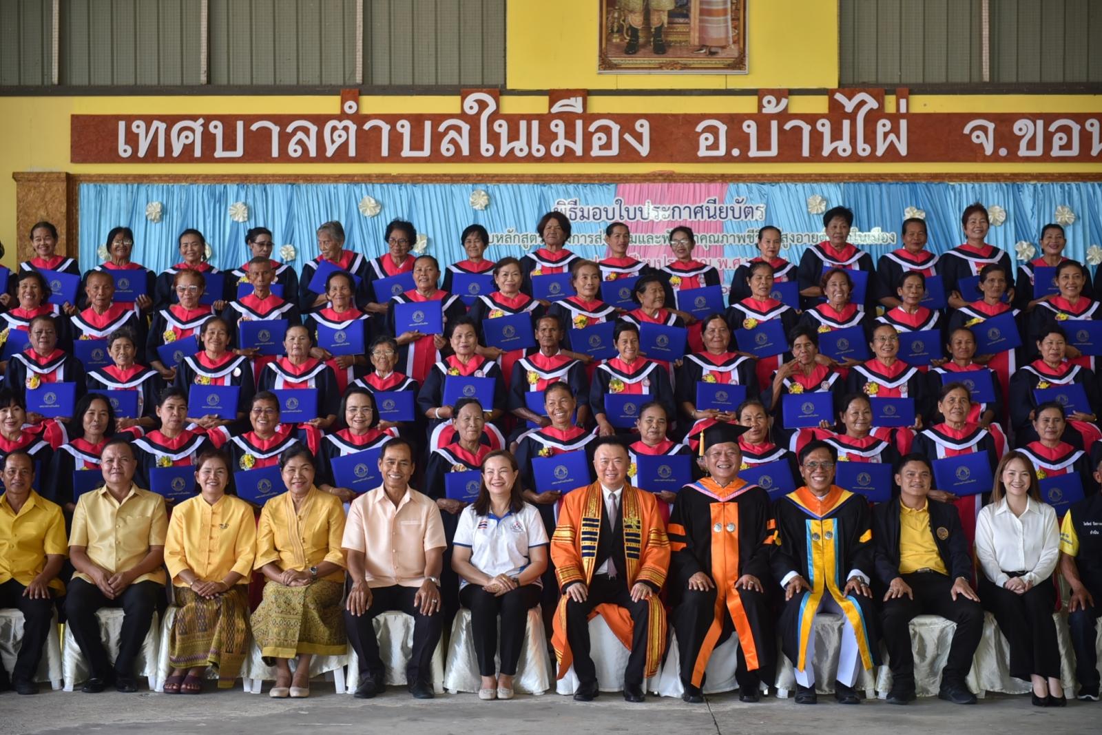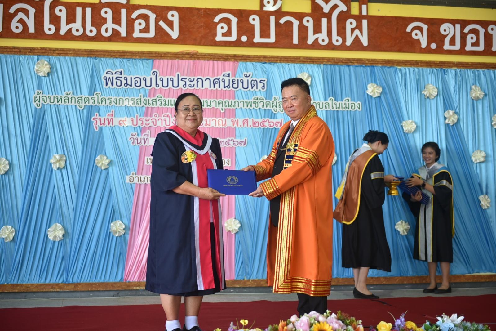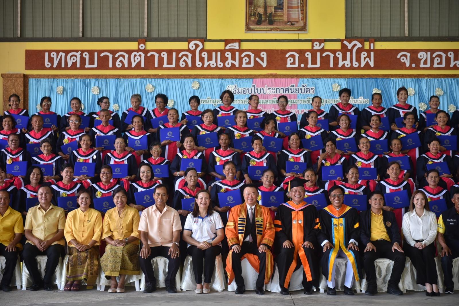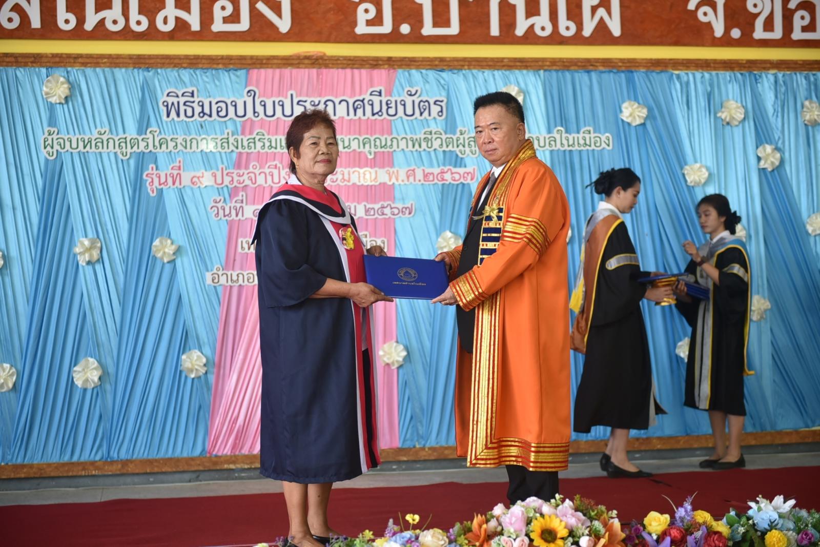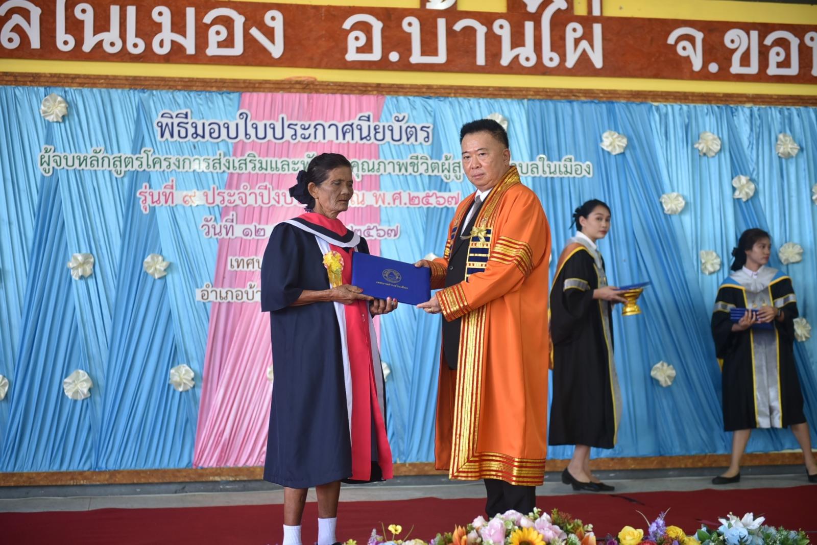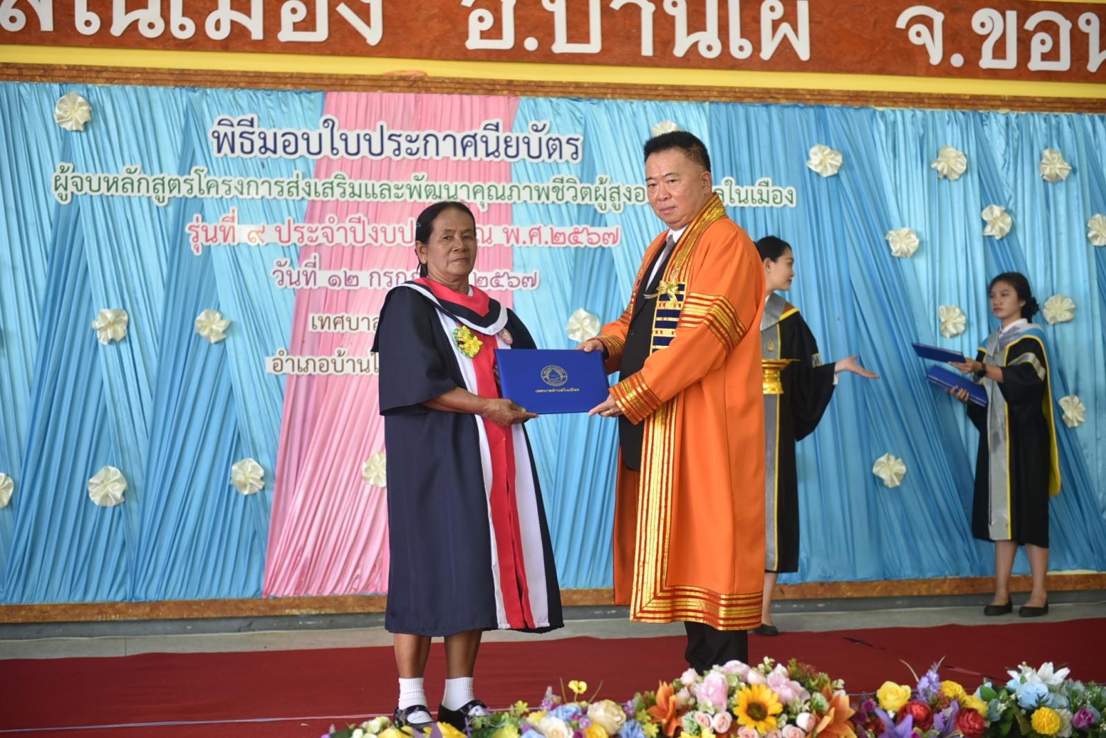 พิธีมอบประกาศนียบัตรให้แก่ผู้สูงอายุที่จบหลักสูตร ตามโครงการส่งเสริมและพัฒนาคุณภาพชีวิตผู้สูงอายุตำบลในเมือง รุ่นที่9 ประจำปีงบประมาณ 2567