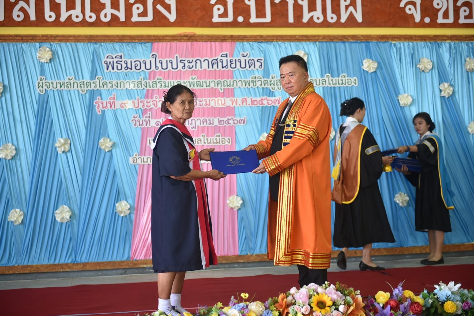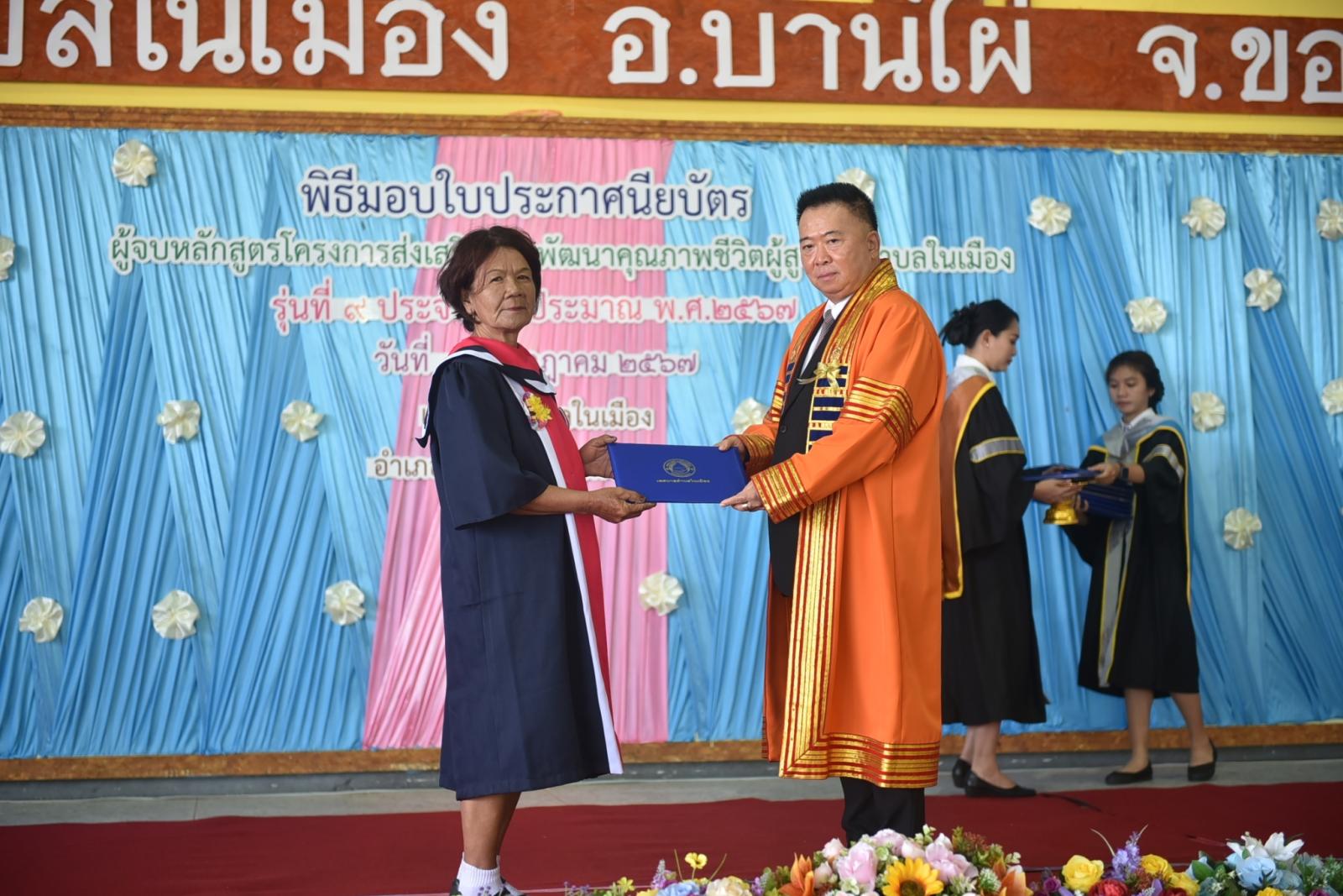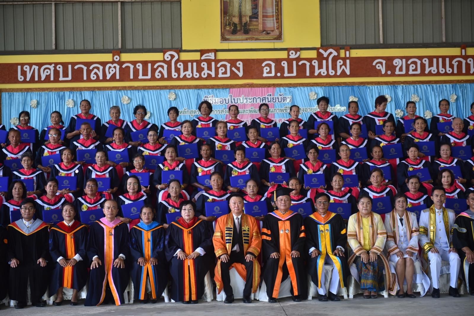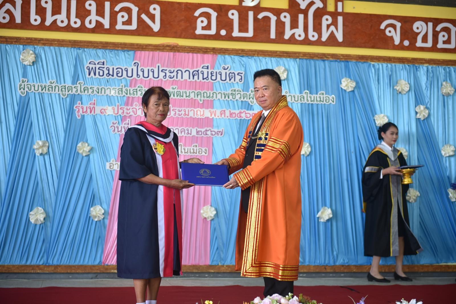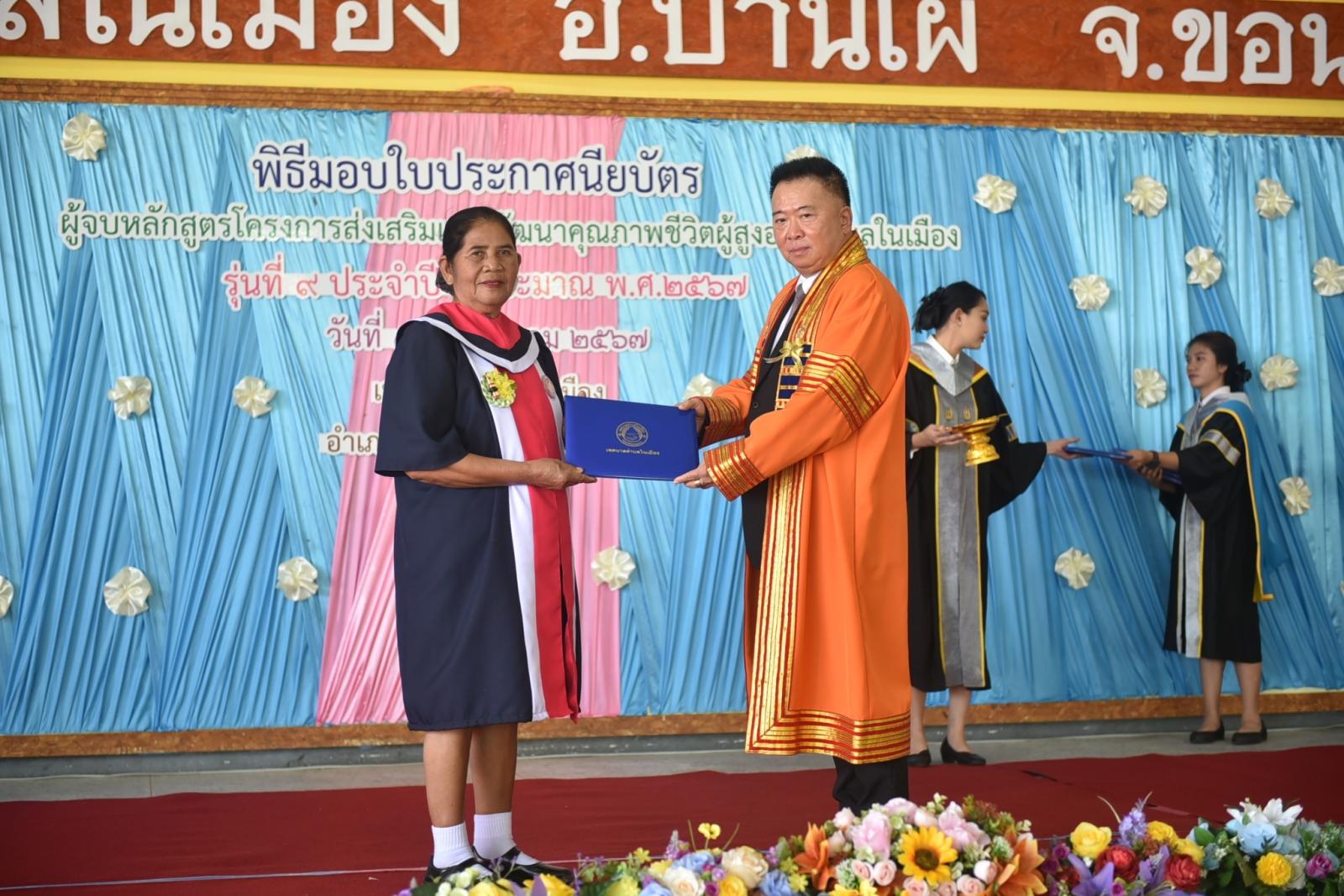 พิธีมอบประกาศนียบัตรให้แก่ผู้สูงอายุที่จบหลักสูตร ตามโครงการส่งเสริมและพัฒนาคุณภาพชีวิตผู้สูงอายุตำบลในเมือง รุ่นที่9 ประจำปีงบประมาณ 2567