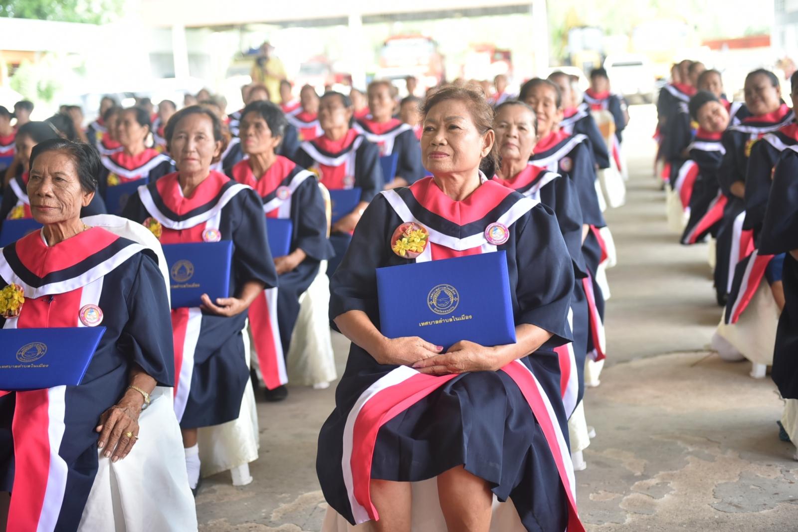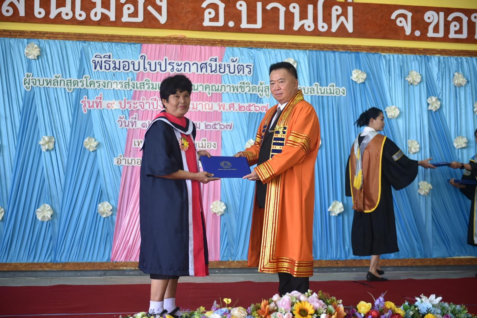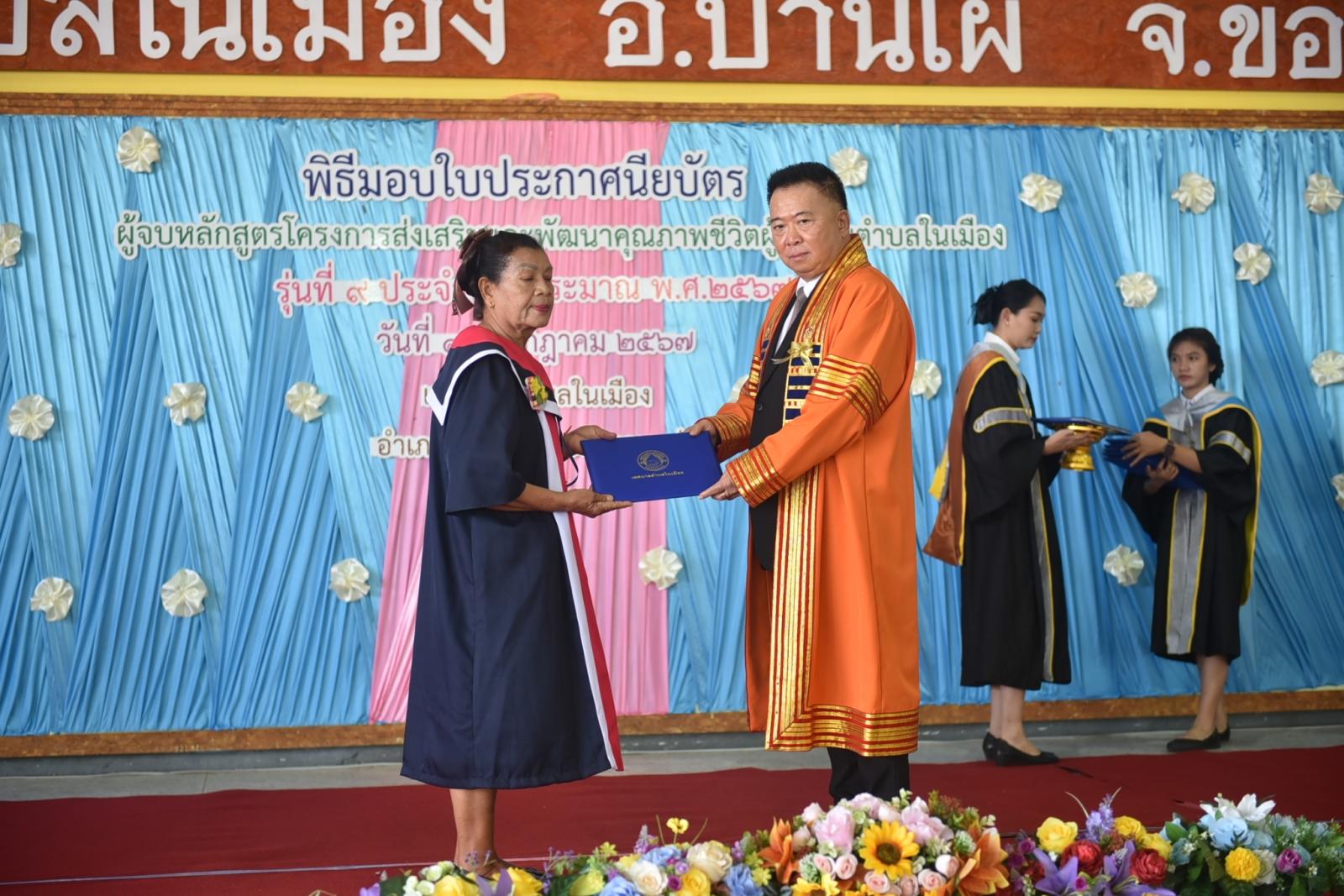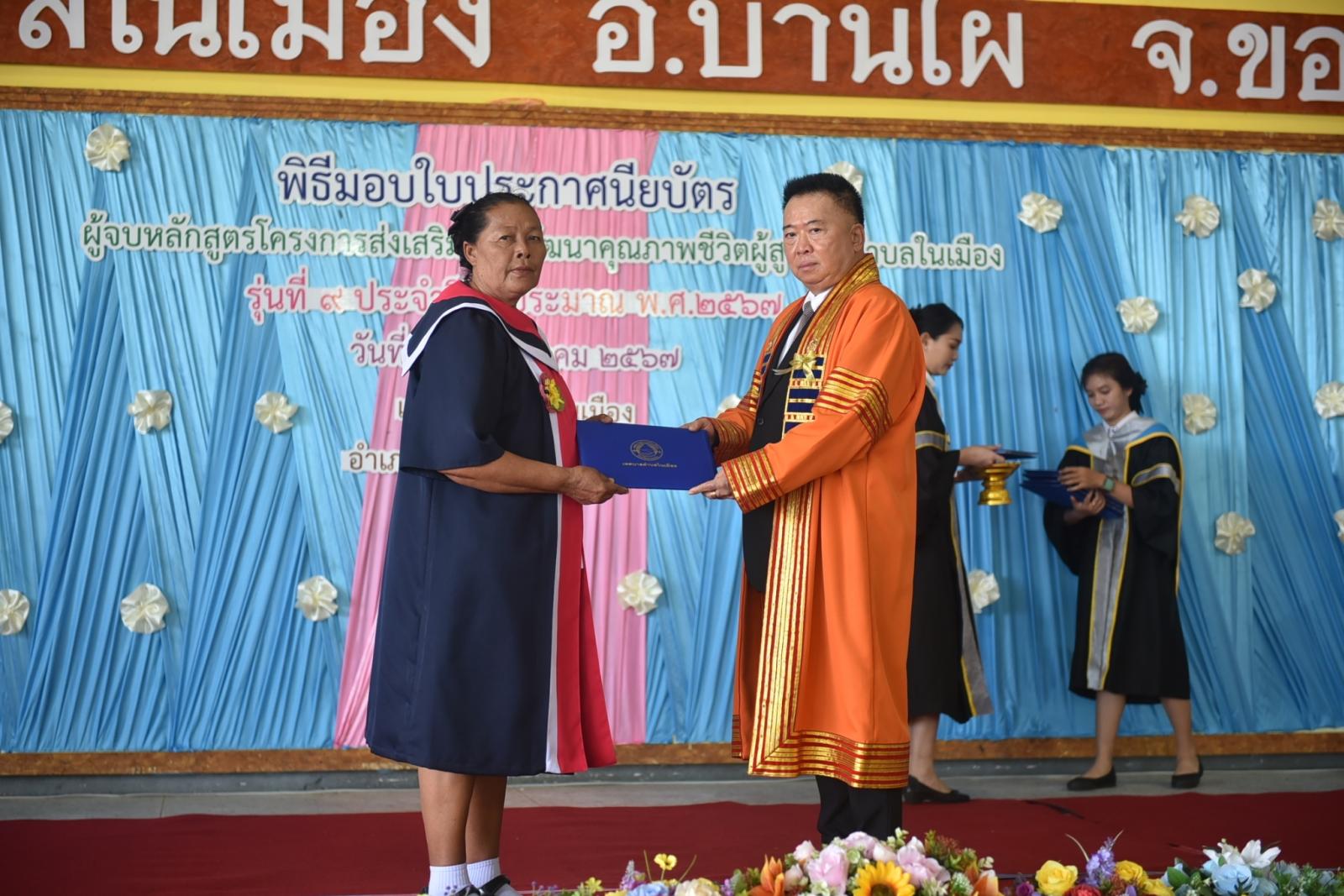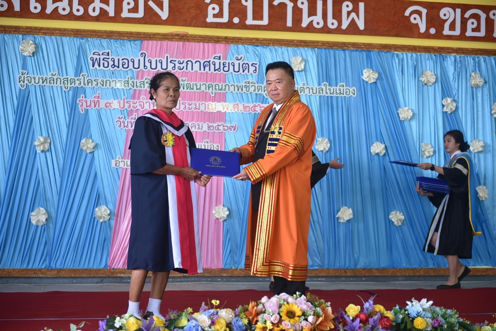 พิธีมอบประกาศนียบัตรให้แก่ผู้สูงอายุที่จบหลักสูตร ตามโครงการส่งเสริมและพัฒนาคุณภาพชีวิตผู้สูงอายุตำบลในเมือง รุ่นที่9 ประจำปีงบประมาณ 2567