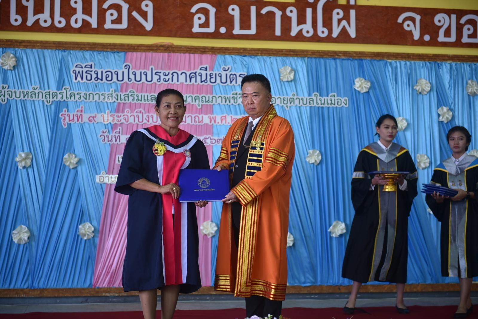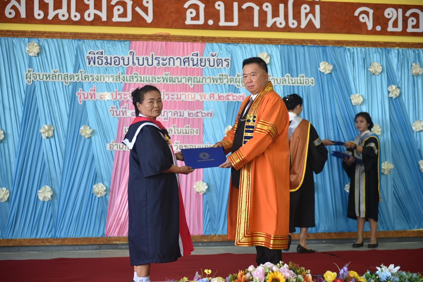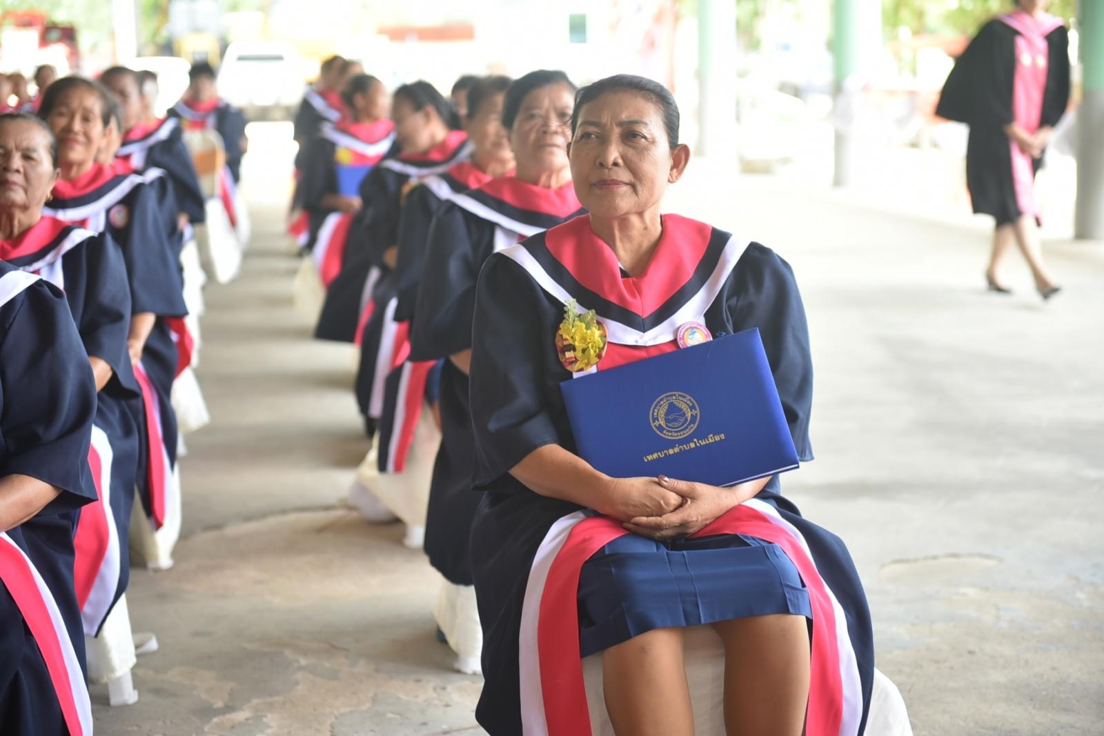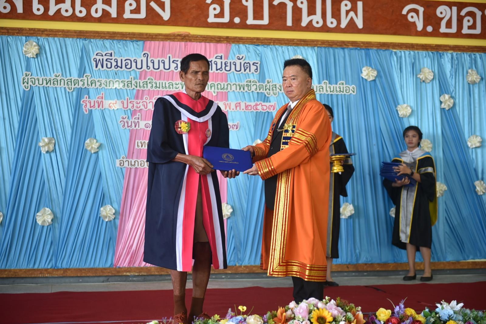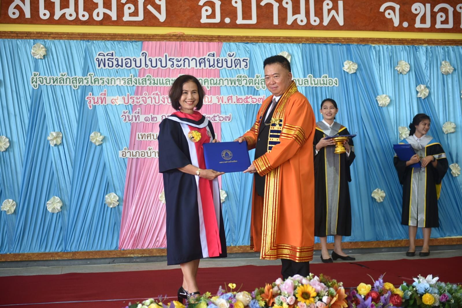 พิธีมอบประกาศนียบัตรให้แก่ผู้สูงอายุที่จบหลักสูตร ตามโครงการส่งเสริมและพัฒนาคุณภาพชีวิตผู้สูงอายุตำบลในเมือง รุ่นที่9 ประจำปีงบประมาณ 2567