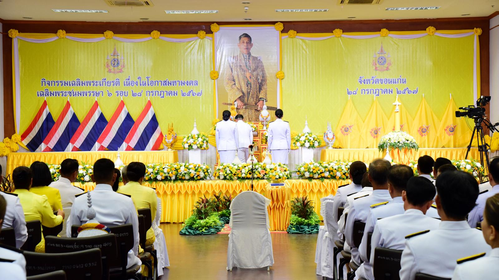 เมื่อวันที่ 28 กรกฎาคม 2567 เวลา 17.30 น. องค์การบริหารส่วนจังหวัดขอนแก่น ดร.พงษ์ศักดิ์ ตั้งวานิชกพงษ์ นายกองค์การบริหารส่วนจังหวัดขอนแก่น มอบหมายให้ นายสิทธิกุล ภูคำวงศ์ รองนายกองค์การบริหารส่วนจังหวัดขอนแก่น พร้อมด้วยคณะผู้บริหาร ข้าราชการ อบจ.ขอนแก่น ร่วมงานเฉลิมพระเกียรติพระบาทสมเด็จพระเจ้าอยู่หัว เนื่องในโอกาสมหามงคลเฉลิมพระชนมพรรษา 6 รอบ 28 กรกฎาคม 2567 โดยมี นายพันธ์เทพ เสาโกศล รองผู้ว่าราชการจังหวัดขอนแก่น เป็นประธานในพิธีถวายเครื่องราชสักการะเเละวางพานพุ่ม เเละพิธีจุดเทียนถวายพระพรชัย พร้อมด้วยหัวหน้าส่วนราชการ ข้าราชการ อบจ.ขอนเเก่น เข้าร่วมด้วย ณ ห้องประชุมแก่นเมือง ชั้น 1 ศาลากลางจังหวัดขอนแก่น (หลังใหม่)
