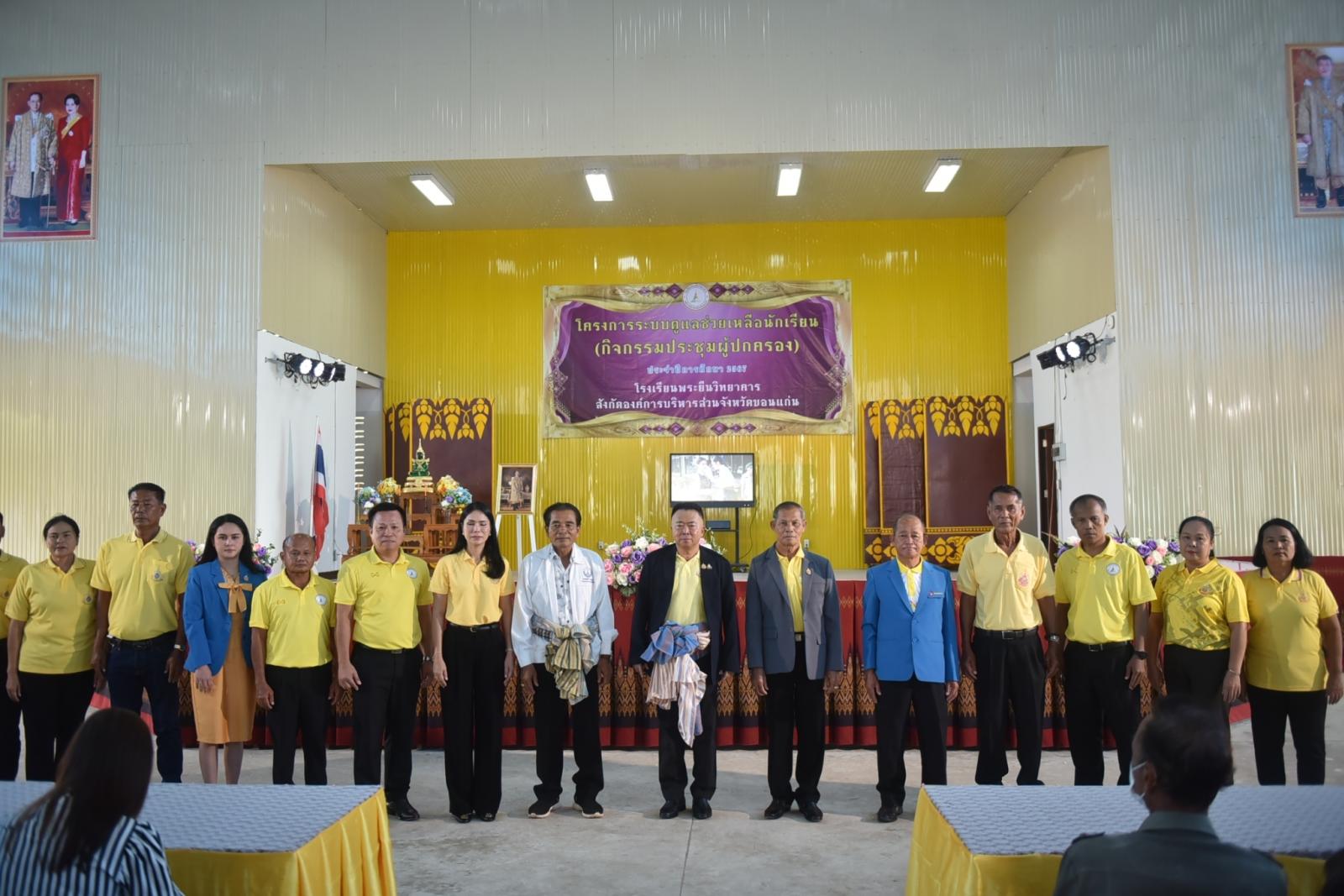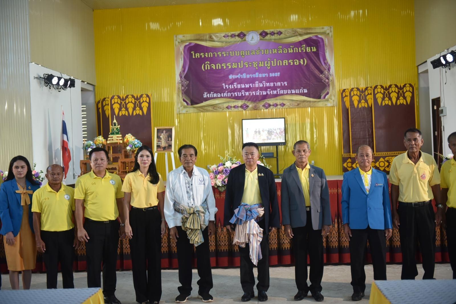 วันที่ 26 กรกฎาคม 2567 เวลา 09.00 น. ดร.พงษ์ศักดิ์ ตั้งวานิชกพงษ์ นายกองค์การบริหารส่วนจังหวัดขอนแก่น เป็นประธานในพิธีเปิดโครงการระบบดูแลช่วยเหลือนักเรียน(กิจกรรมประชุมผู้ปกครอง) ประจำปีการศึกษา 2567 ในโอกาสนี้มี นายสมาส นามพิกุล ส.อบจ.ขอนแก่น เขต อ.พระยืน และ นายมีสวัสดิ์ ชมชัยภูมิ ส.อบจ.ขอนแก่น เขต อ.โคกโพธิ์ไชย ร่วมเป็นเกียรติ ดร.ภักดี ศิริพรรณ ผู้อำนวยการโรงเรียนพระยืนวิทยาคาร พร้อมด้วย คณะกรรมการสถานศึกษาขั้นพื้นฐาน คณะครู ผู้ปกครองนักเรียน ร่วมให้การต้อนรับอย่างอบอุ่น ณ หอประชุมอเนกประสงค์โรงเรียนพระยืนวิทยาคาร อ.พระยืน จ.ขอนแก่น
