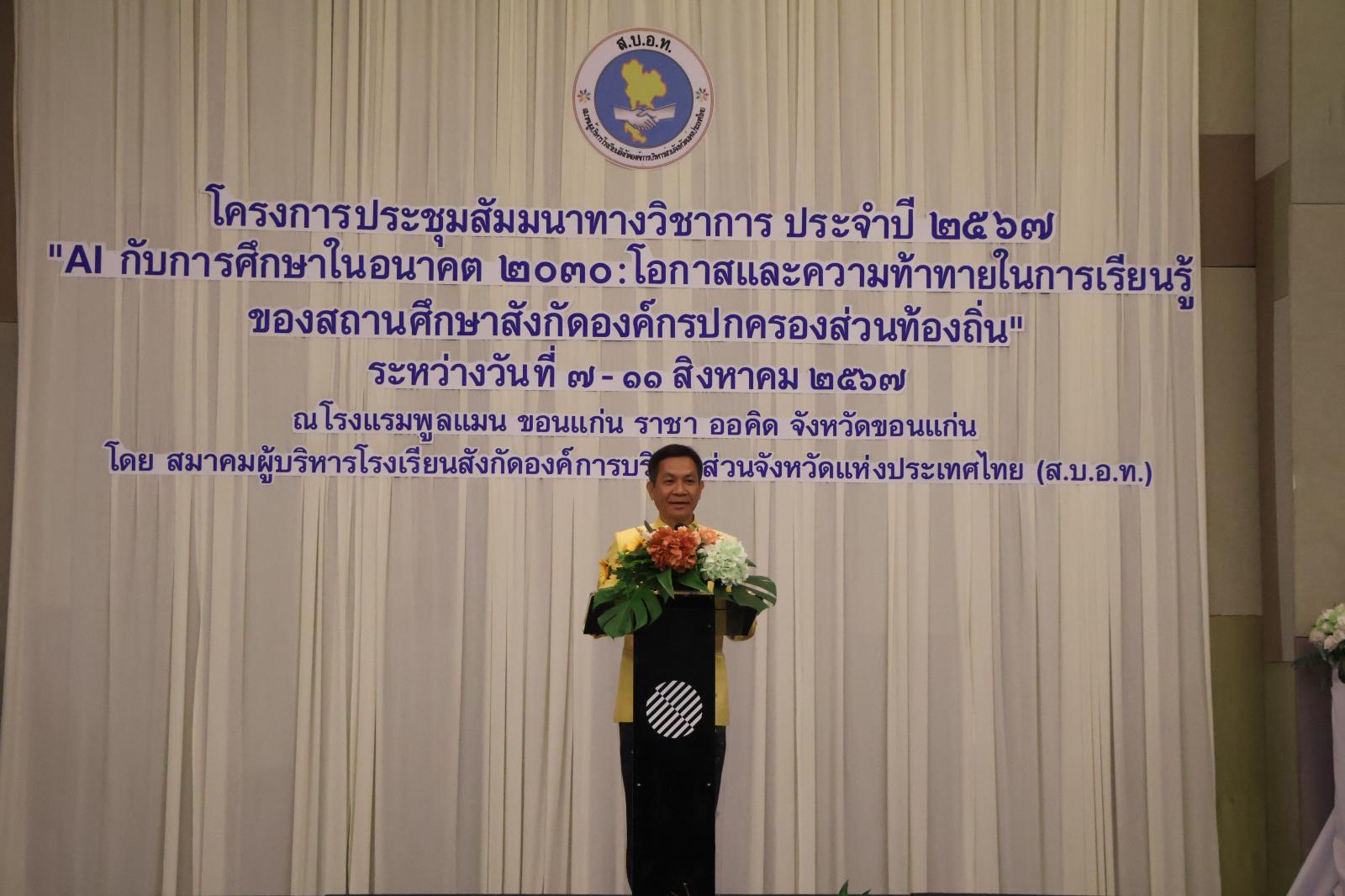 พิธีเปิดและพิธีมอบโล่เชิดชูเกียรติ โครงการประชุมสัมมนาทางวิชาการ ประจำปี 2567 “AI กับการศึกษาในอนาคต 2030 : โอกาสและความท้าทายในการเรียนรู้ของสถานศึกษาสังกัดองค์กรปกครองส่วนท้องถิ่น“