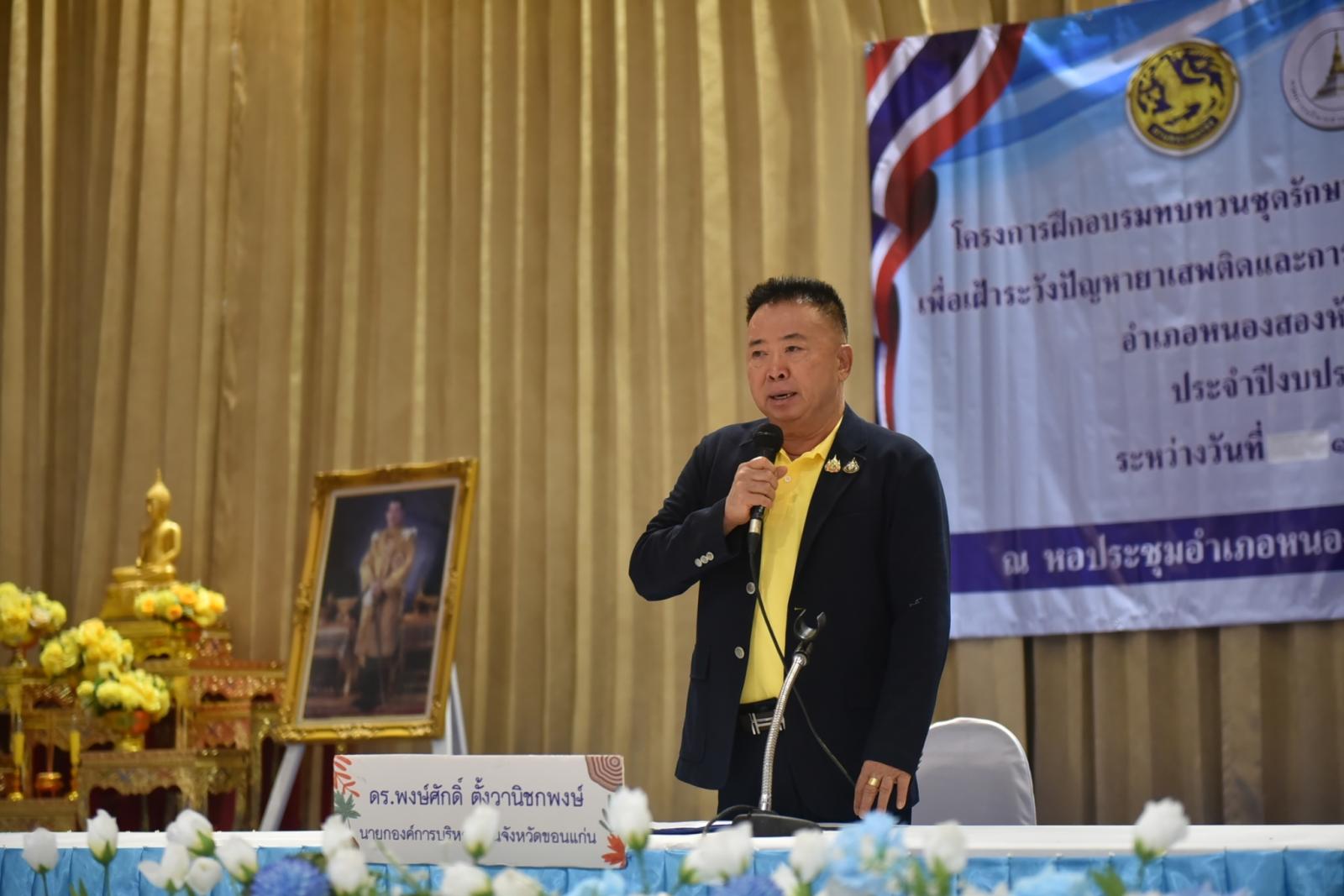 วันที่ 15 สิงหาคม 2567 เวลา 09.00 น. ดร.พงษ์ศักดิ์ ตั้งวานิชกพงษ์ นายกองค์การบริหารส่วนจังหวัดขอนแก่น เป็นประธานในพิธีเปิดโครงการฝึกอบรมทบทวนชุดรักษาความปลอดภัยหมู่บ้าน(ชรบ.) เพื่อเฝ้าระวังปัญหายาเสพติดและการรักษาความสงบเรียบร้อยในหมู่บ้าน อ.หนองสองห้อง จ.ขอนแก่น ประจำปีงบประมาณ พ.ศ.2567 โดยมี ว่าที่ร้อยตรีสุขุม ดลโสภณ นายอำเภอหนองสองห้อง กล่าวรายงาน ในโอกาสนี้มี นายศิริชัย ฉัตรชัยพลรัตน์ ส.อบจ.ขอนแก่น อ.หนองสองห้อง เขต 1 พร้อมด้วย นายณัฐพล กลุ่มเหรียญทอง ส.อบจ.ขอนแก่น อ.หนองสองห้อง เขต 2 ดร.รัตนาภรณ์ สมบูรณ์ ผู้อำนวยการโรงเรียนอมตวิทยา และคณะผู้นำท้องถิ่น ผู้นำท้องที่ ร่วมเป็นเกียรติในพิธี ณ หอประชุมอำเภอหนองสองห้อง จ.ขอนแก่น