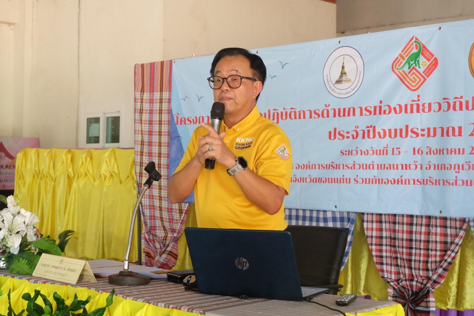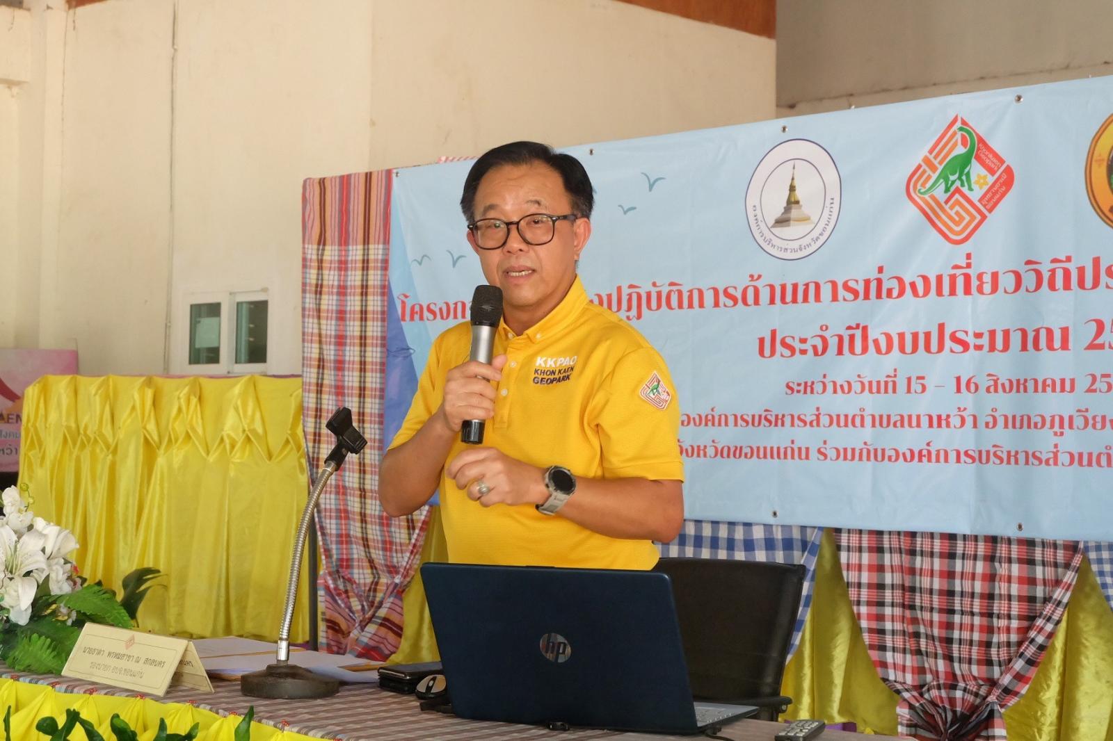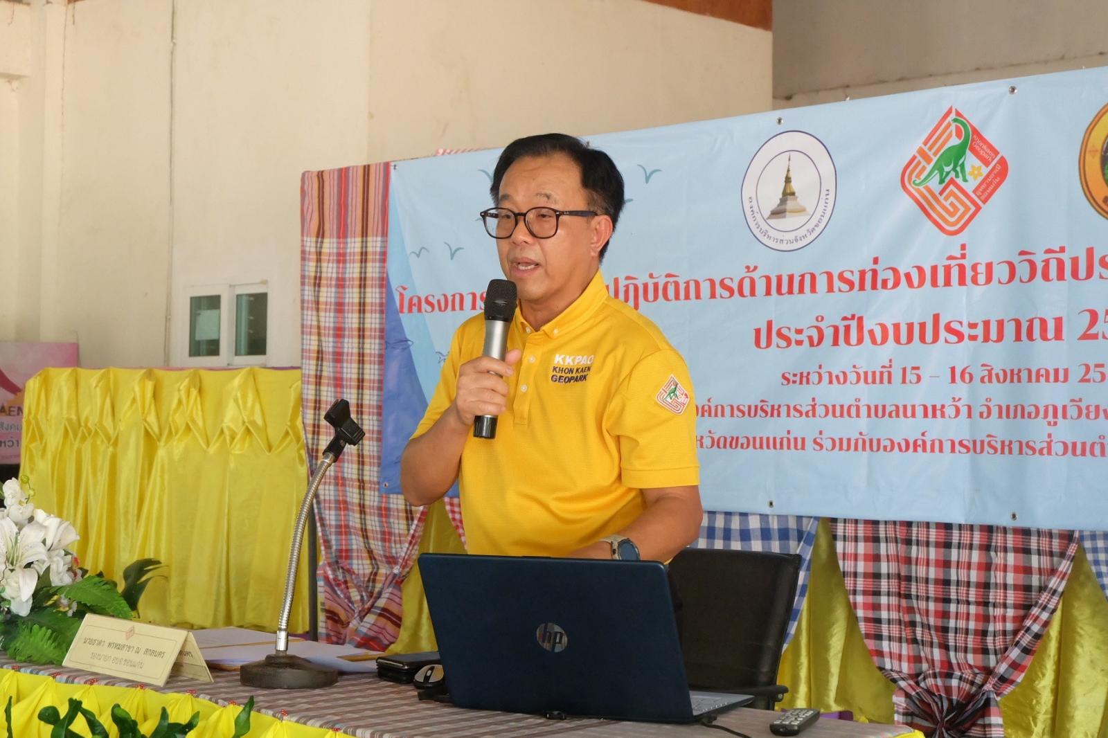 วันที่ 15 สิงหาคม 2567 เวลา 09.00 น. องค์การบริหารส่วนจังหวัดขอนแก่น นำโดย ดร. พงษ์ศักดิ์ ตั้งวานิชกพงษ์ นายกองค์การบริหารส่วนจังหวัดขอนแก่นมอบหมายให้ นาย ธาดา พรหมสาขา ณ สกลนคร รองนายกองค์การบริหารส่วนจังหวัดขอนแก่นเป็นประธานในพิธีเปิดการอบรม "โครงการอบรมเชิงปฏิบัติการด้านการท่องเที่ยววิถีประมงพื้นบ้านอุทยานธรณีขอนแก่น" โดยมีช่วงเวลาโครงการระหว่างวันที่ 15 และ 16 สิงหาคม 2567 โดยนายธาดา พรหมสาขา ณ สกลนคร ได้ร่วมบรรยายพิเศษในหัวข้อ"ศักยภาพและแนวทางการพัฒนาการท่องเที่ยววิถีประมงพื้นบ้านอุทยานธรณีขอนแก่น" โดยมี นางสาวผกาสวรรค์ ปรัชญคุปต์ ผู้จัดการอุทยานธรณีขอนแก่น และวิทยากรจากการไฟฟ้าฝ่ายผลิตแห่งประเทศไทย ร่วมบรรยายหัวข้ออื่นๆในช่วงเช้าที่ผ่านมา โดยโครงการอบรมถูกจัดขึ้นที่ ห้องประชุมองค์การบริหารส่วนตำบลนาหว้า อำเภอภูเวียงจังหวัดขอนแก่น
