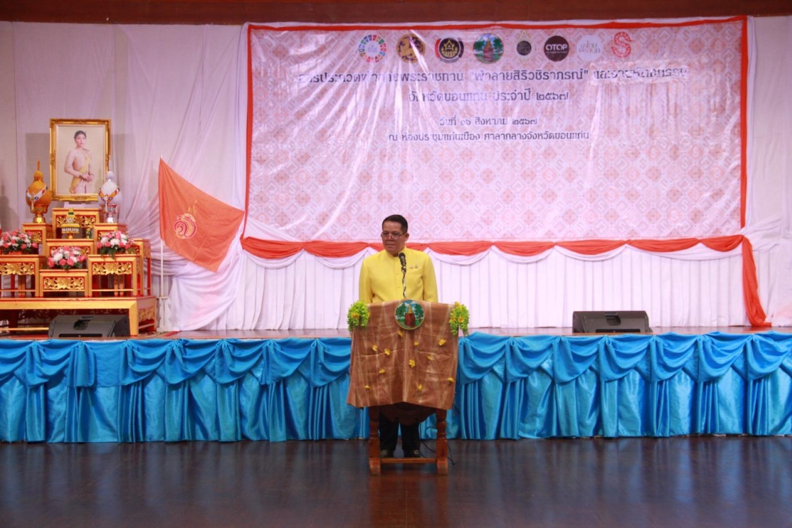 ในวันที่ 16 สิงหาคม 2567 เวลา 09.00 น. องค์การบริหารส่วนจังหวัดขอนแก่น นำโดย ดร.พงษ์ศักดิ์ ตั้งวานิชกพงษ์ นายกองค์การบริหารส่วนจังหวัดขอนแก่น มอบหมายให้ นายสิทธิกุล ภูคำวงศ์ รองนายกองค์การบริหารส่วนจังหวัดขอนแก่น ร่วมเป็นเกียรติในพิธีเปิดการประกวดผ้าลายพระราชทาน "ผ้าลายสิริวชิราภรณ์" และงานหัตถกรรมระดับจังหวัด ประจำปี 2567 โดยมีนายจิรศักดิ์ สีหามาตย์ รองผู้ว่าราชการจังหวัดขอนแก่น เป็นประธาน โอกาสนี้มี หัวหน้าส่วน หน่วยงานภาครัฐ ร่วมเป็นเกียรติ ณ ห้องประชุมแก่นเมือง ศาลากลางจังหวัดขอนแก่น อำเภอเมือง จังหวัดขอนแก่น