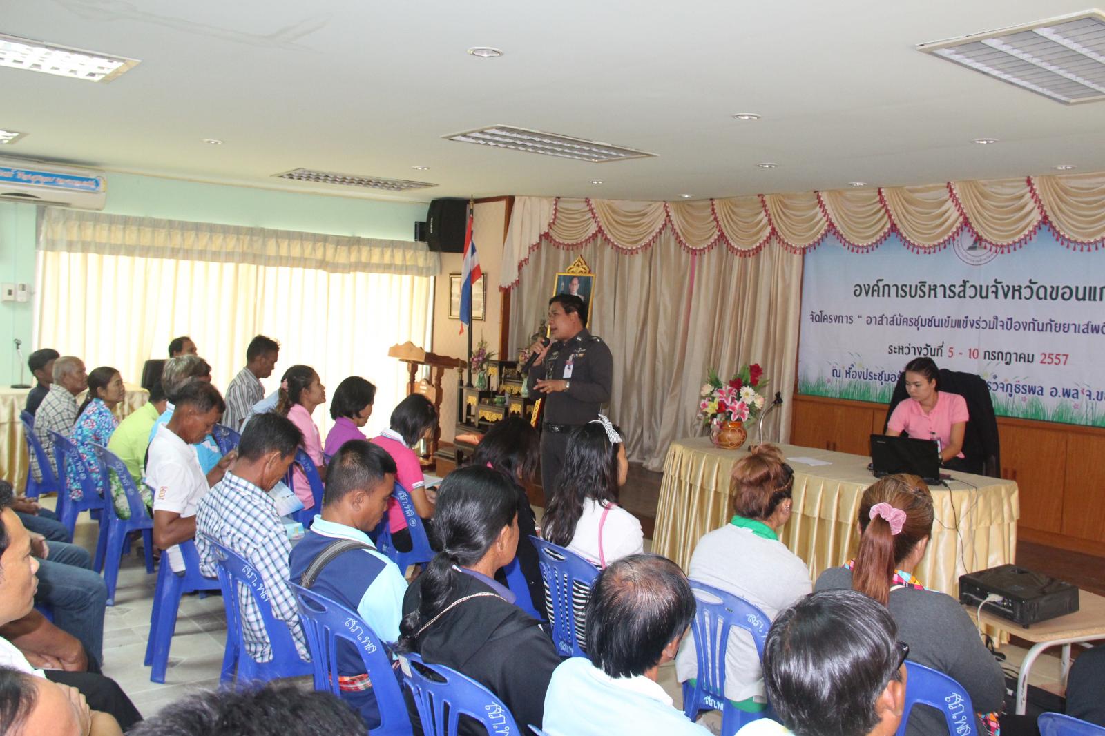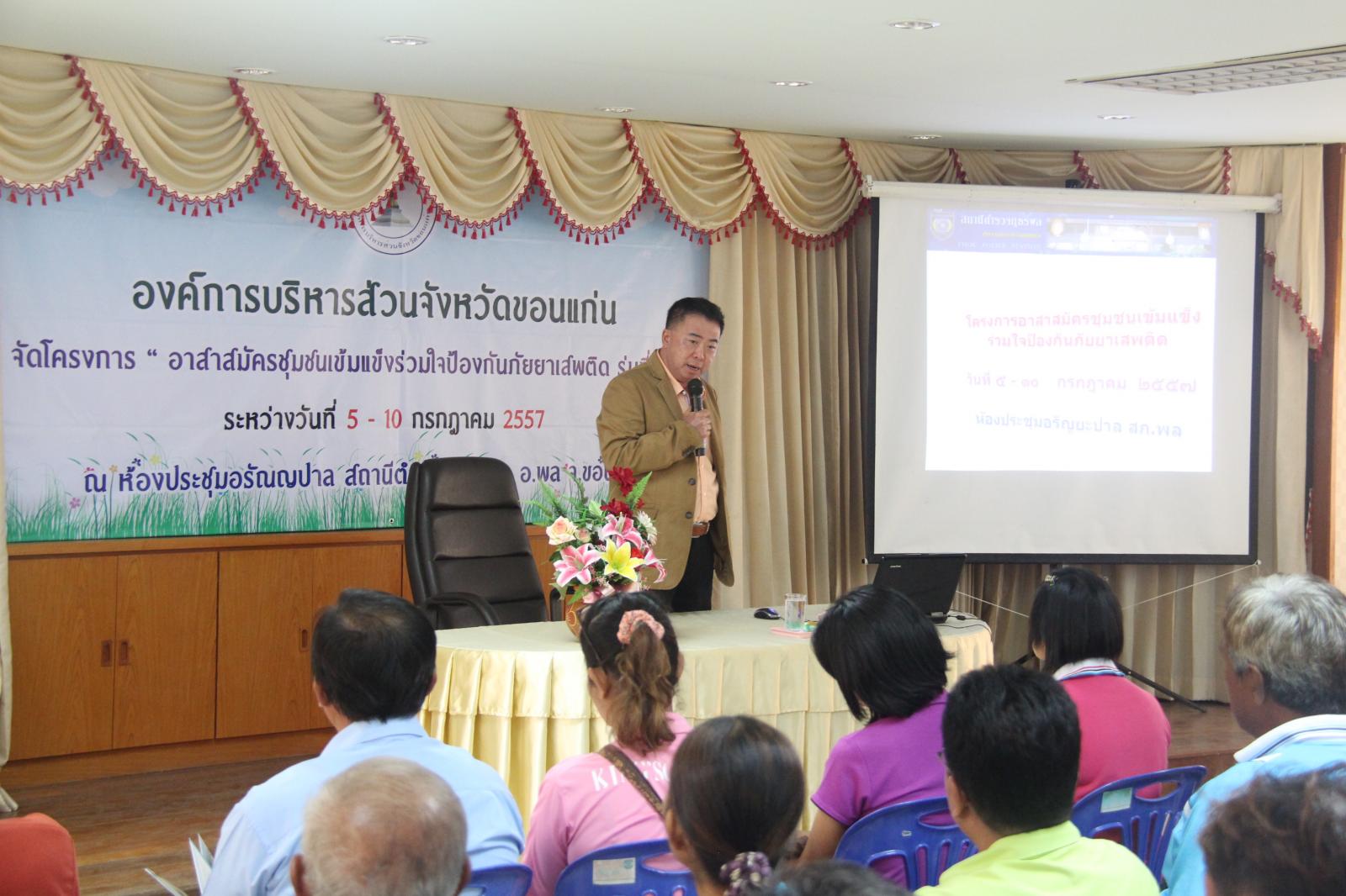 เมื่อวันที่ 8 กรกฎาคม 2557 นายก อบจ.ขอนแก่น ดร.พงษ์ศักดิ์ ตั้งวานิชกพงษ์ เป็นประธานเปิด “โครงการอาสาสมัครชุมชนเข้มแข็งร่วมใจป้องกันภัยยาเสพติด รุ่นที่ 4” โดยมี ส.อบจ. อ.พล เขต 2 นายคงฤทธิ์ อัศวพัฒนากูล เป็นผู้กล่าวรายงาน โครงการนี้จัดขึ้นเพื่อ ฝึกอบรมให้ความรู้ในการเป็นเครือข่ายพลังแผ่นดินให้แก่แกนนำ ร่วมมือกันในการป้องกัน แก้ไขปัญหายาเสพติด และปัญหาอาชญากรรมให้กับประชาชนในหมู่บ้านและชุมชน ในระหว่างวันที่ 5 – 10 กรกฎาคม 2557 ณ ห้องประชุมอรัณญปาล สถานีตำรวจภูธรพล อำเภอพล จังหวัดขอนแก่น