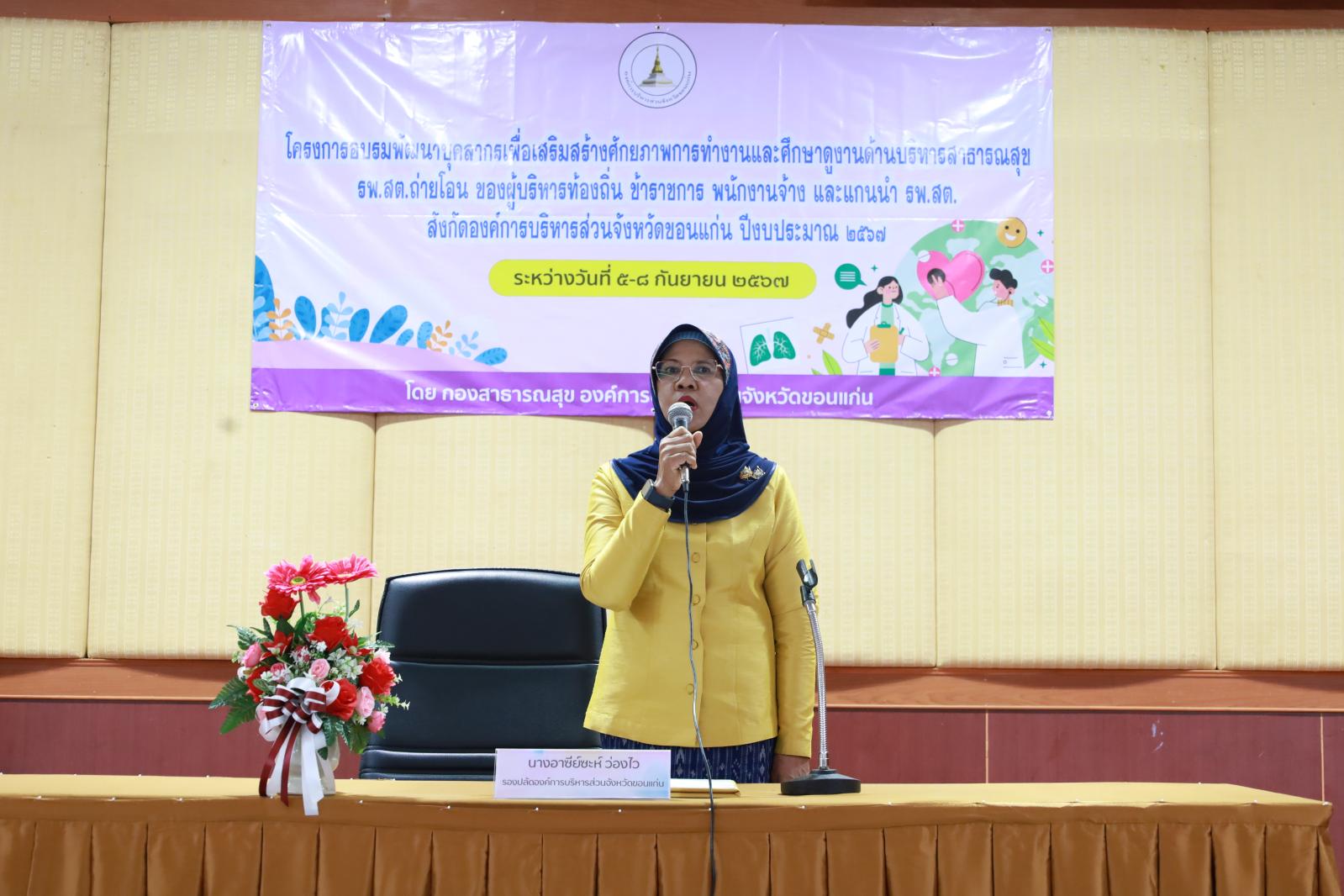 เมื่อวันที่ 5 กันยายน 2567 เวลา 09.30 น. ดร.พงษ์ศักดิ์ ตั้งวานิชกพงษ์ นายก อบจ.ขอนแก่น มอบหมายให้ นางอาซีซะห์ ว่องไว รองปลัด อบจ.ขอนแก่น เป็นประธานเปิดโครงการอบรมพัฒนาบุคลากรเพื่อเสริมสร้างสักยภาพการทำงานและศึกาดูงานด้านบริหารสาธารณสุข รพ.สต.ถ่ายโอน ของผู้บริหารท้องถิ่น ข้าราชการ พนักงานจ้าง และแกน รพ.สต. สังกัดองค์การบริหารส่วนจังหวัดขอนแก่น ปีงบประมาณ 2567 โดยมี นางสาวนิศากร ดอนกระสินธุ์ ผอ.กองสาธารณสุข อบจ.ขอนแก่น กล่าวรายงาน ณ หอประชุมองค์การบริหารส่วนจังหวัดขอนแก่น อ.เมืองขอนแก่น จ.ขอนแก่น