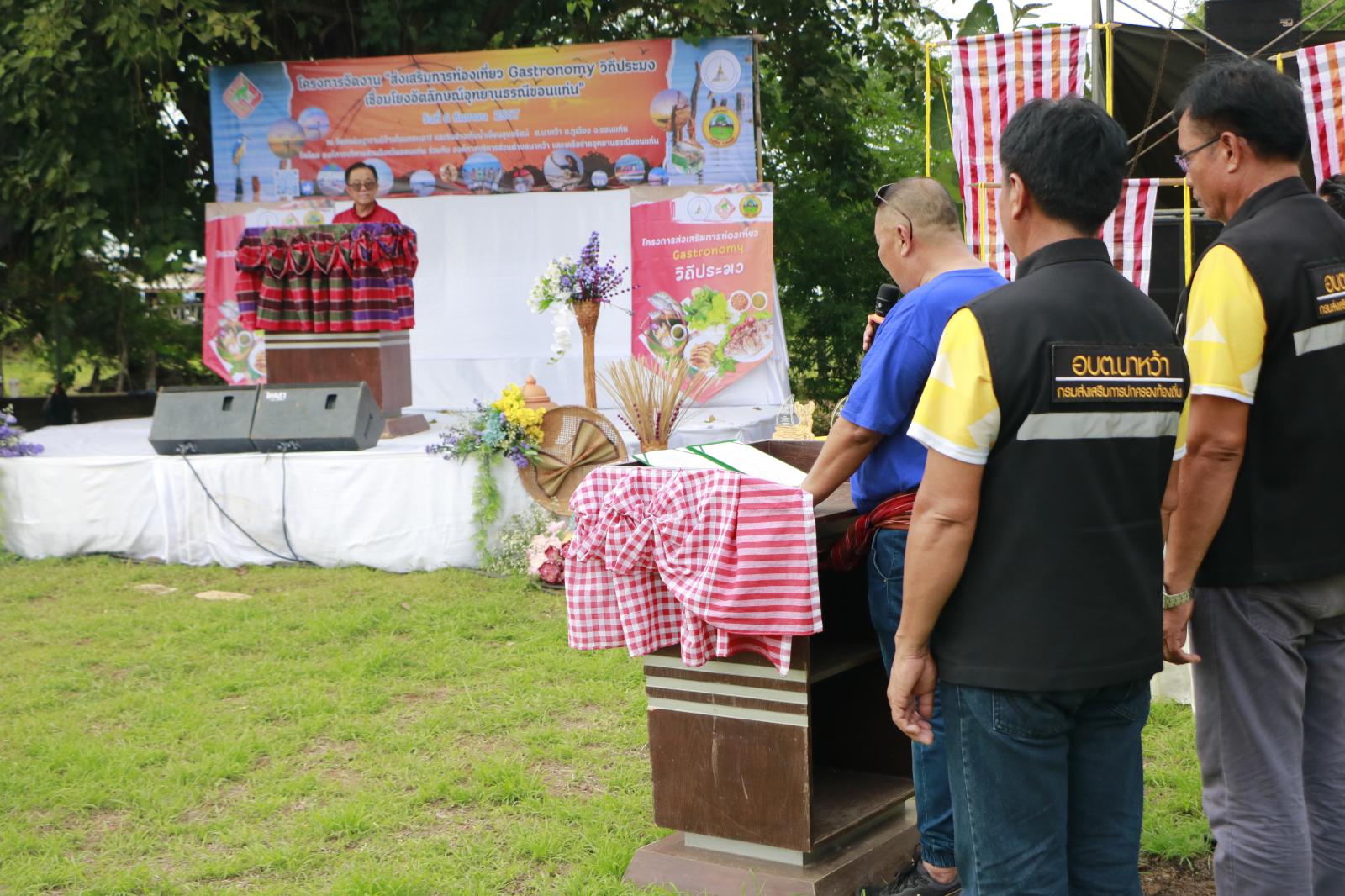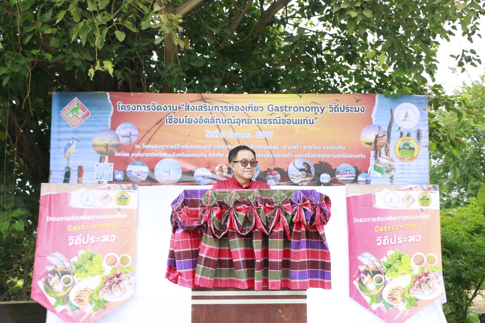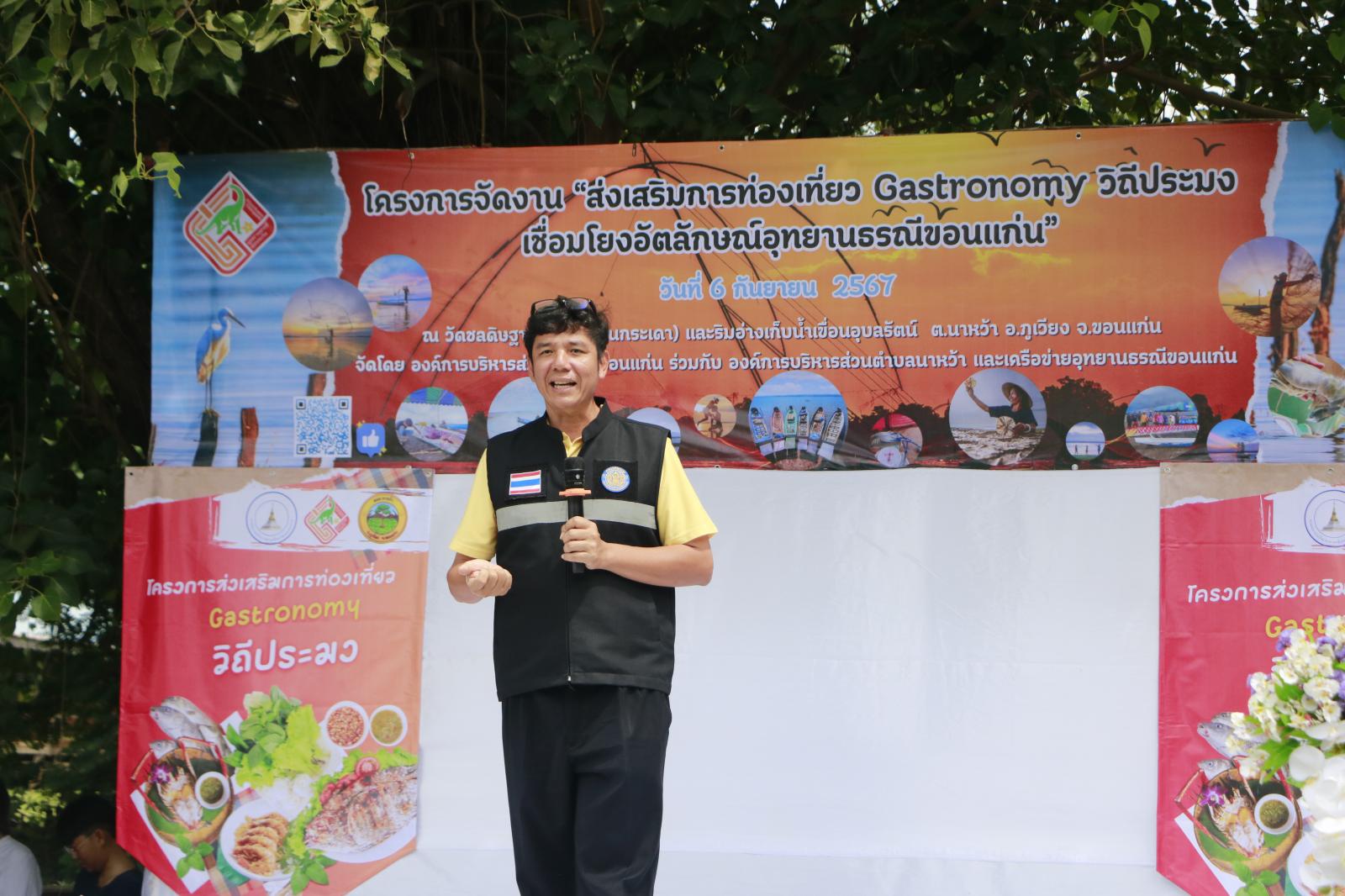 วันที่ 6 กันยายน 2567 เวลา 09.30 น. องค์การบริหารส่วนจังหวัดขอนแก่น นำโดย ดร.พงษ์ศักดิ์ ตั้งวานิชกพงษ์ นายกองค์การบริหารส่วนจังหวัดขอนแก่น มอบหมายให้ นายธาดา พรหมสาขา ณ สกลนคร รองนายกองค์การบริหารส่วนจังหวัดขอนแก่น เป็นประธานในพิธีเปิดโครงการจัดงานส่งเสริมการท่องเที่ยว Gastronomy วิถีประมงเชื่อมโยงอัตลักษณ์อุทยานธรณีขอนแก่น โดยมี นางสุวรรณา วรรณศรี นายอำเภอภูเวียง กล่าวต้อนรับ นายธนะพงค์ อุ่นพันธ์หริ่ม นายกองค์การบริหารส่วนตำบลนาหว้า กล่าวรายงาน ในโอกาสนี้มี นายสมศักดิ์ ทองพลุ ผู้อำนวยการศูนย์วิจัยและพัฒนาประมงน้ำจืดขอนแก่น พัฒนาการอำเภอภูเวียง หัวหน้าส่วนราชการ ผู้นำท้องที่ ผู้นำท้องถิ่น ข้าราชการและเจ้าหน้าที่ อบจ.ขอนแก่น เข้าร่วมเป็นเกียรติในพิธี ณ ริมอ่างเก็บน้ำเขื่อนอุบลรัตน์ หมู่บ้านโนนกระเดา ตำนาหว้า อ.ภูเวียง จ.ขอนแก่น