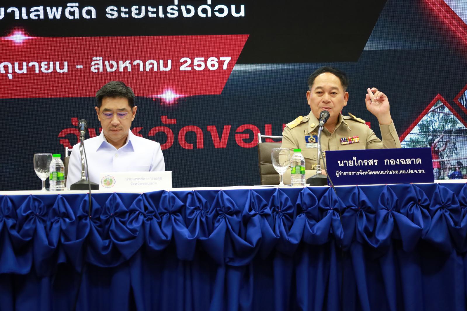 ร่วมการแถลงผลการดำเนินงานตามแผนปฏิบัติการเร่งรัดการดำเนินงานป้องกัน ปราบปราม และแก้ไขปัญหายาเสพติด ระยะเร่งด่วน 3 เดือน (1 มิถุนายน – 31 สิงหาคม 2567) จังหวัดขอนแก่น