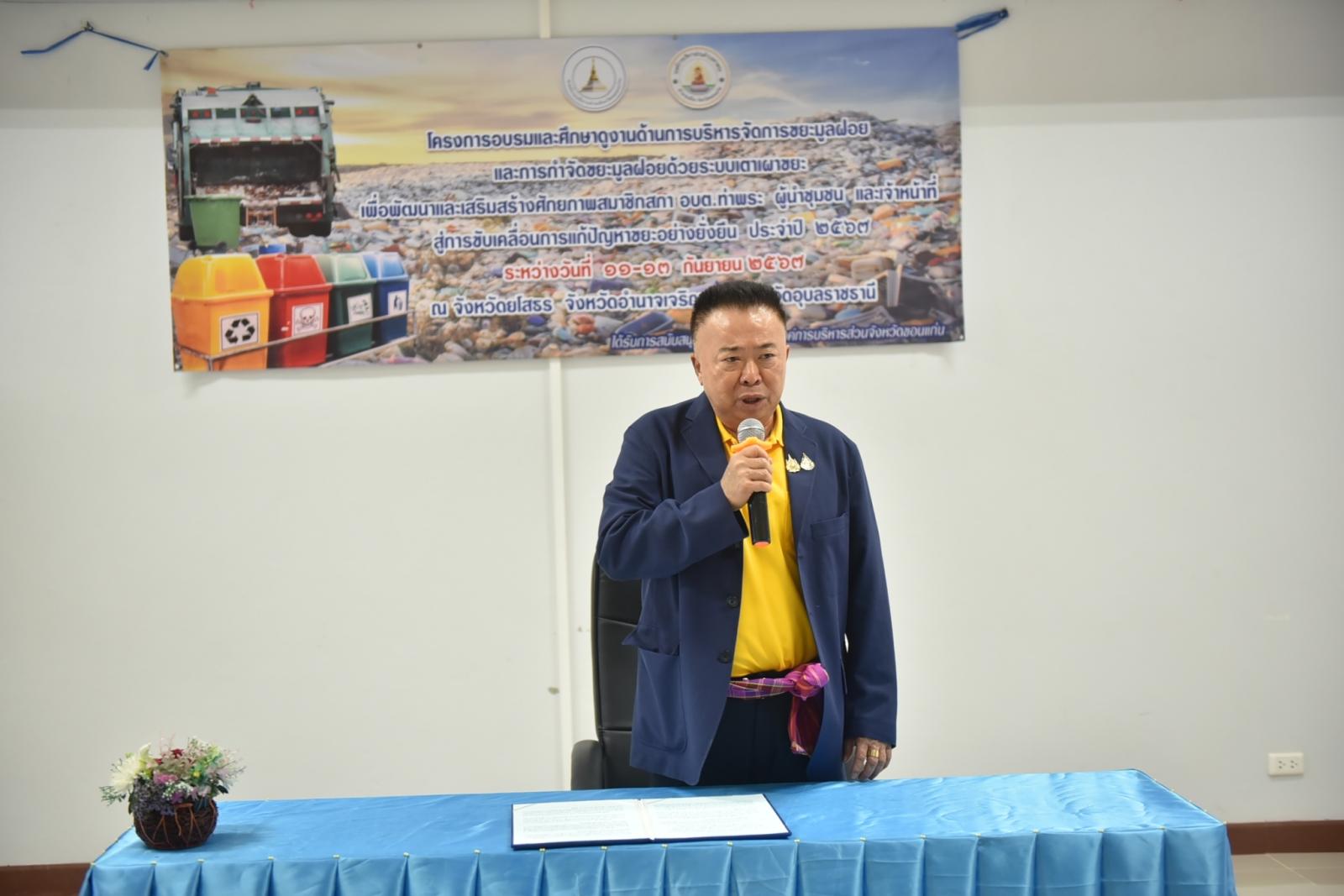 วันที่ 11 กันยายน 2567 เวลา 09.30 น. องค์การบริหารส่วนจังหวัดขอนแก่น นำโดย ดร.พงษ์ศักดิ์ ตั้งวานิชกพงษ์ นายกองค์การบริหารส่วนจังหวัดขอนแก่น เป็นประธานเปิดโครงการอบรมและศึกษาดูงานด้านการบริหารจัดการขยะมูลฝอย และการกำจัดขยะมูลฝอยด้วยระบบเตาเผาขยะ เพื่อพัฒนาและเสริมสร้างศักยภาพสมาชิกสภา อบต.ท่าพระ ผู้นำชุมชน และเจ้าหน้าที่ สู่การขับเคลื่อนการแก้ปัญหาขยะอย่างยั่งยืน ประจำปี 2567 โดยมี นายรังสรรค์ ตั้งวานิชกพงษ์ นายกองค์การบริหารส่วนตำบลท่าพระ กล่าวรายงาน ในโอกาสนี้มี นายอนุชา ตั้งวานิชกพงษ์ ส.อบจ.ขอนแก่น อ.เมือง เขต 5 พร้อมคณะผู้บริหาร ฯ ,ข้าราชการ,สมาชิกสภา อบต.ท่าพระ ร่วมเป็นเกียรติในพิธี ณ องค์การบริหารส่วนตำบลท่าพระ อำเภอเมือง จ.ขอนแก่น