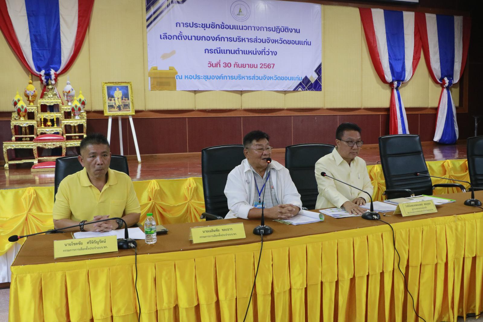 เมื่อวันที่ 30 กันยายน 2567 เวลา 09.00 น. องค์การบริหารส่วนจังหวัดขอนแก่น จัดประชุมซักซ้อมแนวทางการปฏิบัติงานเลือกตั้งนายกองค์การบริหารส่วนจังหวัดขอนแก่น โดยมีนายพันธ์เทพ เสาโกศล รองผู้ว่าราชการจังหวัดขอนแก่นในฐานะ ประธานคณะกรรมการการเลือกตั้งนายกองค์การบริหารส่วนจังหวัดขอนแก่น เป็นประธานในการประชุม ในโอกาสนี้มี ว่าที่ร้อยเอกพงเจตน์ พรกุณา ปลัดองค์การบริหารส่วนจังหวัดขอนแก่น ในฐานะผู้อำนวยการการเลือกตั้งประจำองค์การบริหารส่วนจังหวัดขอนแก่น พร้อมด้วย นายวัชระ สีสาร ผู้อำนวยการสำนักงานคณะกรรมการเลือกตั้งประจำจังหวัดขอนแก่น คณะคณะกรรมการและอนุกรรมการการเลือกตั้งฯ ประจำอำเภอ/เทศบาลนครขอนแก่น นายทะเบียนอำเภอ และนายทะเบียนท้องถิ่น เข้าร่วมการประชุม เพื่อรับนโยบายแนวทางการจัดการเลือกตั้งนายกองค์การบริหารรส่วนจังหวัดขอนแก่น ณ หอประชุมองค์การบริหารส่วนจังหวัดขอนแก่น