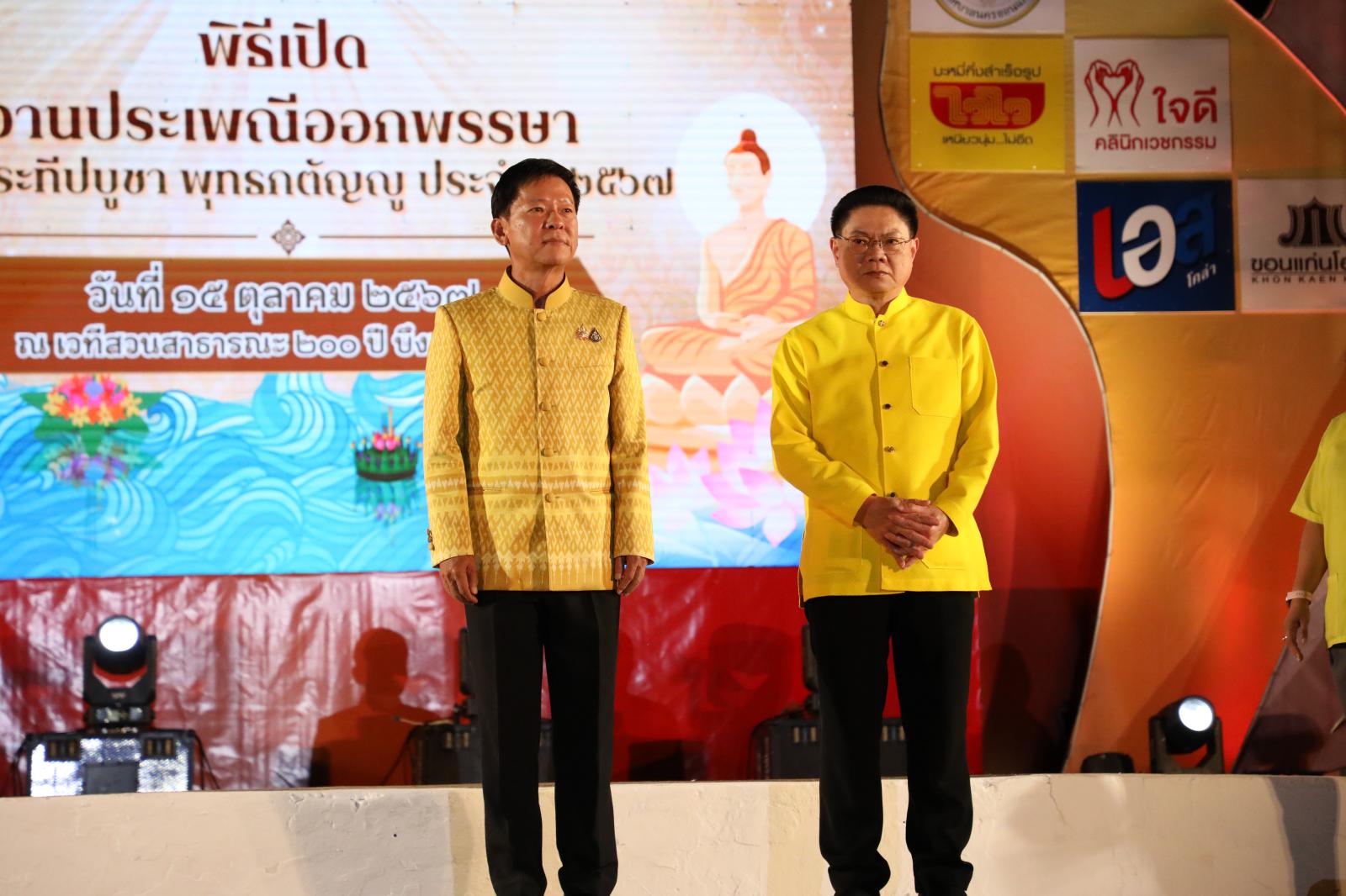 วันที่ 15 ตุลาคม 2567 เวลา 18.00 น. ว่าที่ร้อยเอกพงเจตน์ พรกุณา ปลัดองค์การบริหารส่วนจังหวัด ปฏิบัติหน้าที่นายกองค์การบริหารส่วนจังหวัดขอนแก่น มอบหมายให้ นายนำศิลป์ วิเศษ ผู้อำนวยการสำนักการศึกษา ศาสนาและวัฒนธรรม ร่วมพิธีเปิดงานประเพณีออกพรรษา ลอยประทีปบูชา พุทธกตัญญู ประจำปี 2567 โดยมีนายศิริวัฒน์ พินิจพานิชย์เป็นประธานในพิธี ณ บริเวณเวทีสวนสาธารณะ 200 ปี บึงแก่นนคร จังหวัดขอนแก่น