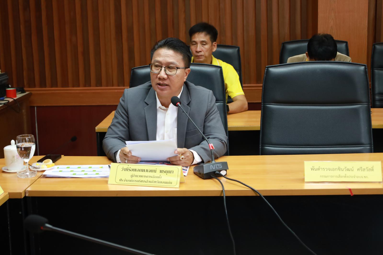 วันที่ 16 ตุลาคม 2567 เวลา 10:30 น. ว่าที่ร้อยเอกพงเจตน์ พรกุณา ปลัดองค์การบริหารส่วนจังหวัดขอนแก่น ในฐานะผู้อำนวยการการเลือกตั้งประจำองค์การบริหารส่วนจังหวัดขอนแก่น พร้อมด้วย นางอาซีซะห์ ว่องไว รองปลัดองค์การบริหารส่วนจังหวัดขอนแก่น หัวหน้าส่วนราชการ อบจ.ขอนแก่น ร่วมต้อนรับผู้ตรวจการ สำนักงานคณะกรรมการการเลือกตั้งเขตตรวจการที่ 6 โดยมี นางสาวนุชนภางค์ ลิ่มดุลไพบูลย์ ผู้ตรวจการเขตตรวจการที่ 6 เป็นประธาน พร้อมคณะกรรมการการเลือกตั้งเขตตรวจการที่ 6 เข้าร่วมประชุม ณ หอประชุมองค์การบริหารส่วนจังหวัดขอนแก่น อำเภอเมือง จังหวัดขอนแก่น