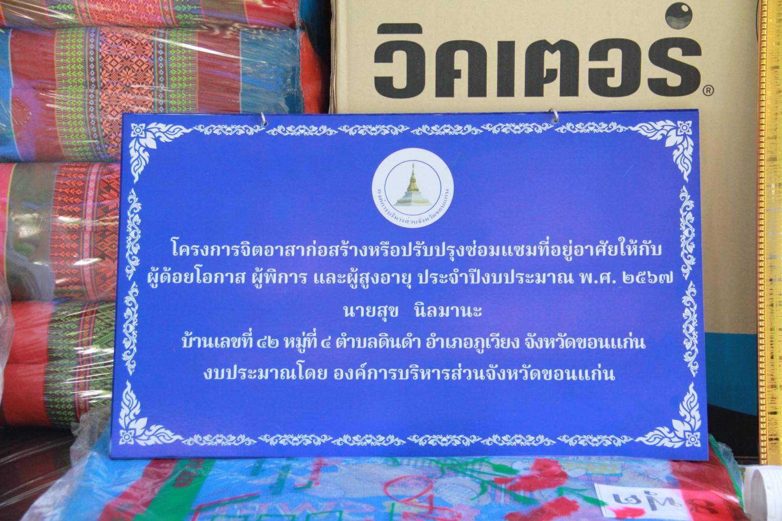 ส่งมอบบ้านตามโครงการจิตอาสาก่อสร้างหรือปรับปรุงซ่อมแซมที่อยู่อาศัยให้กับผู้ด้อยโอกาส ผู้พิการ และผู้สูงอายุ ประจำปีงบประมาณ พ.ศ.2567 ราย นายสุข นิลมานะ อายุ 65 ปี