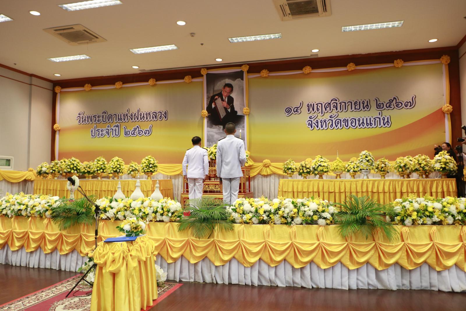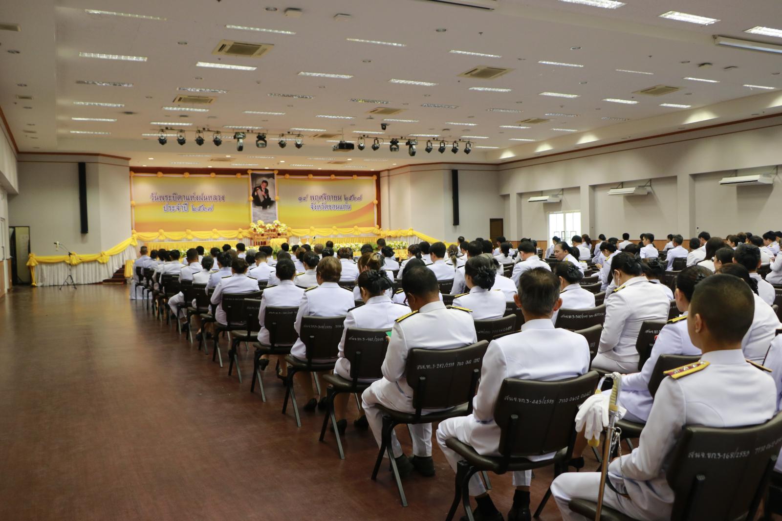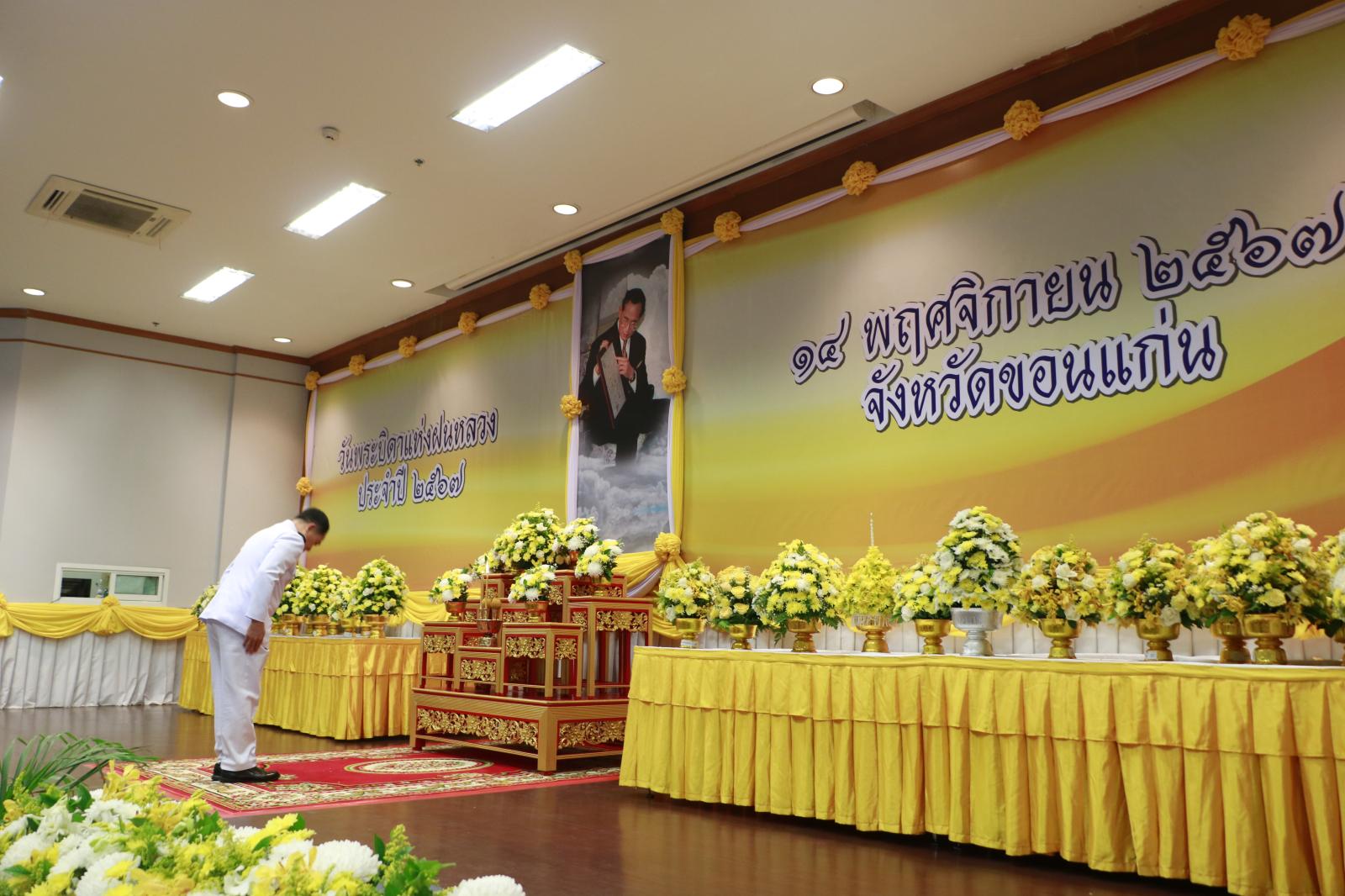 เมื่อวันที่ 14 พ.ย. 67 เวลา 08.30 น. ว่าที่ร้อยเอกพงเจตน์ พรกุณา ปลัดอบจ.ขอนแก่น ปฏิบัติหน้าที่นายกองค์การบริหารส่วนจังหวัดขอนแก่น มอบหมายให้นายบุญมี ราญมีชัย ผู้อำนวยการส่วนบริการและเผยแพร่วิชาการ รักษาราชการแทนผู้อำนวยการสำนักยุทธศาสตร์และงบประมาณ พร้อมด้วย นางสาวกรวรรณ จุ้มอังวะ ผู้อำนวยการกองคลัง และข้าราชการสังกัดองค์การบริหารส่วนจังหวัดขอนแก่น ร่วมพิธีวางพานพุ่มดอกไม้สดถวายสักการะ เนื่องในวันพระบิดาแห่งฝนหลวง ประจำปี 2567 เพื่อน้อมรำลึกในพระมหากรุณาธิคุณของพระบาทสมเด็จพระบรมชนกาธิเบศร มหาภูมิพลอดุลยเดช บรมนาถบพิต โดยมี นายไกรสร กองฉลาด ผู้ว่าราชการจังหวัดขอนแก่น เป็นประธานในพิธี นำหัวหน้าส่วนราชการ หน่วยงานภาครัฐ - ภาคเอกชน เข้าร่วมพิธี ณ ห้องประชุมแก่นเมือง ศาลากลางจังหวัดขอนแก่น