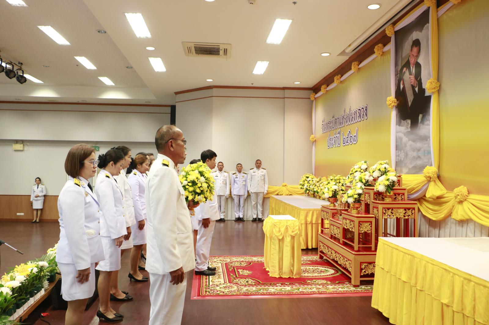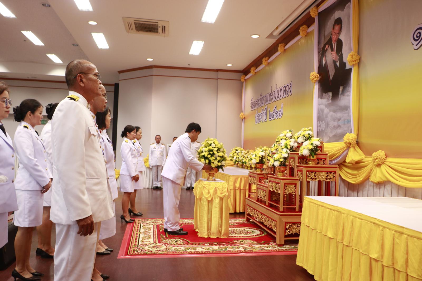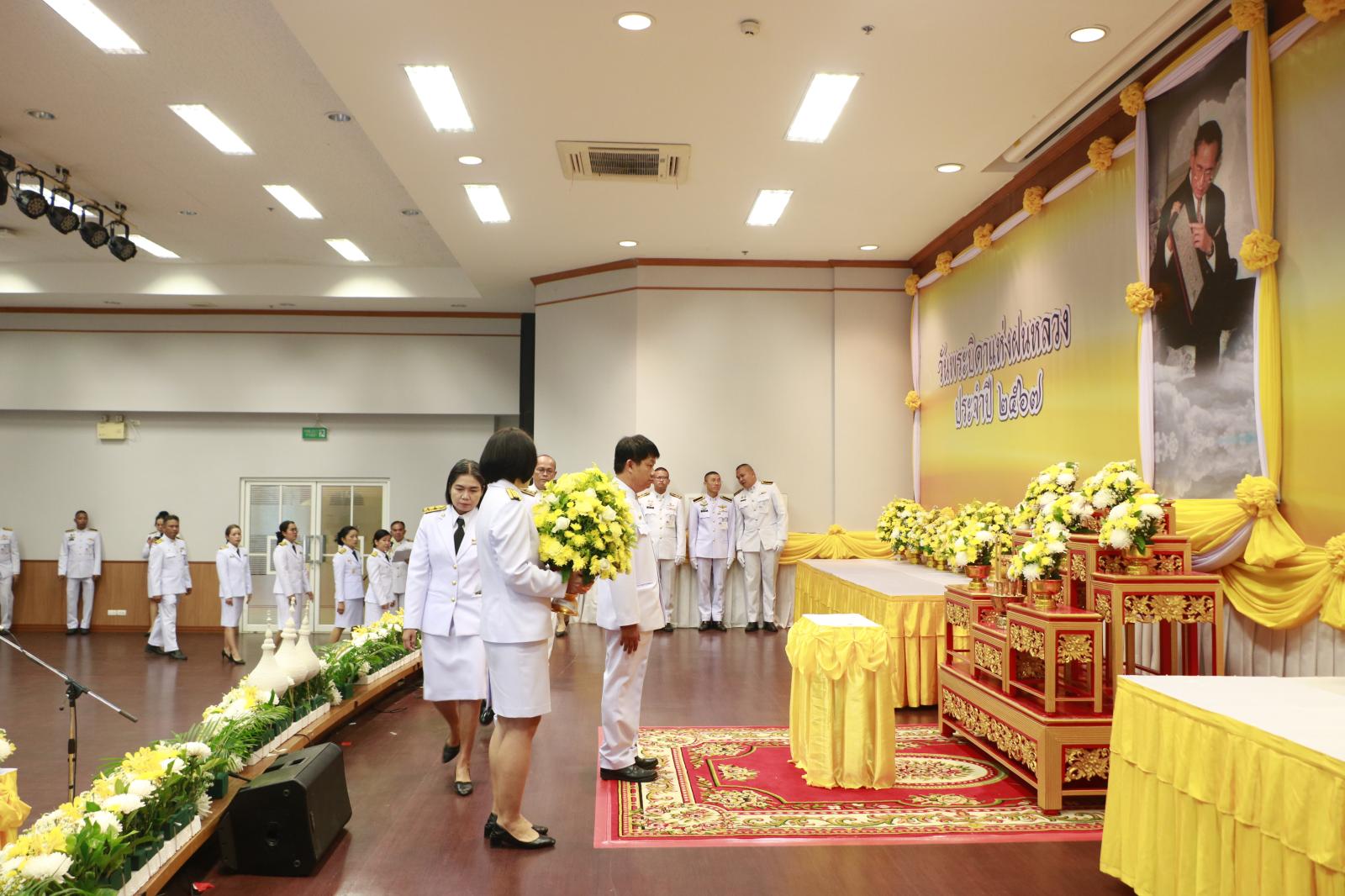พิธีวางพานพุ่มดอกไม้สดถวายสักการะ เนื่องในวันพระบิดาแห่งฝนหลวง ประจำปี 2567