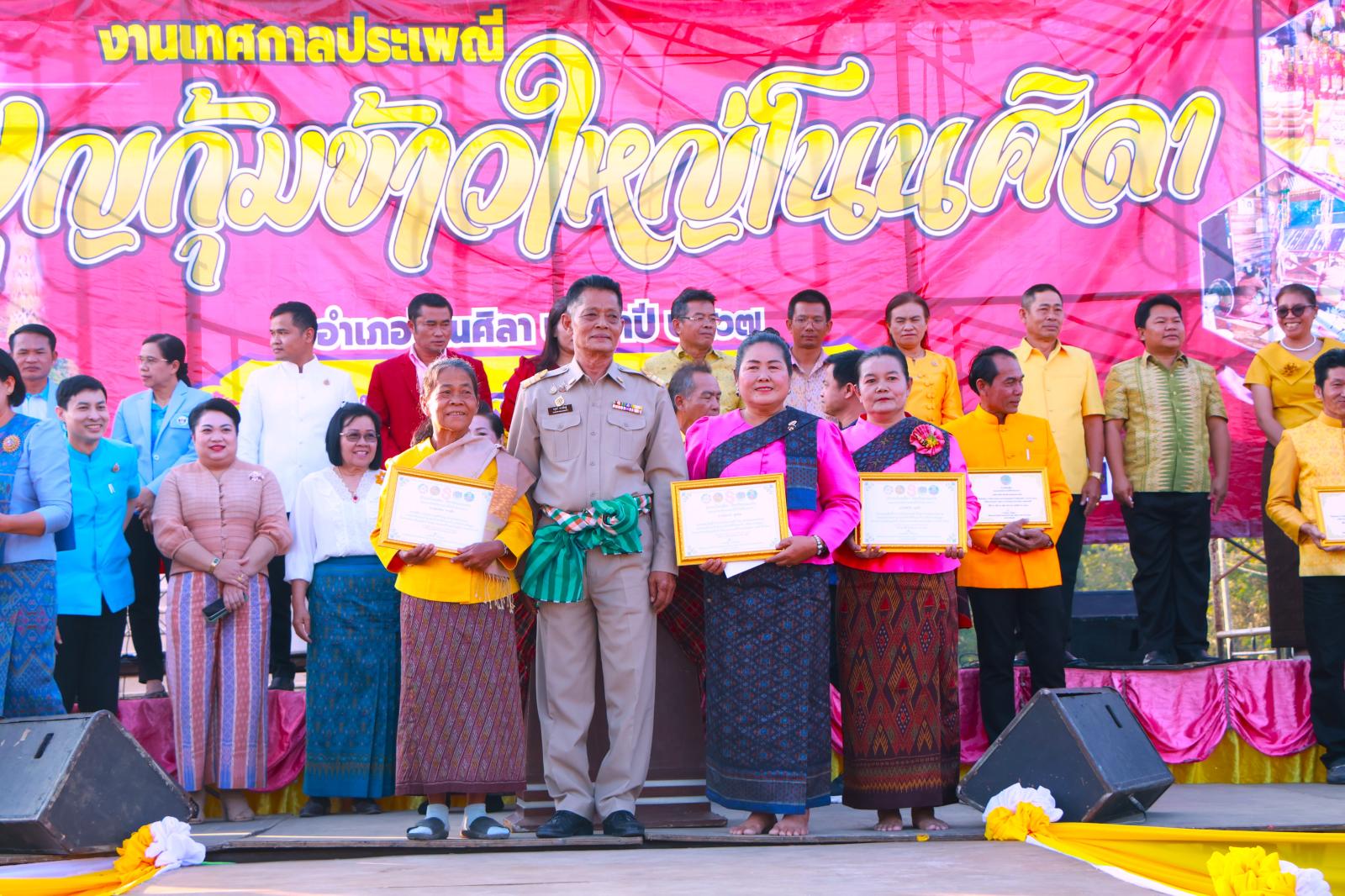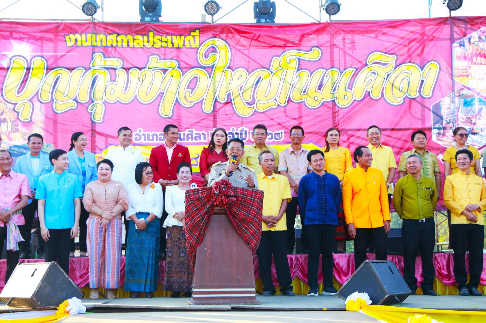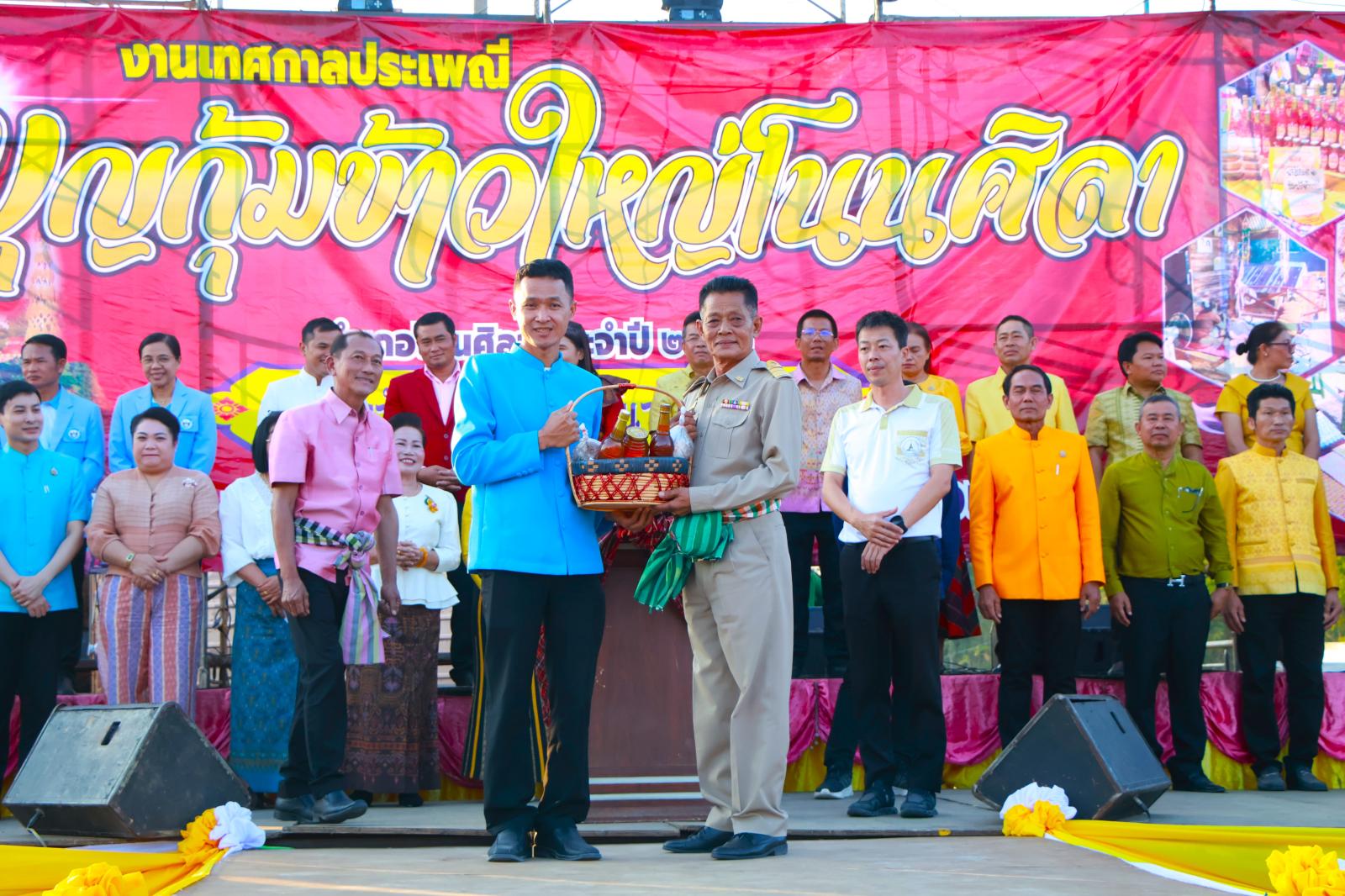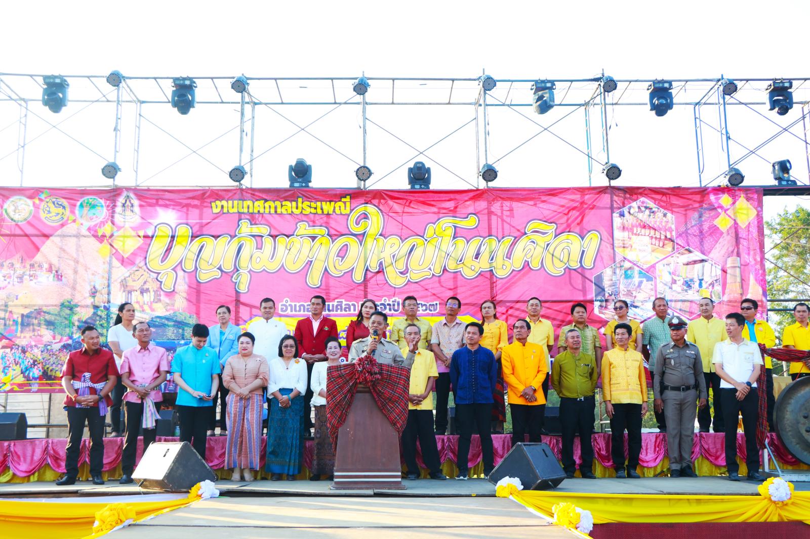 เมื่อวันที่ 18 ธันวาคม 2567 เวลา 16.30 น นายวัฒนา ช่างเหลา นายกองค์การบริหารส่วนจังหวัดขอนแก่น มอบหมายให้ นายอดุลย์ คามดิษฐ์ รองนายกองค์การบริหารส่วนจังหวัดขอนแก่น เป็นประธาน เปิดเทศกาลงานประเพณีบุญกุ้มข้าวใหญ่โนนศิลา ประจำปี 2567 พร้อมด้วย นายศรัญ กสิกิจวรกุล สมาชิกสภาองค์การบริหารส่วนจังหวัดขอนแก่น เขตอำเภอโนนศิลา โดยมี นายนิรุต เจริญผล ปลัดอำเภอ (เจ้าพนักงานปกครองชำนาญการพิเศษ) รักษาราชการแทน นายอำเภอโนนศิลา เป็นผู้กล่าวรายงานถึงวัตถุประสงค์ในการงานในครั้งนี้ การกิจกรรมในครั้งนี้จัดขึ้นเพื่อเป็นการสืบทอดขนบธรรมเนียมประเพณีอันดีงามของท้องถิ่น ควบคู่กับการส่งเสริมอาชีพสร้างรายได้ให้แก่เกษตรกร รวมถึงเป็นการสร้างเอกลักษณ์และความภาคภูมิใจให้กับประชาชนอำเภอโนนศิลา ในโอกาสนี้มีองค์กรปกครองส่วนท้องถิ่น หน่วยงานรัฐวิสาหกิจ ผู้นำท้องถิ่น ผู้นำท้องที่ ประชาชนในเขตอำเภอโนนศิลา เข้าร่วมพิธีเปิด ณ เวทีกลางหน้าที่ว่าการอำเภอโนนศิลา
