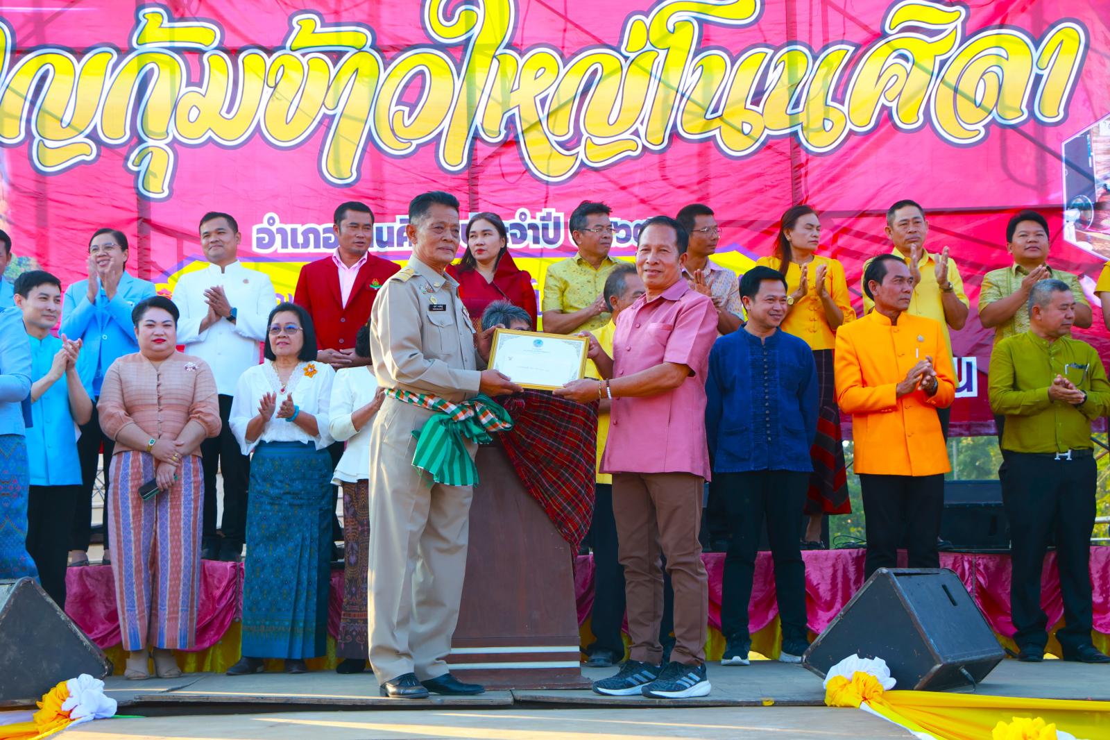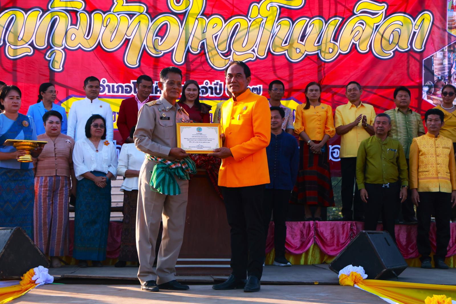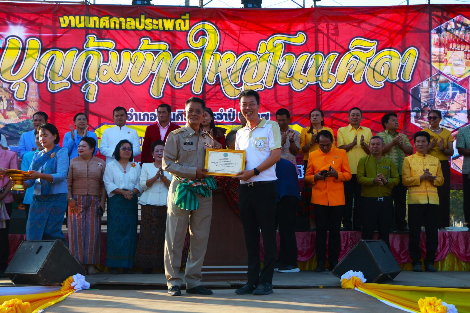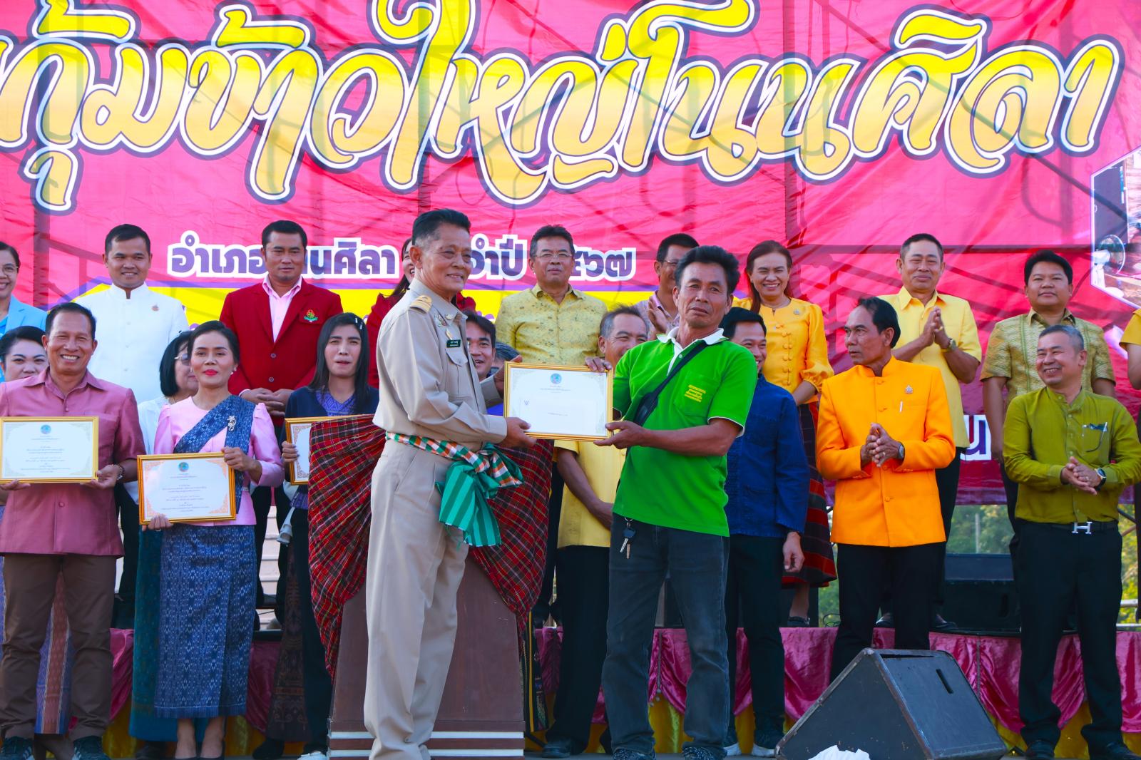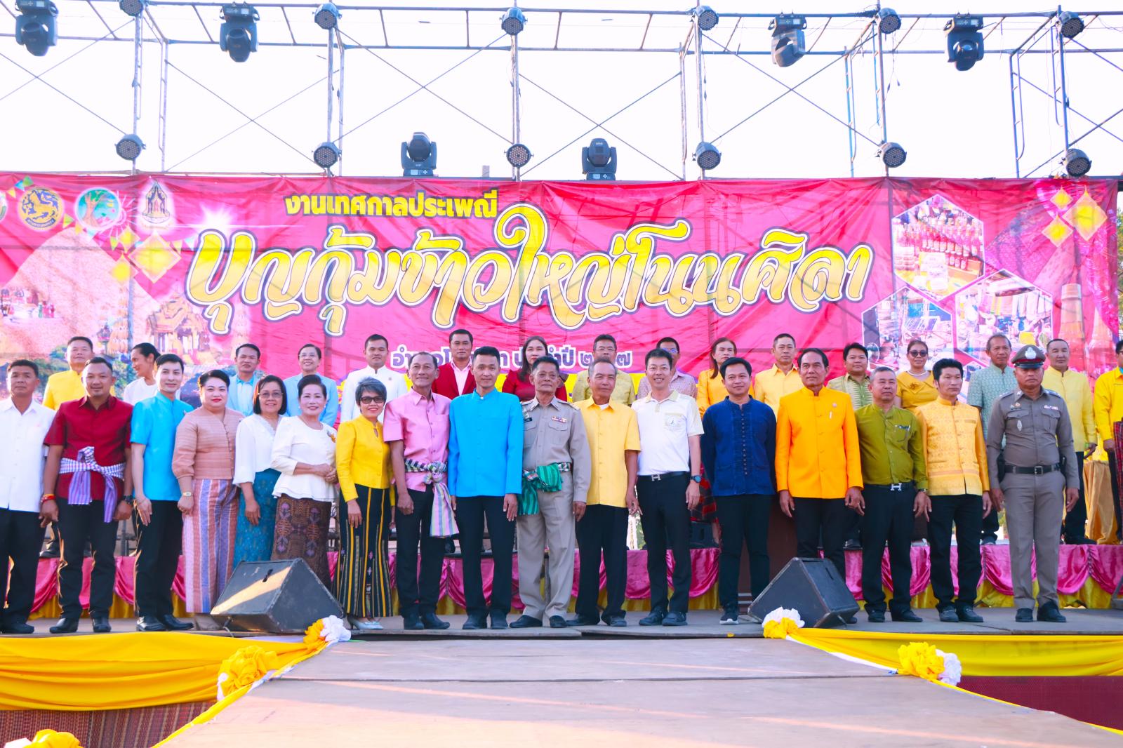 เมื่อวันที่ 18 ธันวาคม 2567 เวลา 16.30 น นายวัฒนา ช่างเหลา นายกองค์การบริหารส่วนจังหวัดขอนแก่น มอบหมายให้ นายอดุลย์ คามดิษฐ์ รองนายกองค์การบริหารส่วนจังหวัดขอนแก่น เป็นประธาน เปิดเทศกาลงานประเพณีบุญกุ้มข้าวใหญ่โนนศิลา ประจำปี 2567 พร้อมด้วย นายศรัญ กสิกิจวรกุล สมาชิกสภาองค์การบริหารส่วนจังหวัดขอนแก่น เขตอำเภอโนนศิลา โดยมี นายนิรุต เจริญผล ปลัดอำเภอ (เจ้าพนักงานปกครองชำนาญการพิเศษ) รักษาราชการแทน นายอำเภอโนนศิลา เป็นผู้กล่าวรายงานถึงวัตถุประสงค์ในการงานในครั้งนี้ การกิจกรรมในครั้งนี้จัดขึ้นเพื่อเป็นการสืบทอดขนบธรรมเนียมประเพณีอันดีงามของท้องถิ่น ควบคู่กับการส่งเสริมอาชีพสร้างรายได้ให้แก่เกษตรกร รวมถึงเป็นการสร้างเอกลักษณ์และความภาคภูมิใจให้กับประชาชนอำเภอโนนศิลา ในโอกาสนี้มีองค์กรปกครองส่วนท้องถิ่น หน่วยงานรัฐวิสาหกิจ ผู้นำท้องถิ่น ผู้นำท้องที่ ประชาชนในเขตอำเภอโนนศิลา เข้าร่วมพิธีเปิด ณ เวทีกลางหน้าที่ว่าการอำเภอโนนศิลา