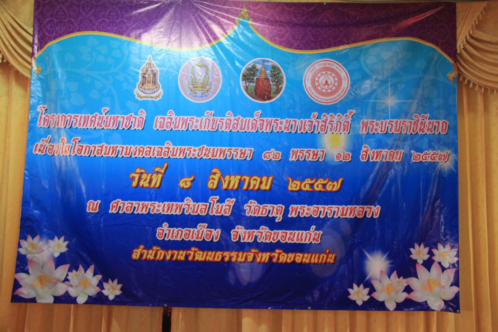 ในวันที่ 8 สิงหาคม 2557 นายก อบจ.ขอนแก่น ดร.พงษ์ศักดิ์ ตั้งวานิชกพงษ์ มอบหมายให้ หัวหน้าสำนักปลัดองค์การบริหารส่วนจังหวัด นายวรเวทย์ ดิเรกศรี ผู้อำนวยการกองกิจการสภา องค์การบริหารส่วนจังหวัด นางวราพร หาญชนะชัยกูล ผู้อำนวยการสำนักการศึกษา ศาสนา และวัฒนธรรม นายปิยะชัย ตุ่ยสิมา และข้าราชการ อบจ.ขอนแก่น ร่วมงานเฉลิมพระเกียรติ สมเด็จพระนางเจ้าสิริกิติ์ พระบรมราชินีนาถ เนื่องในโอกาส พระราชพิธีมหามงคลเฉลิม พระชนมพรรษา 82 พรรษา 12 สิงหาคม 2557 โดยมีรองผู้ว่าราชการจังหวัดขอนแก่น นายประเสริฐ ลือชาธนานนท์ เป็นประธานในพิธี ณ วัดธาตุ พระอารามหลวง อ.เมืองขอนแก่น จ.ขอนแก่น
