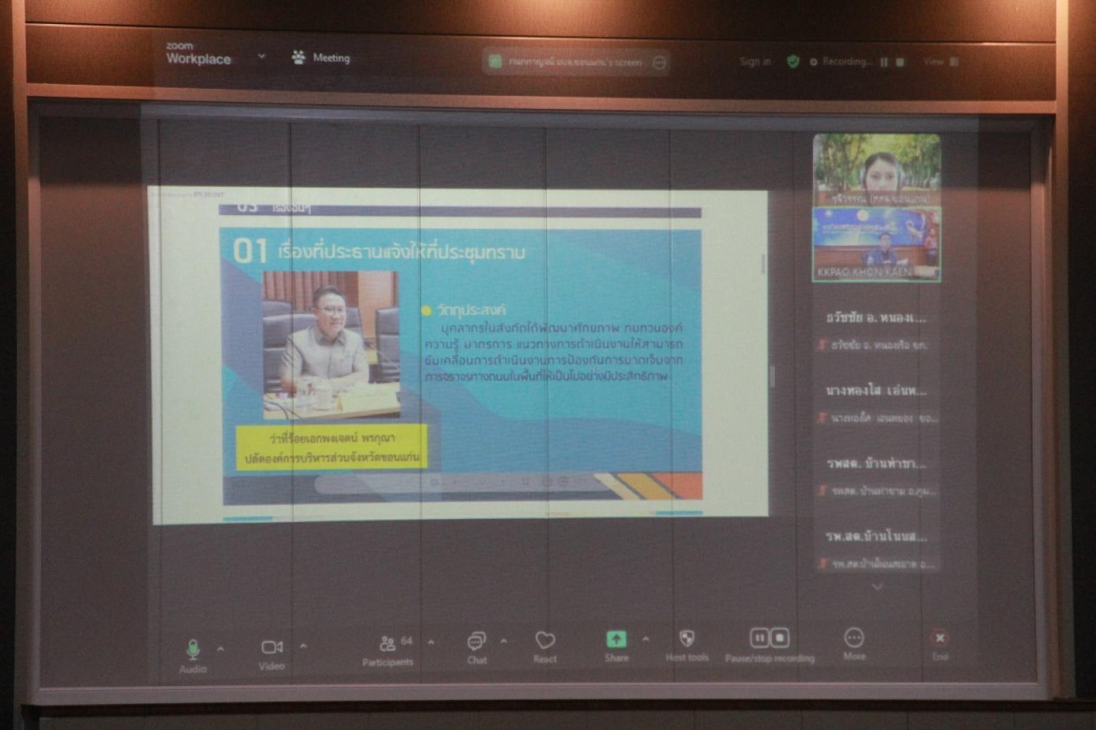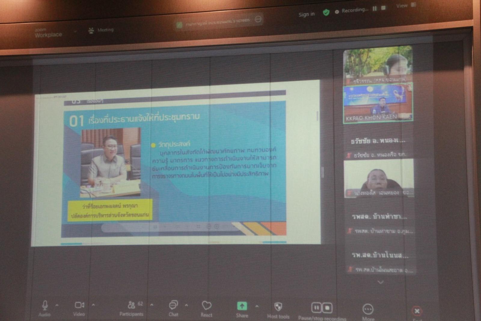 เมื่อวันที่ 20 ธันวาคม 2567 เวลา 09.00 น. นายวัฒนา ช่างเหลา นายกองค์การบริหารส่วนจังหวัดขอนแก่น มอบหมายให้ ว่าที่ร้อยเอกพงเจตน์ พรกุณา ปลัดองค์การบริหารส่วนจังหวัดขอนแก่น เป็นประธานในการประชุม ราชการขับเคลื่อนการดำเนินงานการป้องกันการบาดเจ็บจากการจราจรทางถนน และเตรียมความพร้อมในการเฝ้าระวัง ป้องกันสอบสวนการบาดเจ็บ จากการจราจรทางถนนในช่วงเทศกาลปีใหม่ 2568 ผ่านระบบออนไลน์ โดยมีวัตถุประสงค์เพื่อให้บุคลากรในสังกัด (รพ.สต.ในสังกัดอบจ.ขอนแก่น) ได้รับการพัฒนาศักยภาพทบทวนองค์ความรู้มาตรการ แนวทางการดำเนินงาน สามารถขับเคลื่อนการดำเนินงานในพื้นที่ให้เป็นไปอย่างมีประสิทธิภาพ ณ ห้องประชุมชั้น 2 องค์การบริหารส่วนจังหวัดขอนแก่น