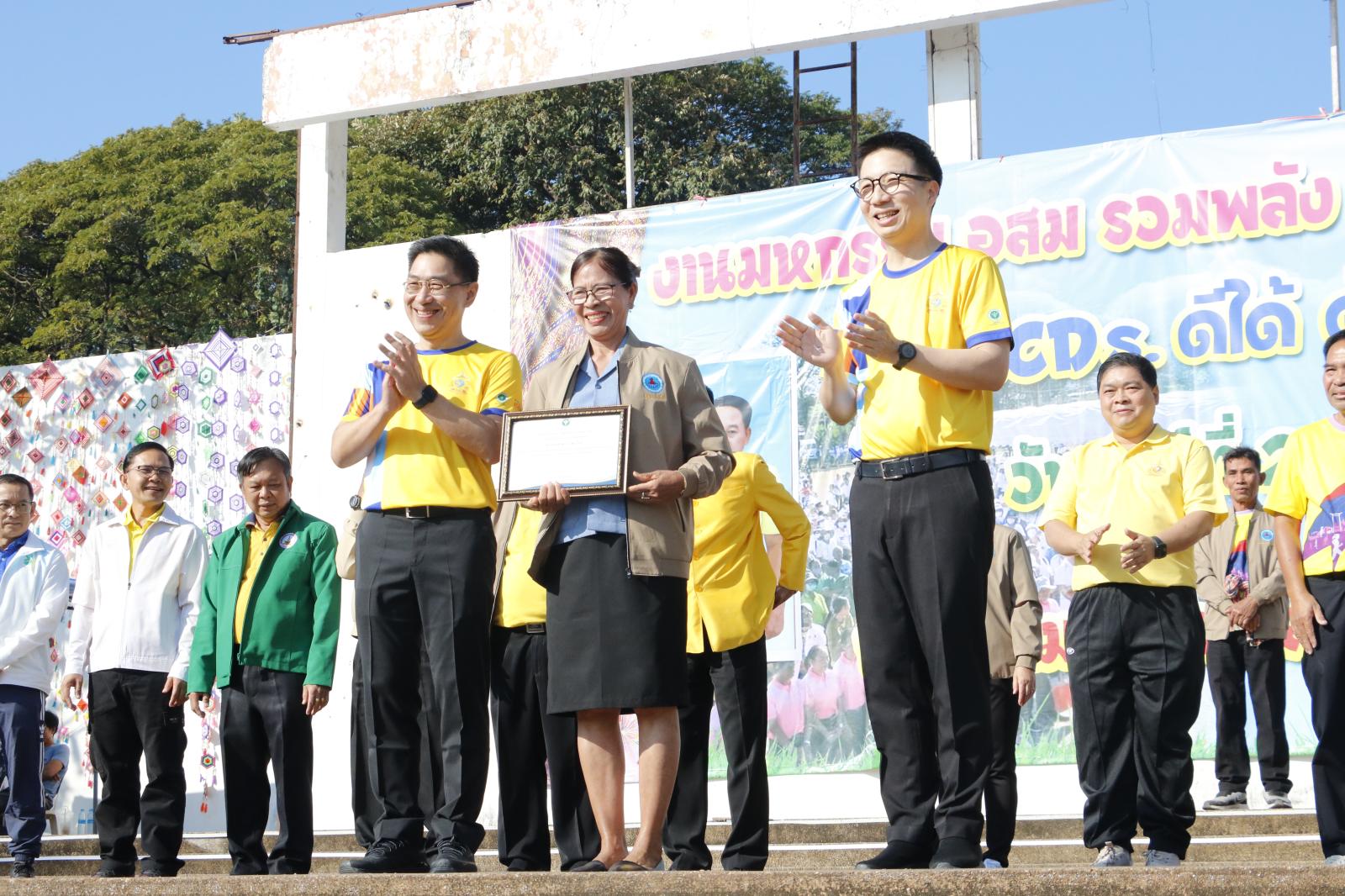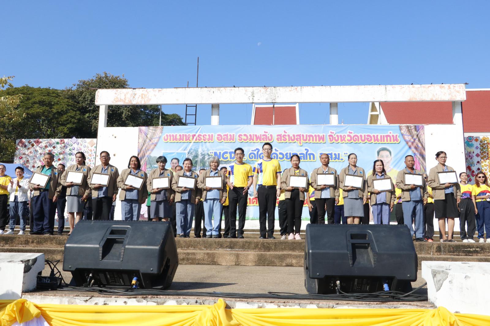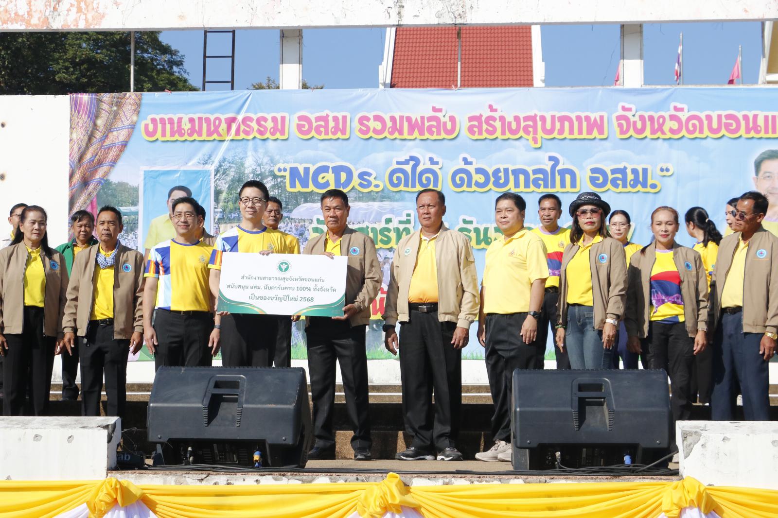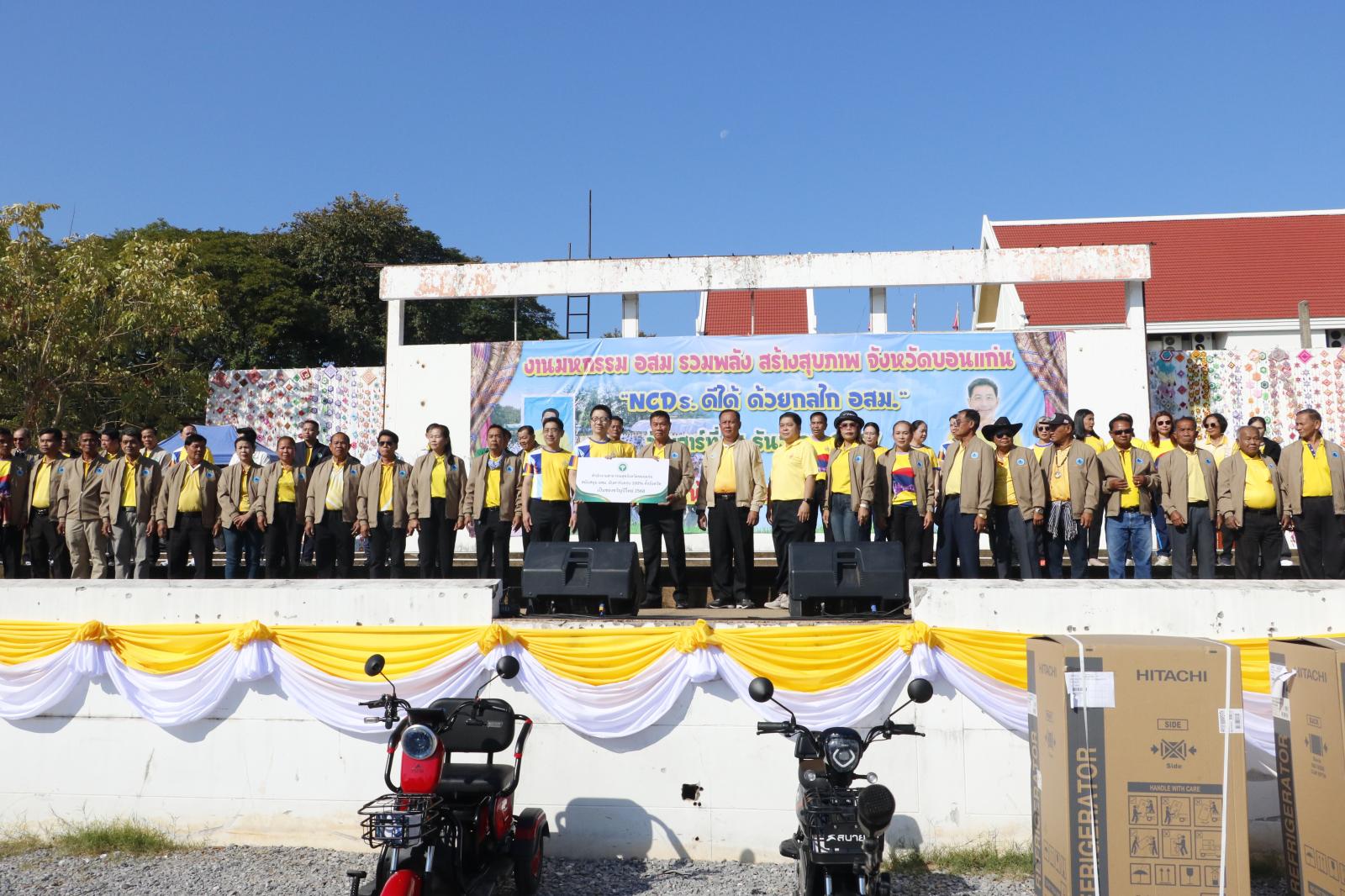 เมื่อวันที่ 21 ธันวาคม 2567 เวลา 09.00 น. นายวัฒนา ช่างเหลา นายกองค์การบริหารส่วนจังหวัดขอนแก่น มอบหมายให้ นายอดุลย์ คามดิษฐ์ รองนายกองค์การบริหารส่วนจังหวัดขอนแก่น เข้าร่วมพิธีเปิดงาน มหกรรมรวมพลังสร้างสุขภาพ สมาคม/ชมรมอาสาสมัครสาธารณสุขประจำหมู่บ้าน อสม. ประจำปี 2567 โดยได้รับเกียรติจากนายยุทธพร พิรุณสาร รองผู้ว่าราชการจังหวัดขอนแก่น เป็นประธานในพิธี ในโอกาสนี้มีนายวัชระ พิศาลา อสม.จังหวัดขอนแก่น นำ อสม.กล่าวปฏิญาณตน “องค์กร อสม.ร่วมลดโรค NCDs” นายแพทย์อภิชัย สิมานนท์ นายแพทย์สาธารณสุขจังหวัดขอนแก่น กล่าวคำนิยม และมีพิธีมอบเสื้อเชิดชูเกียรติและเกียรติบัตร อสม.ดีเด่น ประจำปี 2567 โดยมีอสม.จังหวัดขอนแก่นกว่า 1,500 คน และแขกผู้เกียรติจำนวนมากเข้าร่วมพิธี ณ สนามหน้าศาลากลางจังหวัดขอนแก่น