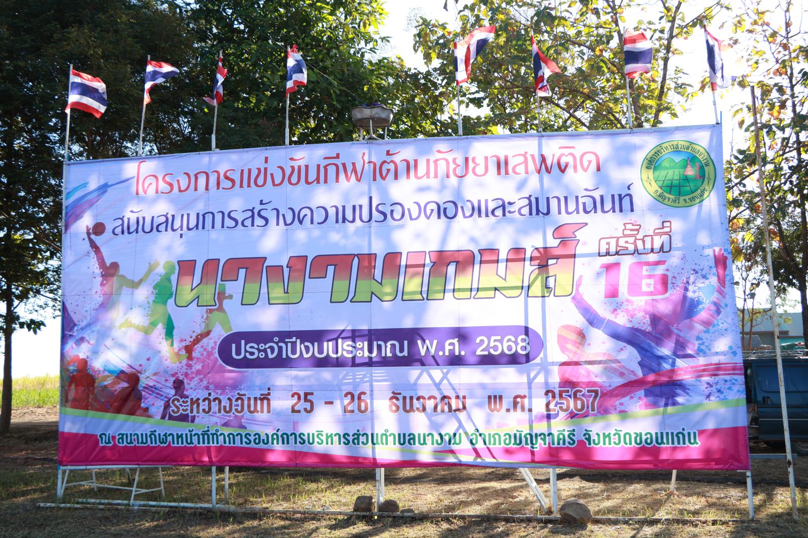 เมื่อวันที่ 26 ธันวาคม 2567 เวลา 09.00 น. องค์การบริหารส่วนจังหวัดขอนแก่น นำโดยนายวัฒนา ช่างเหลา นายกองค์การบริหารส่วนจังหวัดขอนแก่น อบหมายให้ นายอดุลย์ คามดิษฐ์ รองนายก อบจ.ขอนแก่น เป็นประธานในพิธีเปิดโครงการแข่งขันกีฬาต้านยาเสพติด “นางามเกมส์ ครั้งที่ 16 ประจำปีงบประมาณ พ.ศ.2568 โดยมี ส.ต.ต.หญิง รัชนี พั้วลี ปลัดอบต.นางาม กล่าวรายงาน ณ สนามกีฬาหน้าที่การ อบต. นางาม อ.มัญจาคีรี จ.ขอนแก่น