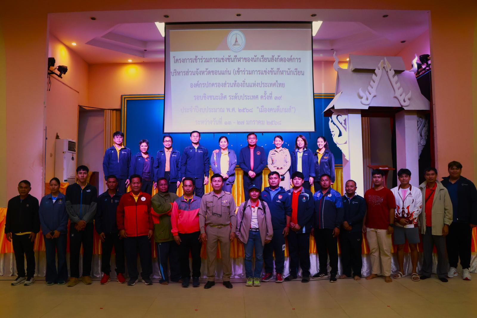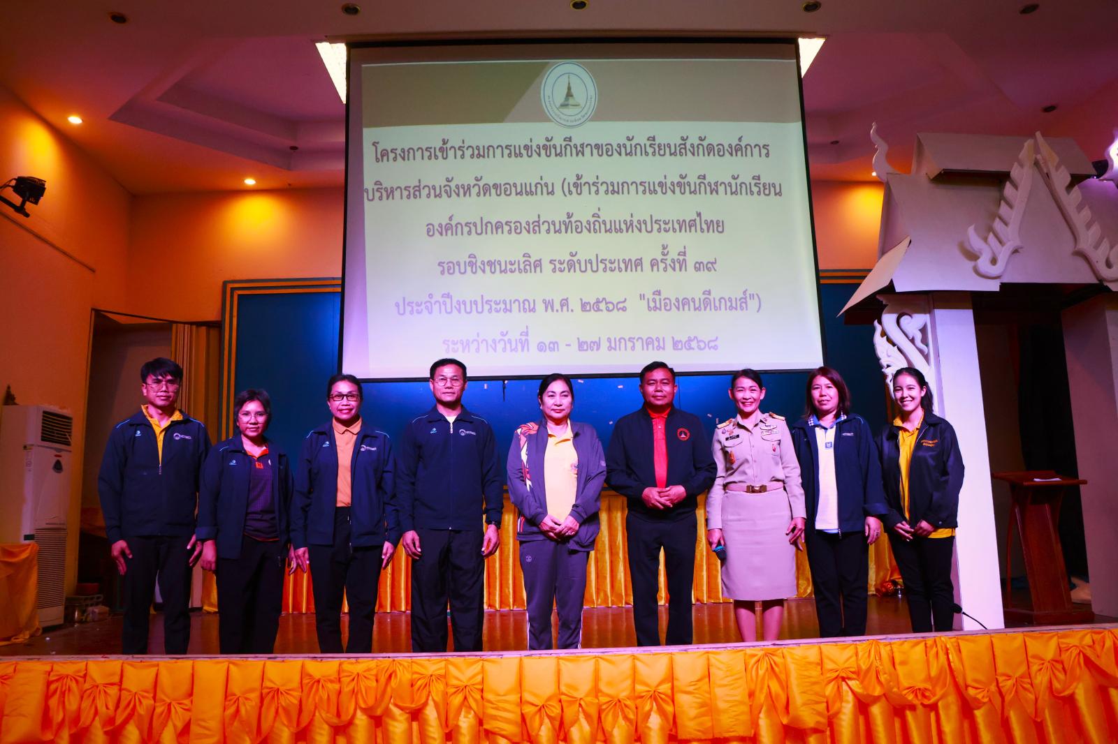 เมื่อวันที่ 13 มกราคม 2568 เวลา 18.00 น. นายวัฒนา ช่างเหลา นายกองค์การบริหารส่วนจังหวัดขอนแก่น มอบหมายให้ นางดวงแข อรรณนพพร รองนายกองค์การบริหารส่วนจังหวัดขอนแก่น เป็นประธานในพิธีส่งคณะนักกีฬาเพื่อเข้าร่วมแข่งขันกีฬานักเรียนองค์กรปกครองส่วนท้องถิ่น แห่งประเทศไทย รอบชิงชนะเลิศ ระดับประเทศ ครั้งที่ 39 ประจำปีงบประมาณ พ.ศ.2568 “เมืองคนดีเกมส์” โดยมีนายนำศิลป์ วิเศษ ผู้อำนวยการสำนักการศึกษา ศาสนาและวัฒนธรรม เป็นผู้กล่าวรายงาน ในโอกาสนี้มี ผู้อำนวยการโรงเรียนแท่นศิลาทิพย์ศึกษา ผู้อำนวยการโรงเรียนเมืองพลพิทยาคม พร้อมด้วยรองผู้อำนวยการสถานศึกษา เจ้าหน้าที่องค์การบริหารส่วนจังหวัดขอนแก่น เข้าร่วมเป็นเกียรติในพิธีดังกล่าว เพื่อเป็นขวัญและกำลังใจให้กับคณะนักกีฬาและผู้ฝึกสอนตัวแทนองค์การบริหารส่วนจังหวัดขอนแก่น ณ หอประชุมโรงเรียนเมืองพลพิทยาคม โดยมีนักกีฬาและครูผู้ฝึกสอนที่เข้าร่วมการแข่งขันในครั้งนี้ จำนวน 201 คน
