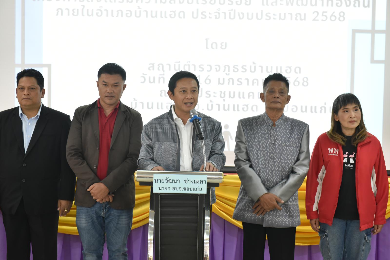 เมื่อวันที่ 14 มกราคม 2568 เวลา 09.30 น. นายวัฒนา ช่างเหลา นายก อบจ.ขอนแก่น เป็นประธานเปิดการอบรมโครงการส่งเสริมความสงบเรียบร้อยและพัฒนาท้องถิ่นภายในอำเภอบ้านแฮด ประจำปีงบประมาณ 2568 โดยมี พ.ต.ท.ยศวัฒน์ เกียรติกรทวียศ รอง ผกก.ป.สภ.บ้านแฮด กล่าวรายงาน ในโอกาสนี้มี นายอดุลย์ คามดิษฐ์ รองนายก อบจ.ขอนแก่น, นายปิตานนท์ ปัญญา นายอำเภอบ้านแฮด ผู้นำท้องถิ่นในเขตอำเภอบ้านแฮด เข้าร่วมเป็นเกียรติในพิธี ณ หอประชุมแคนเงิน เทศบาลตำบลบ้านแฮด อ.บ้านแฮด จ.ขอนแก่น