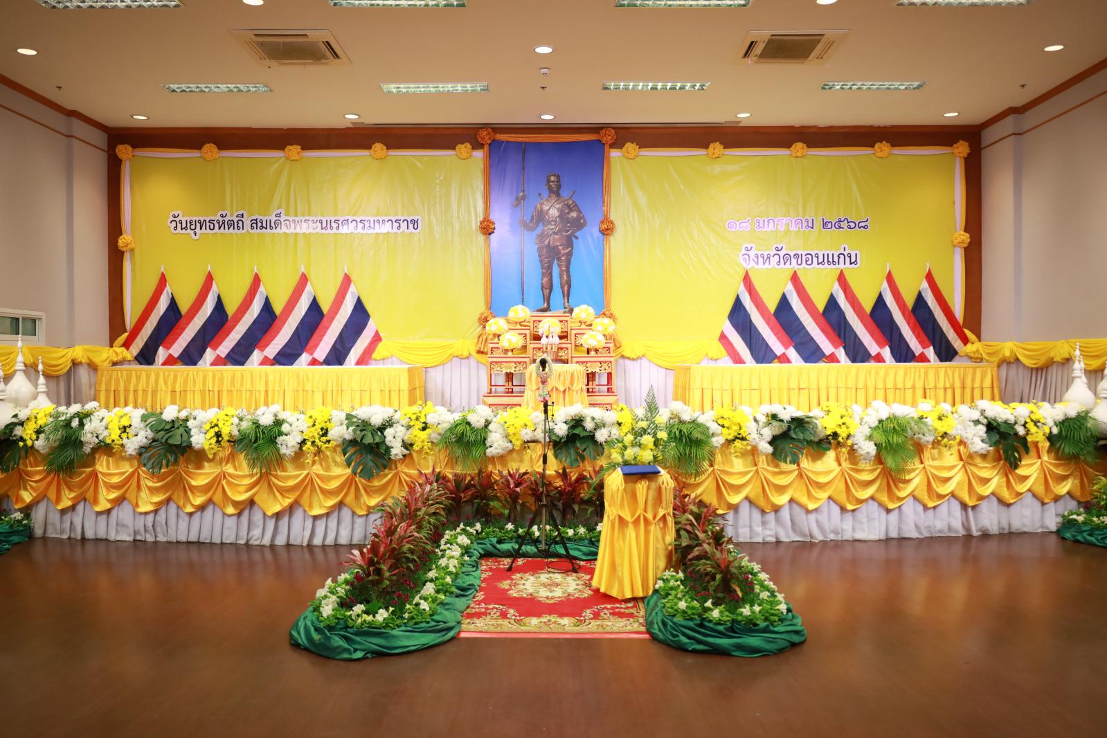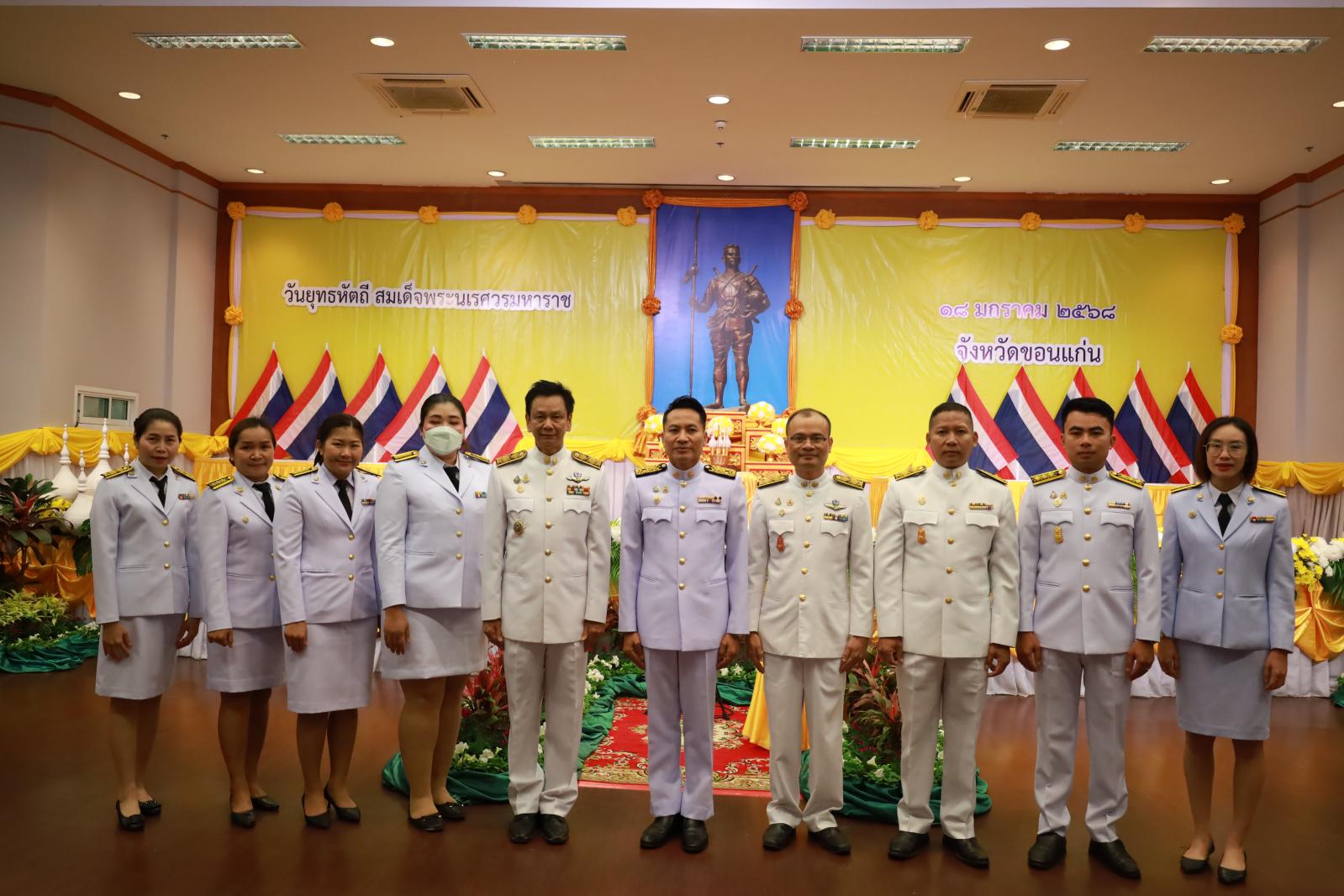 เมื่อวันที่ 16 มกราคม 2568 เวลา 07.00น. องค์การบริหารส่วนจังหวัดขอนแก่น นำโดย นายวัฒนา ช่างเหลา นายกองค์การบริหารส่วนจังหวัดขอนแก่น มอบหมายนายนาวิน คำเวียง รองนายก อบจ.ขอนแก่น พร้อมด้วย นายสุวนัย ภูมาศ ผอ.กองการเจ้าหน้าที่ หัวหน้าส่วนราชการ ข้าราชการ อบจ.ขอนแก่น ร่วมพิธีถวายราชสักการะ สมเด็จพระนเรศวรมหาราช เนื่องในวันยุทธหัตถี โดยมี นายไกรสร กองฉลาด ผู้ว่าราชการจังหวัดขอนแก่น เป็นประธาน ทั้งนี้มีผู้แทนจากหน่วยงานภาครัฐ และรัฐวิสาหกิจ เข้าร่วมพิธี ณ ห้องประชุมแก่นเมือง ศาลากลางจังหวัดขอนแก่น อ.เมือง